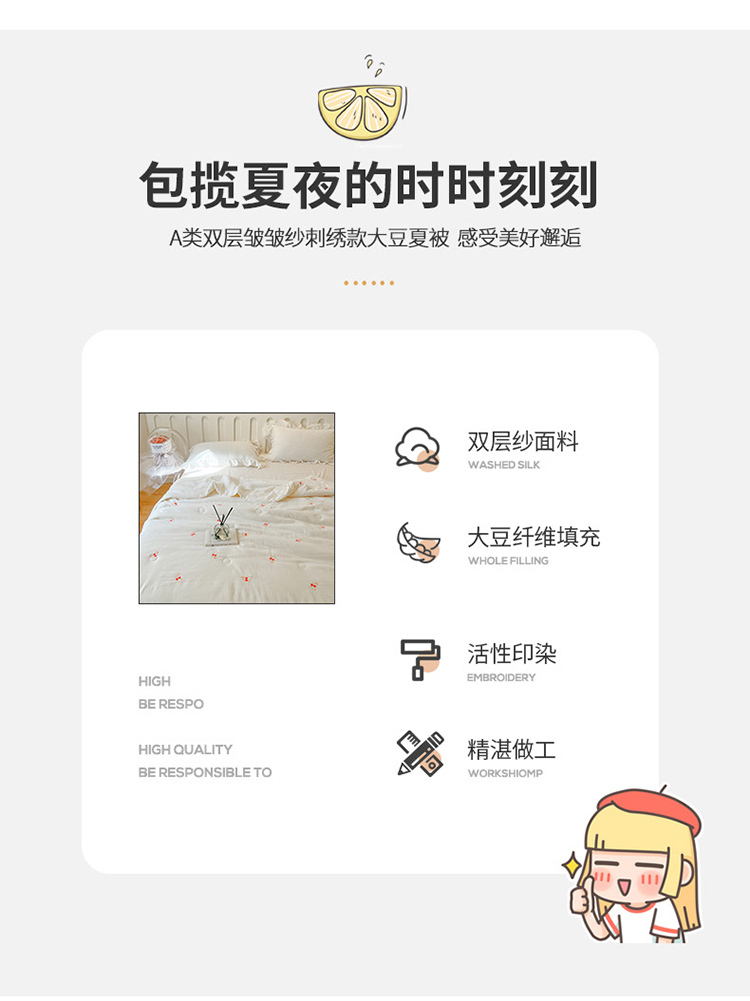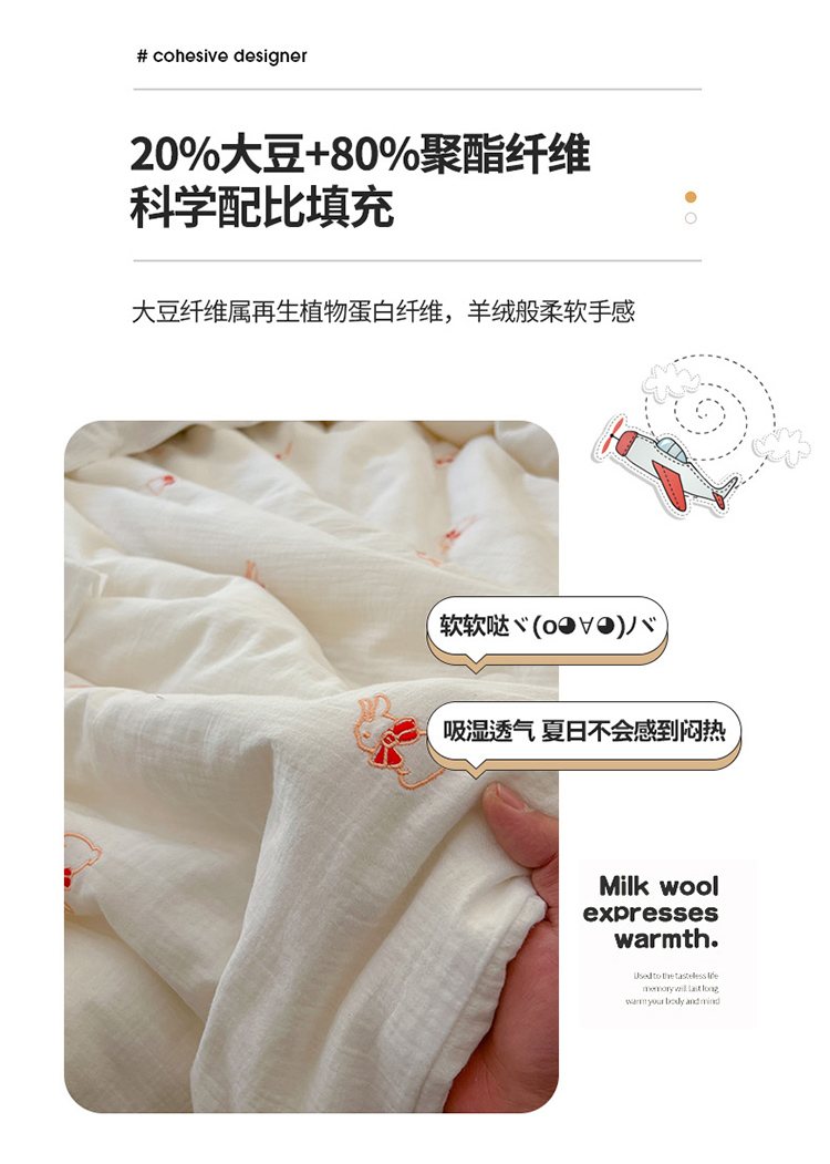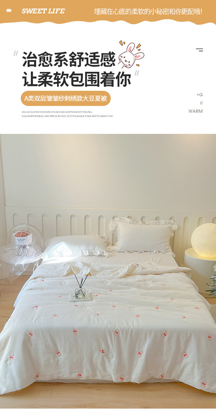 (总)木楌 2025年新款双层皱皱纱刺绣款夏被大豆被,蓓蕾,小飞象,蝴蝶结,领结兔,枇杷叶,三叶草,小樱桃,幸运熊
