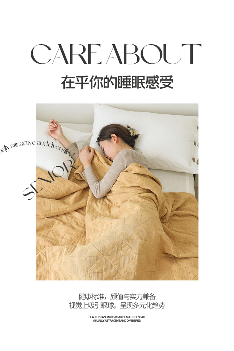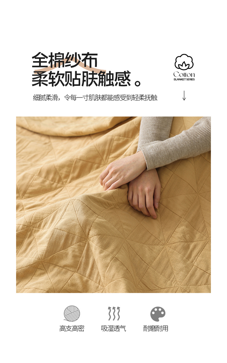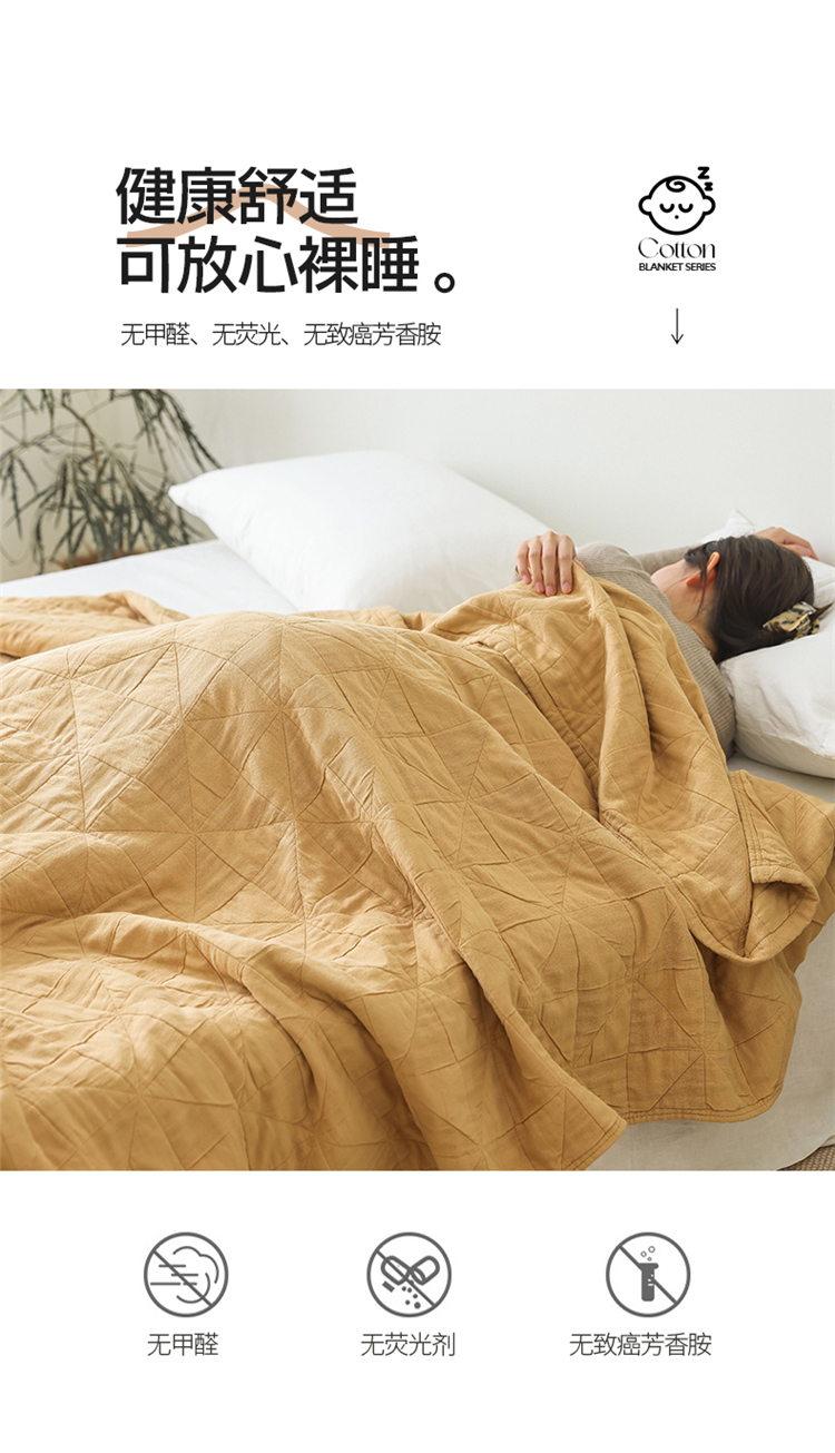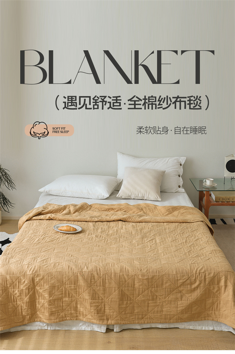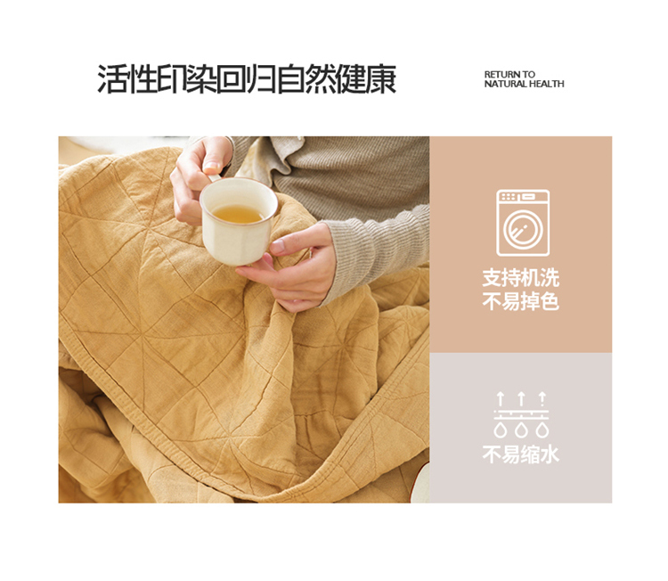 雯雨家纺 2023新款全棉拼色纱布毛巾被 新风车-棕