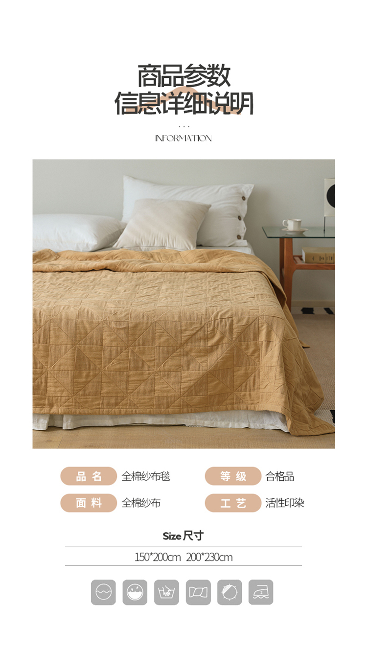 商品名称:雯雨家纺 2023新款全棉拼色纱布毛巾被 新风车-棕
