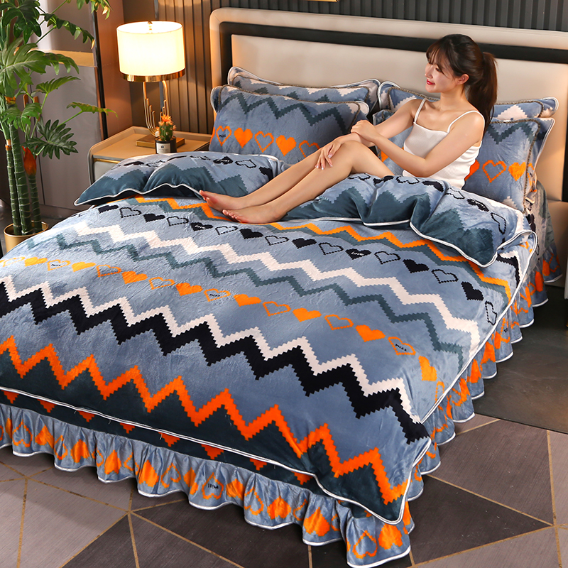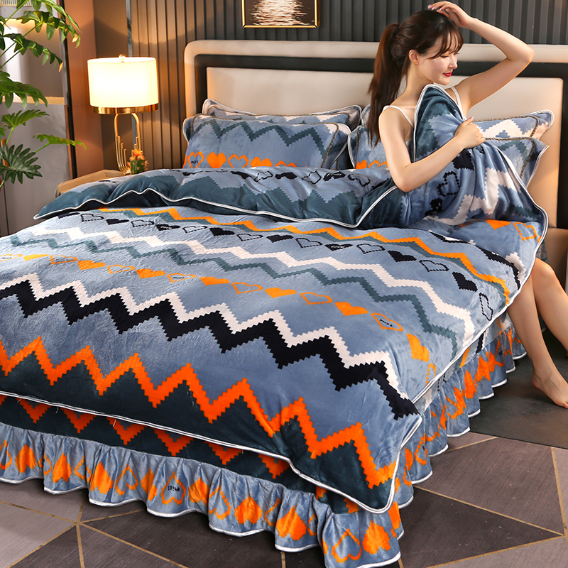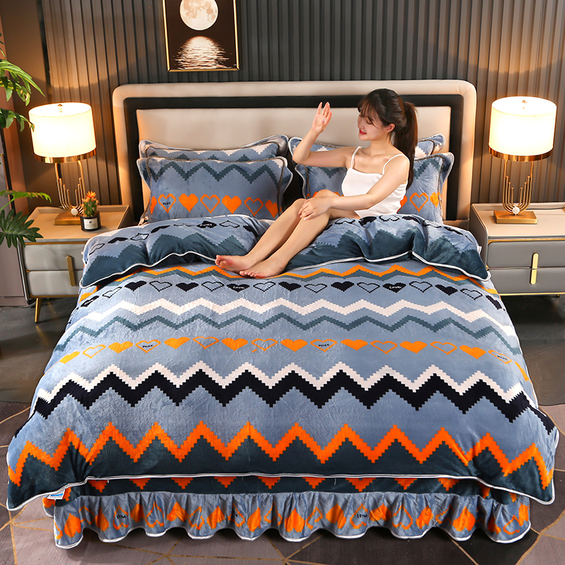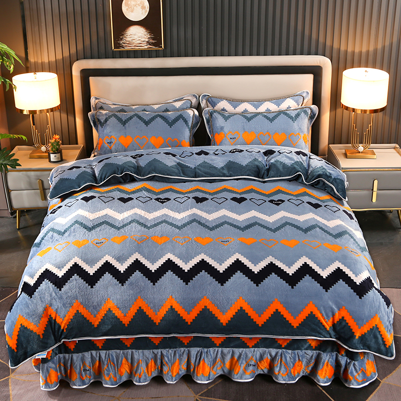 爱上家居 2023新款保暖金貂绒印花保暖四件套 彩色条纹-蓝