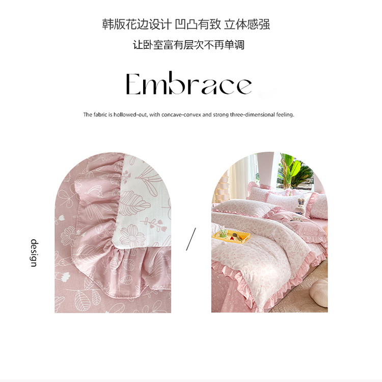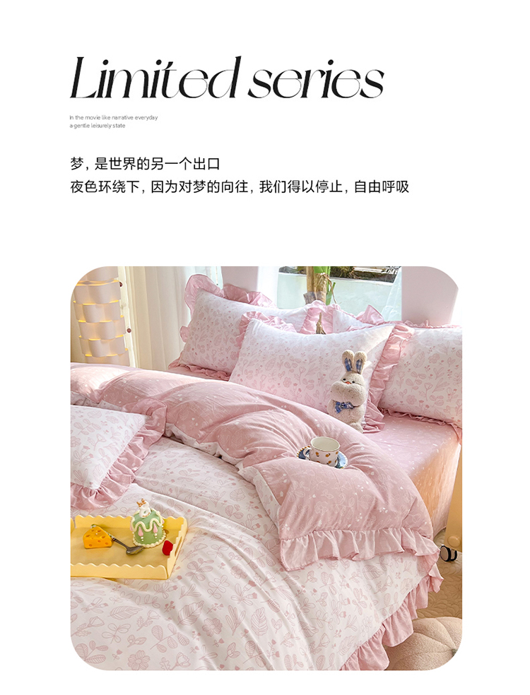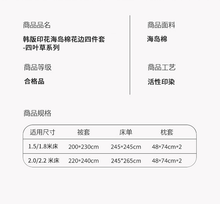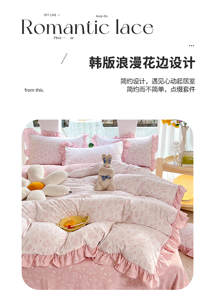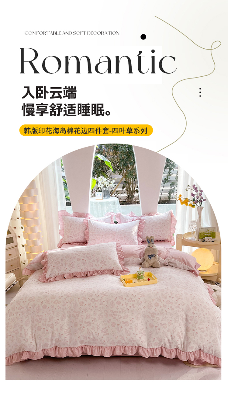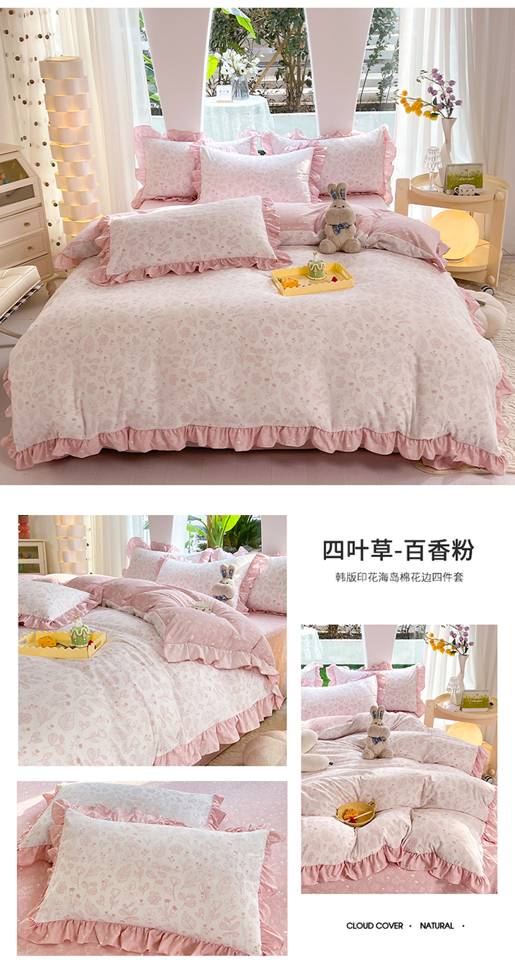 当前位置: 91家纺网 > 商品网购 > 床品套件 > 四件套 > 全棉普通四件套 > 大米 23韩版印花纯棉全棉荷叶边四件套12868套件 四叶草-百香粉