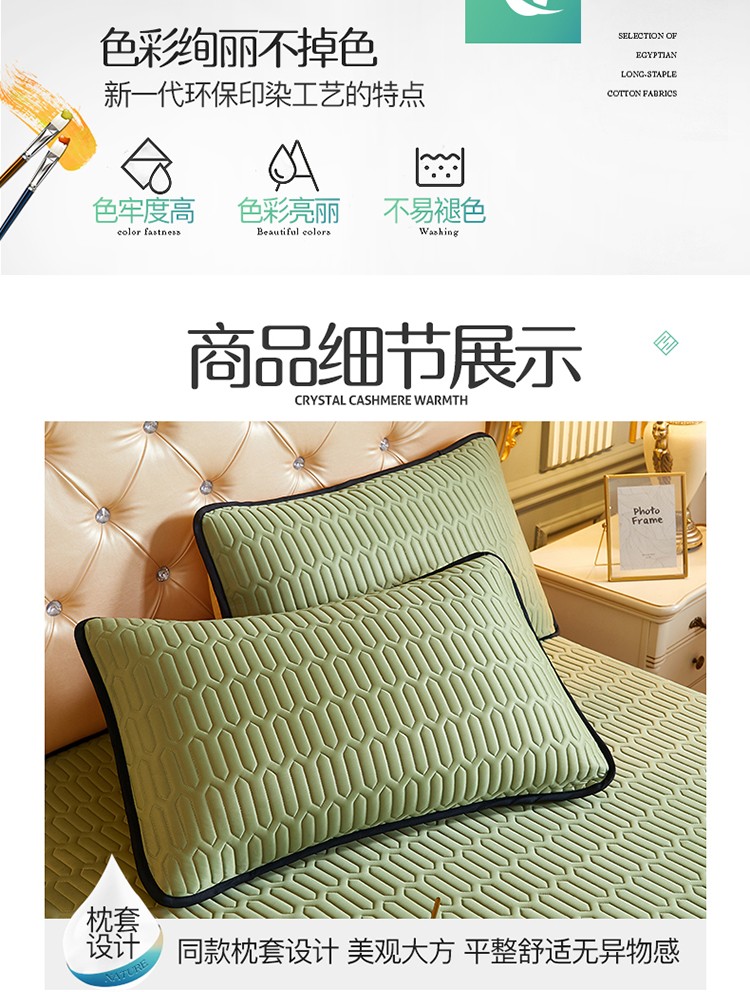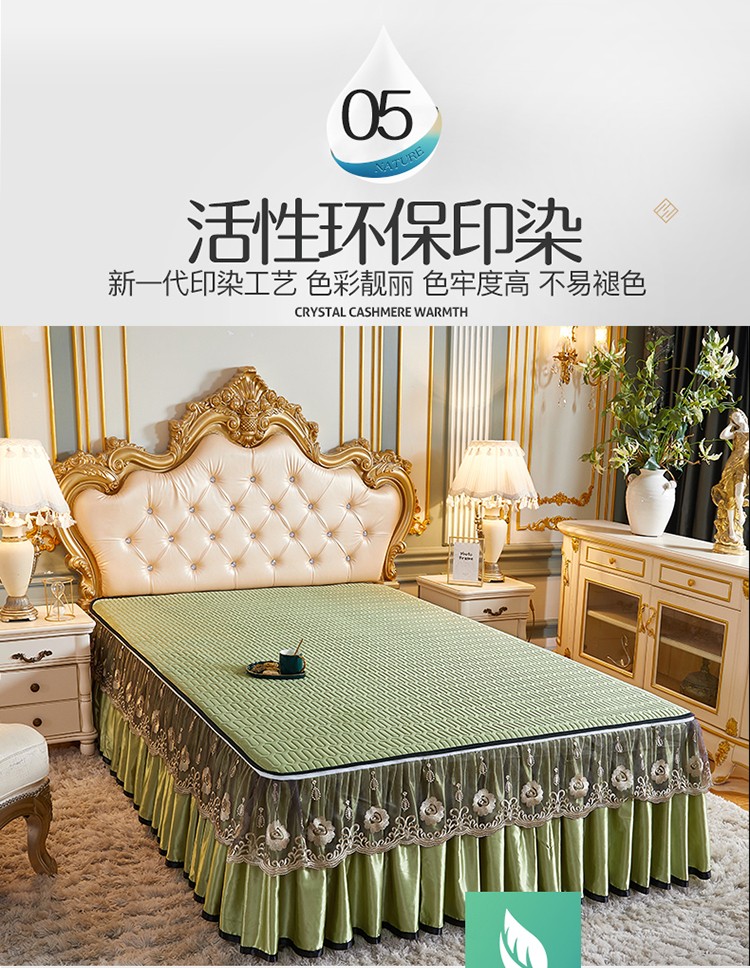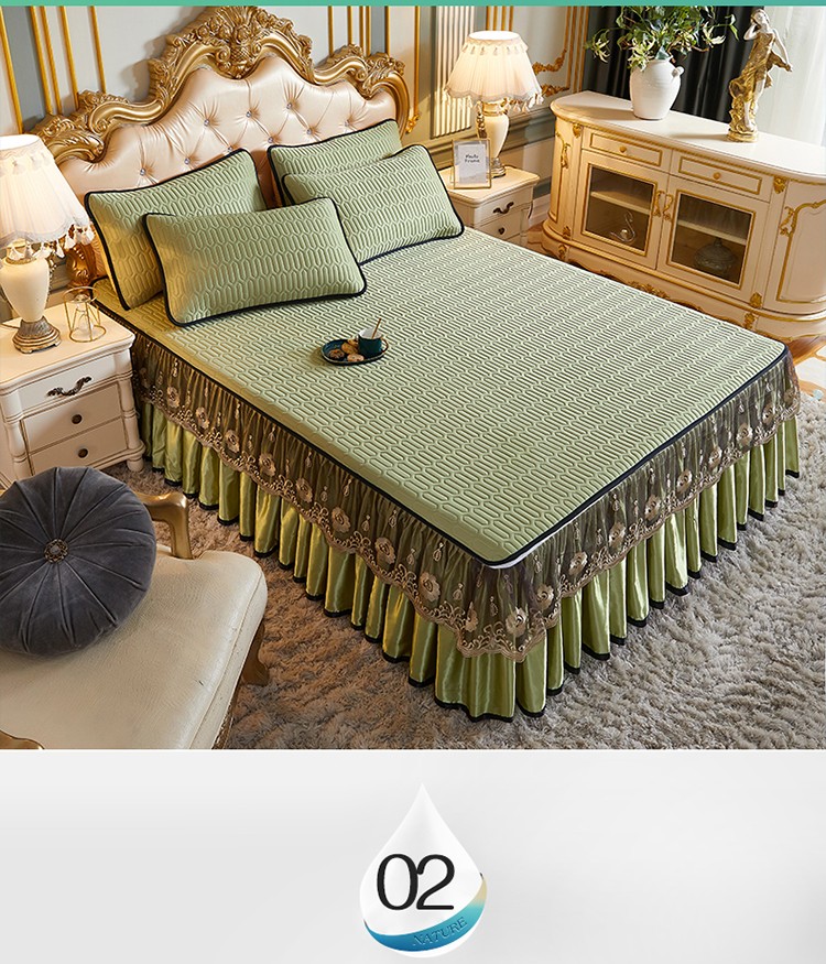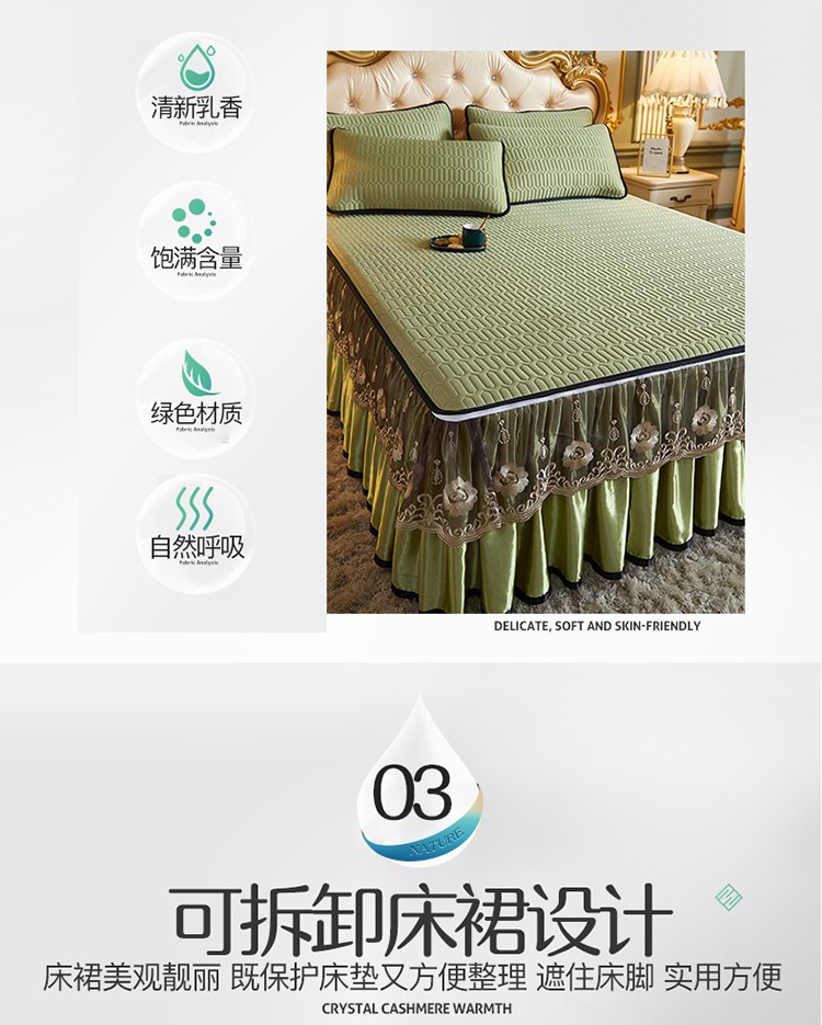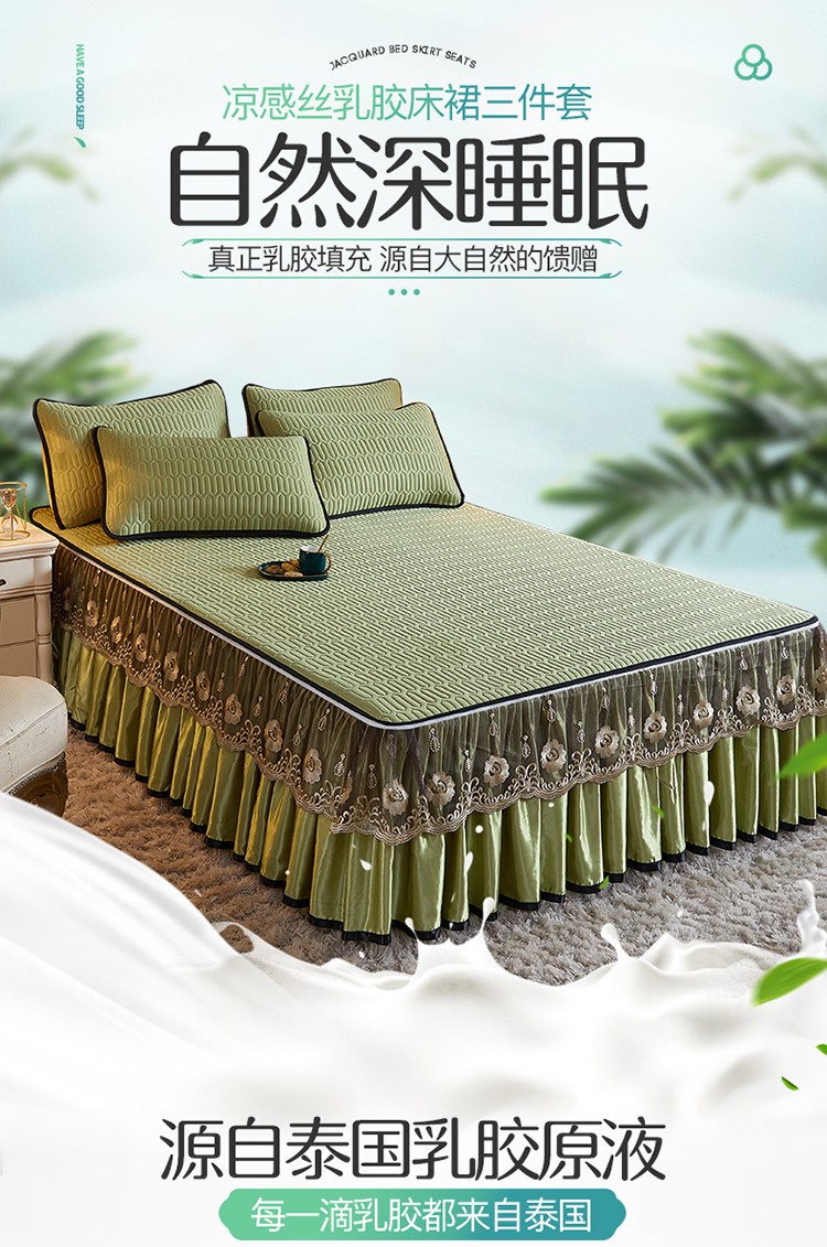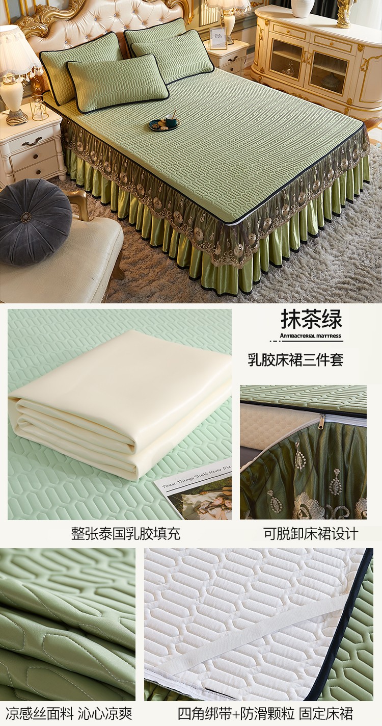 商品名称:网红馆 2025新款凉感丝黑边乳胶床裙三件套 抹茶绿