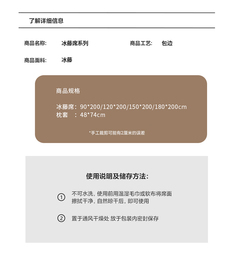 商品名称:爱上家居 2023新款冰藤席凉席冰丝席子 品调生活