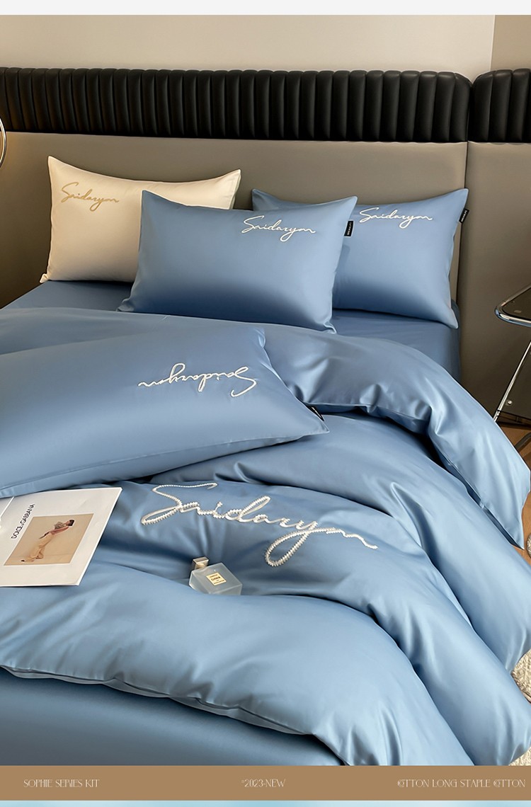 (总)蓝米卡夫 2024全棉高级感长绒棉刺绣-索菲-单被套