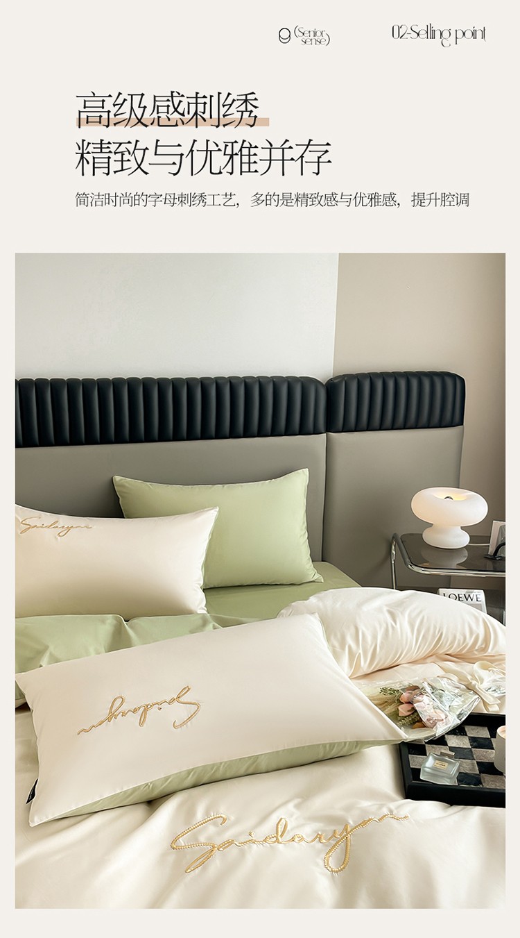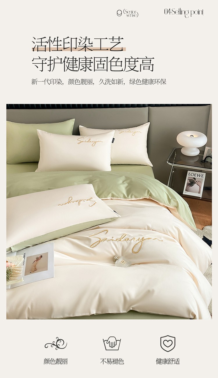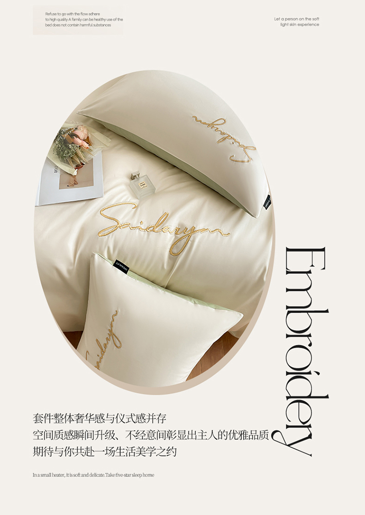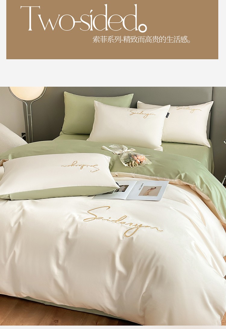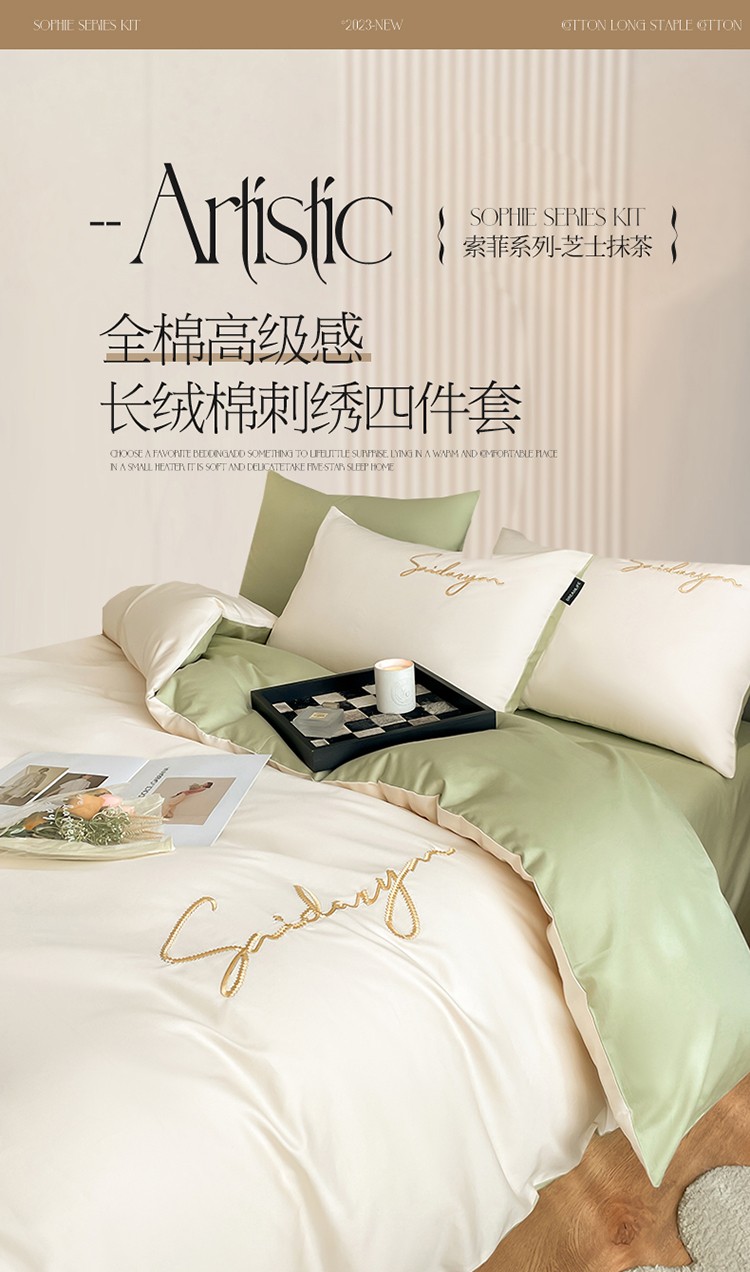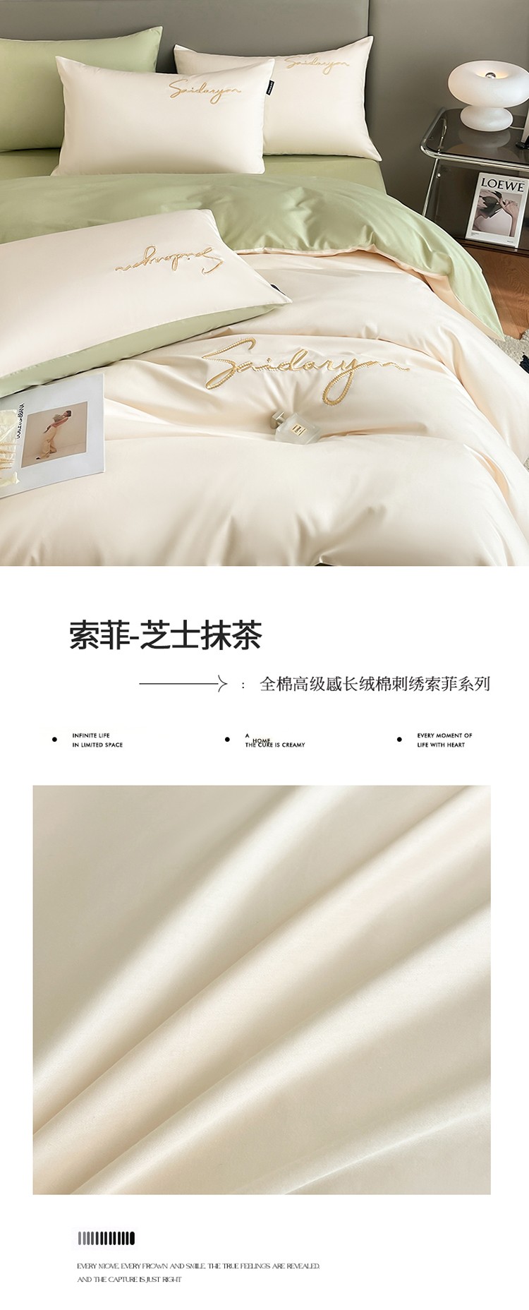 商品名称:蓝米卡夫 2024全棉高级感长绒棉刺绣-索菲-单被套 索菲-芝士抹茶
