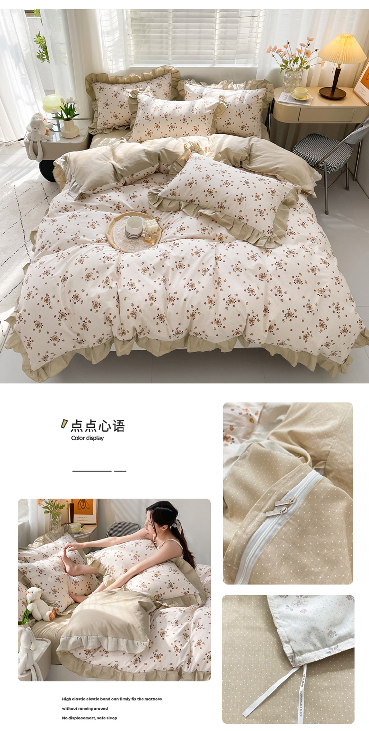 商品名称:简爱 2025新款13372韩版纯棉花边四件套 点点心语