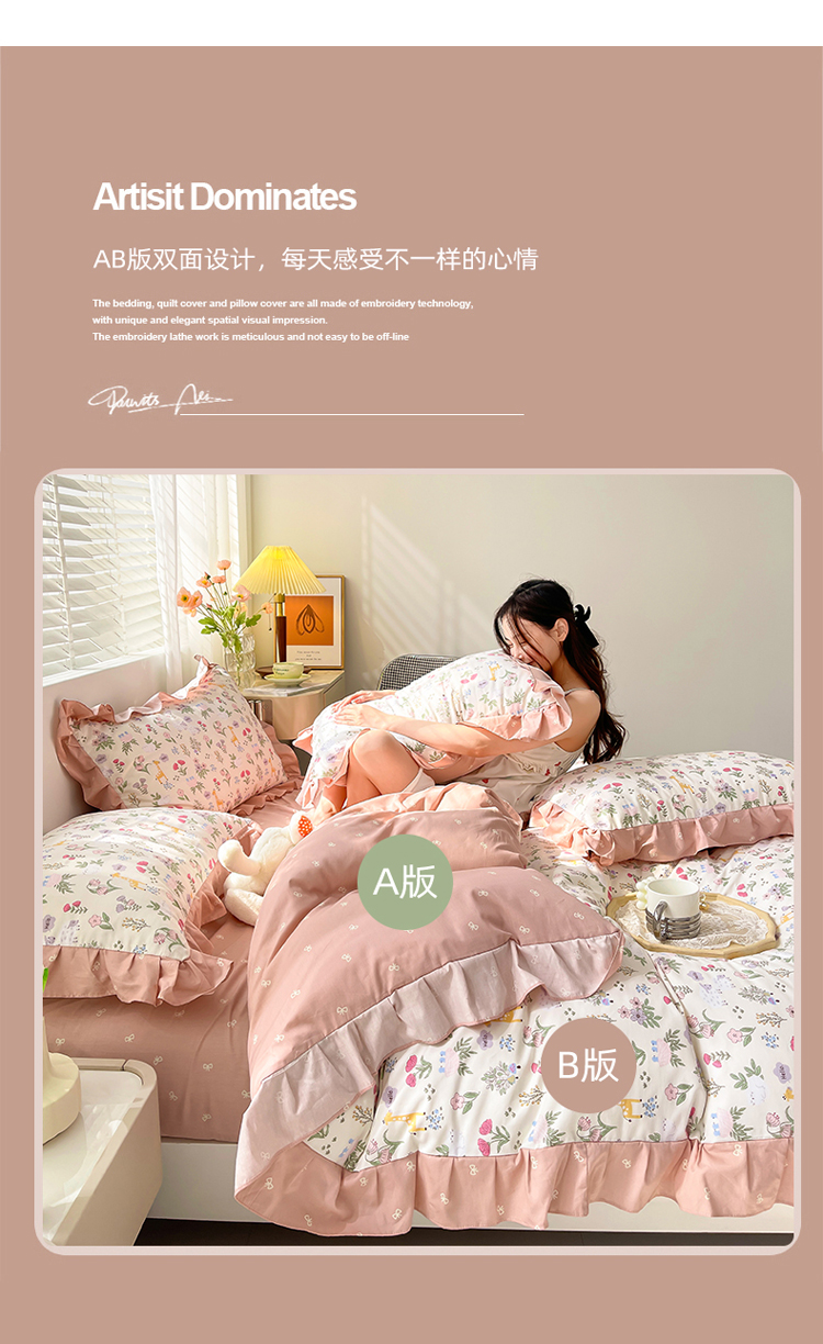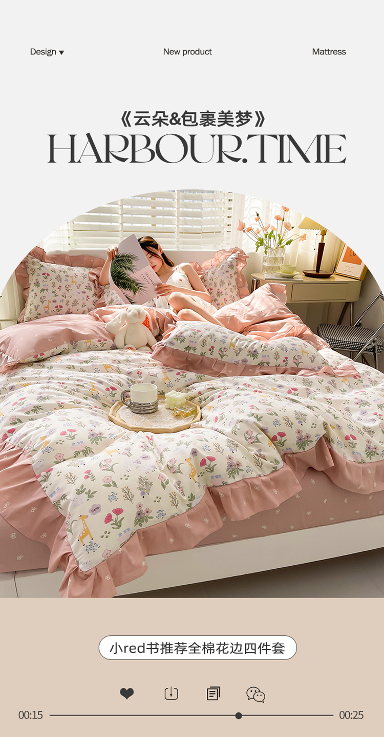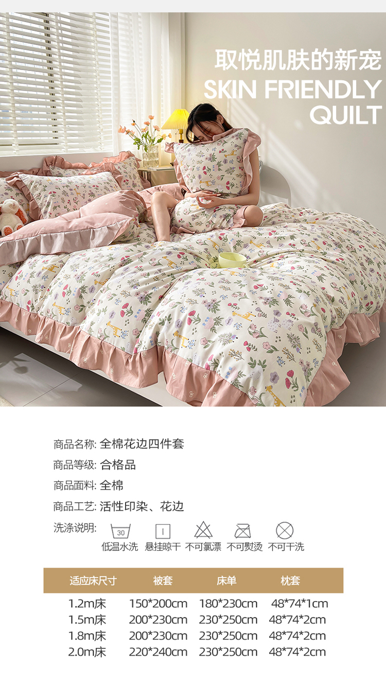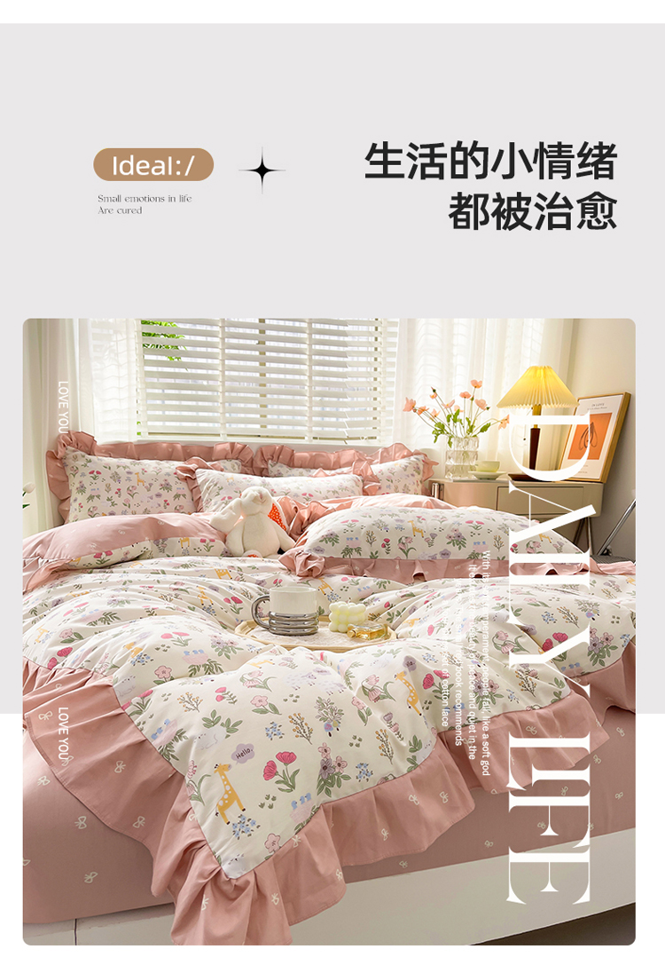 商品名称:简爱 2025新款13372韩版纯棉花边四件套 又见花开
