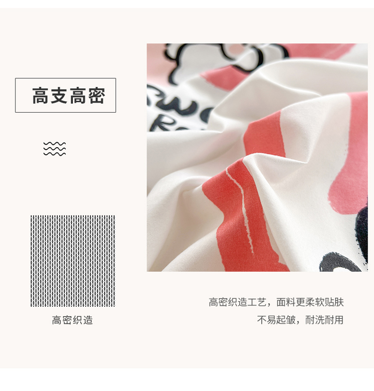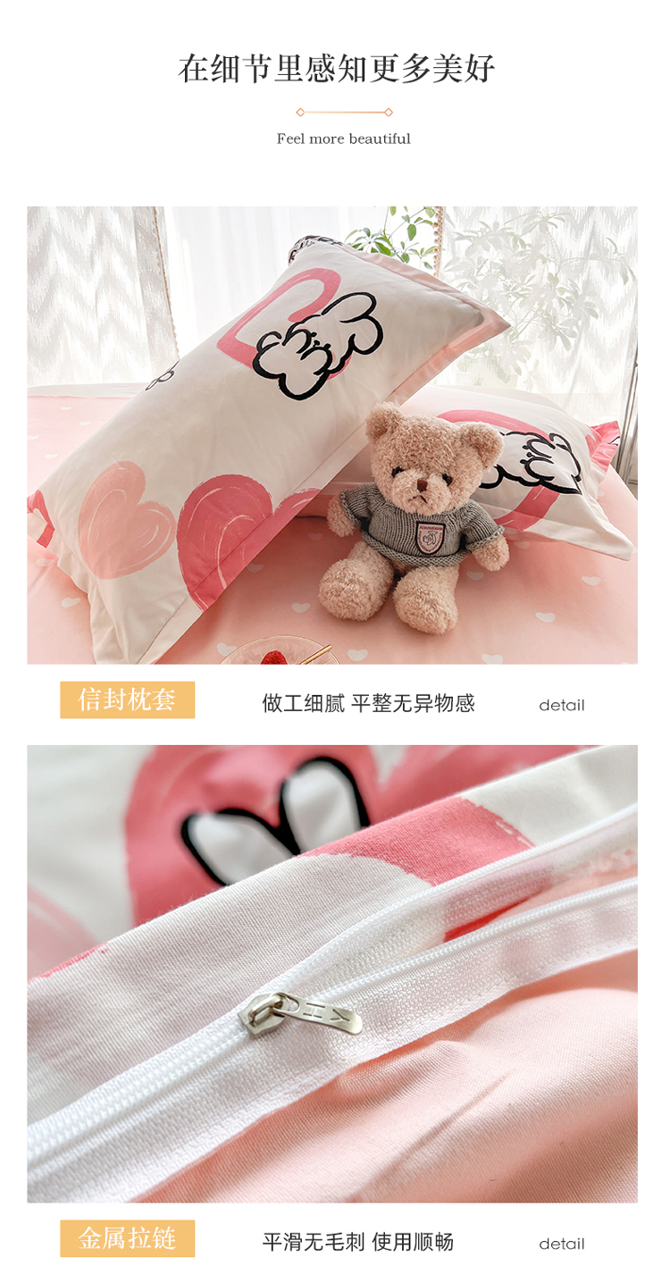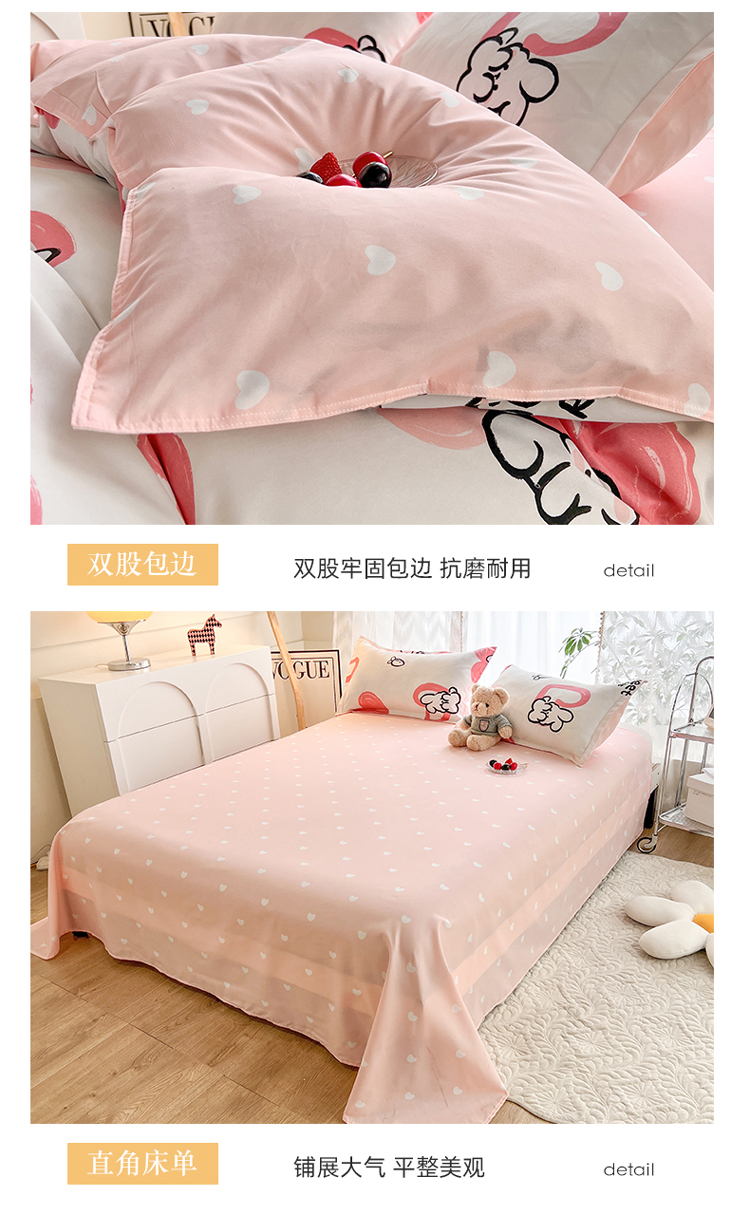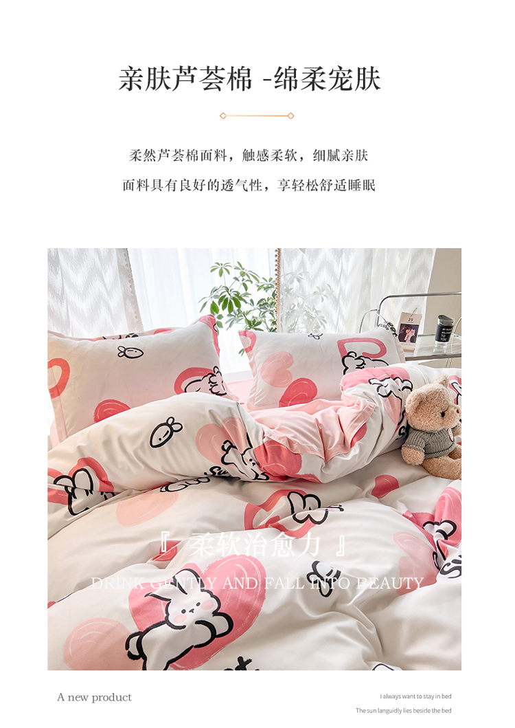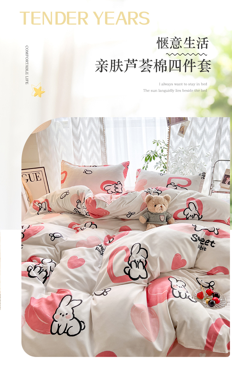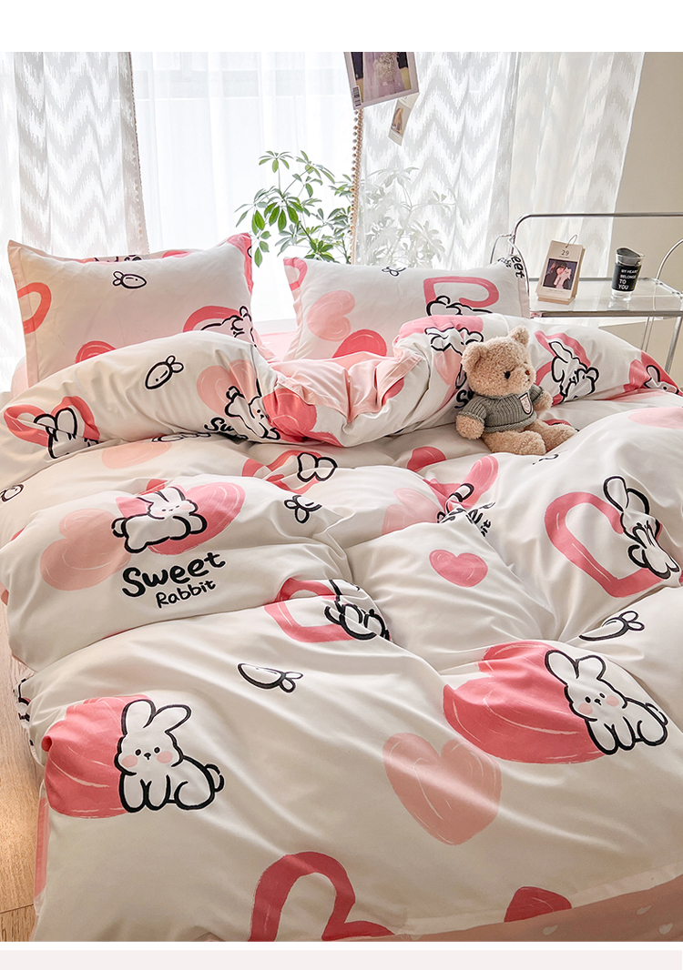 宏源家纺 2023年4月新款芦荟棉亲肤印花四件套 粉心兔
