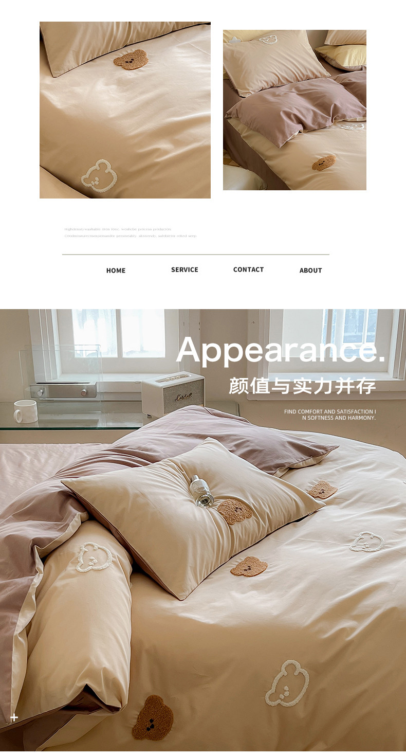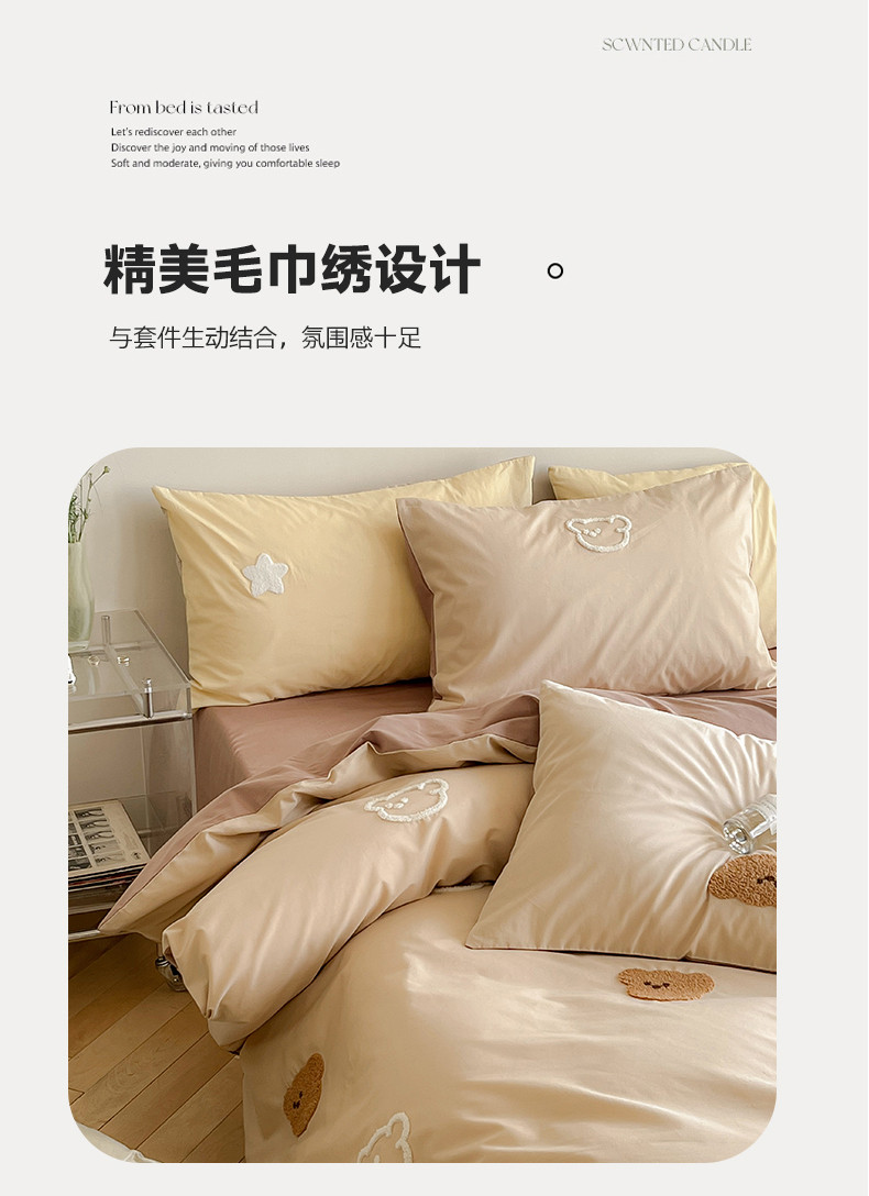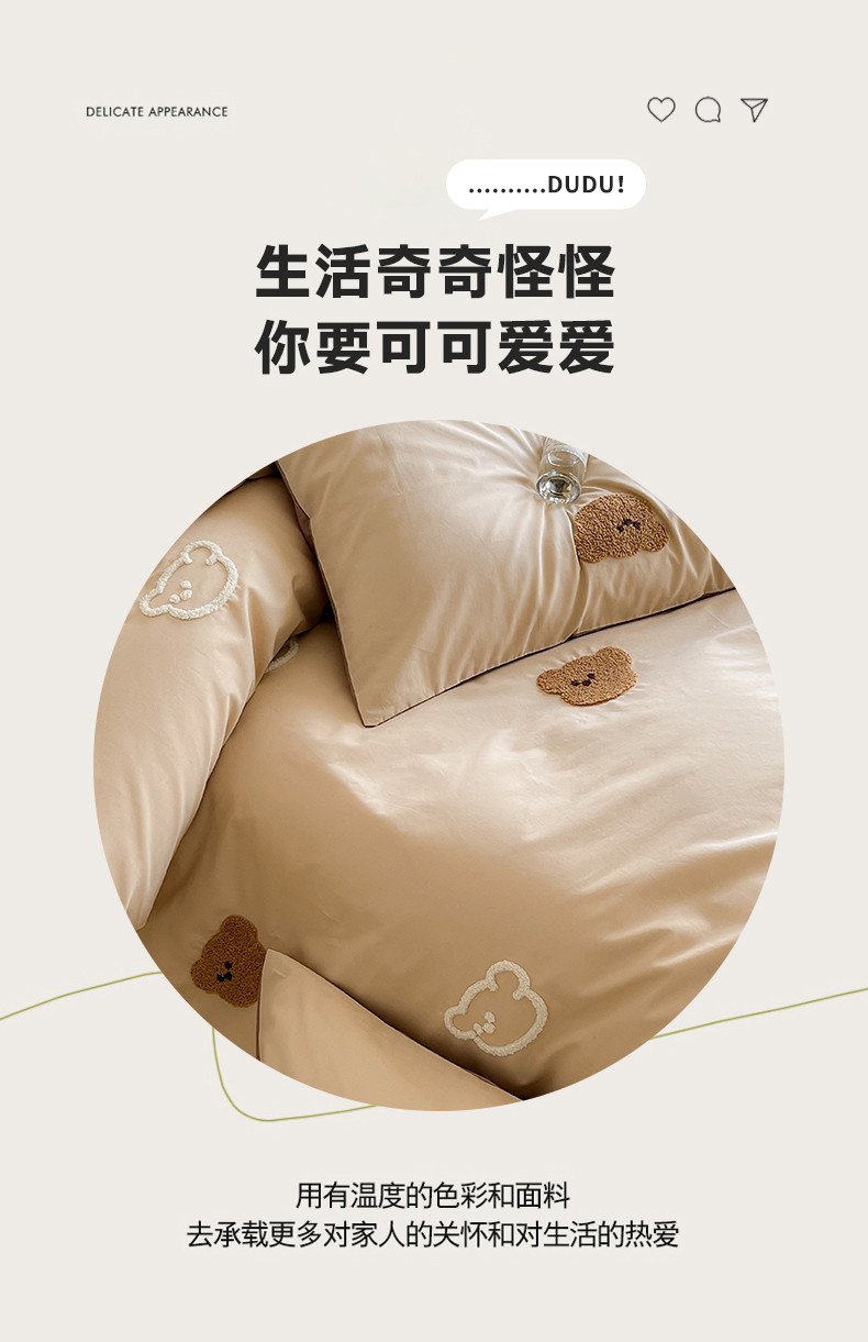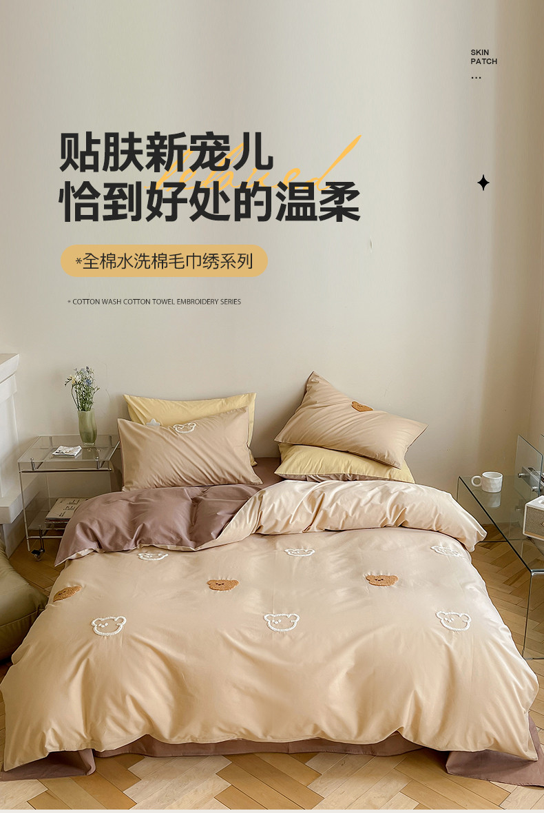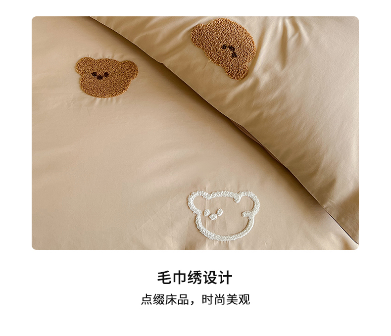 当前位置: 91家纺网 > 商品网购 > 床品套件 > 四件套 > 全棉普通四件套 > 时年 全棉水洗棉毛巾绣系列 40水洗-熊崽崽