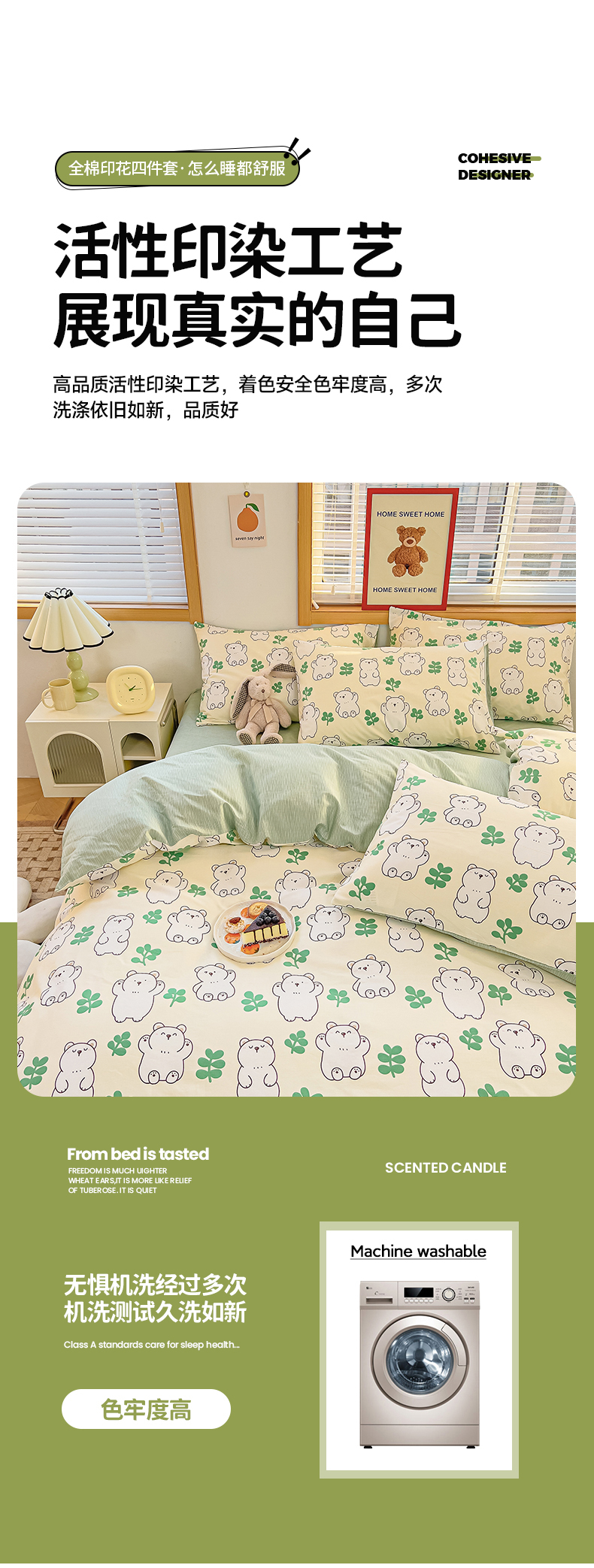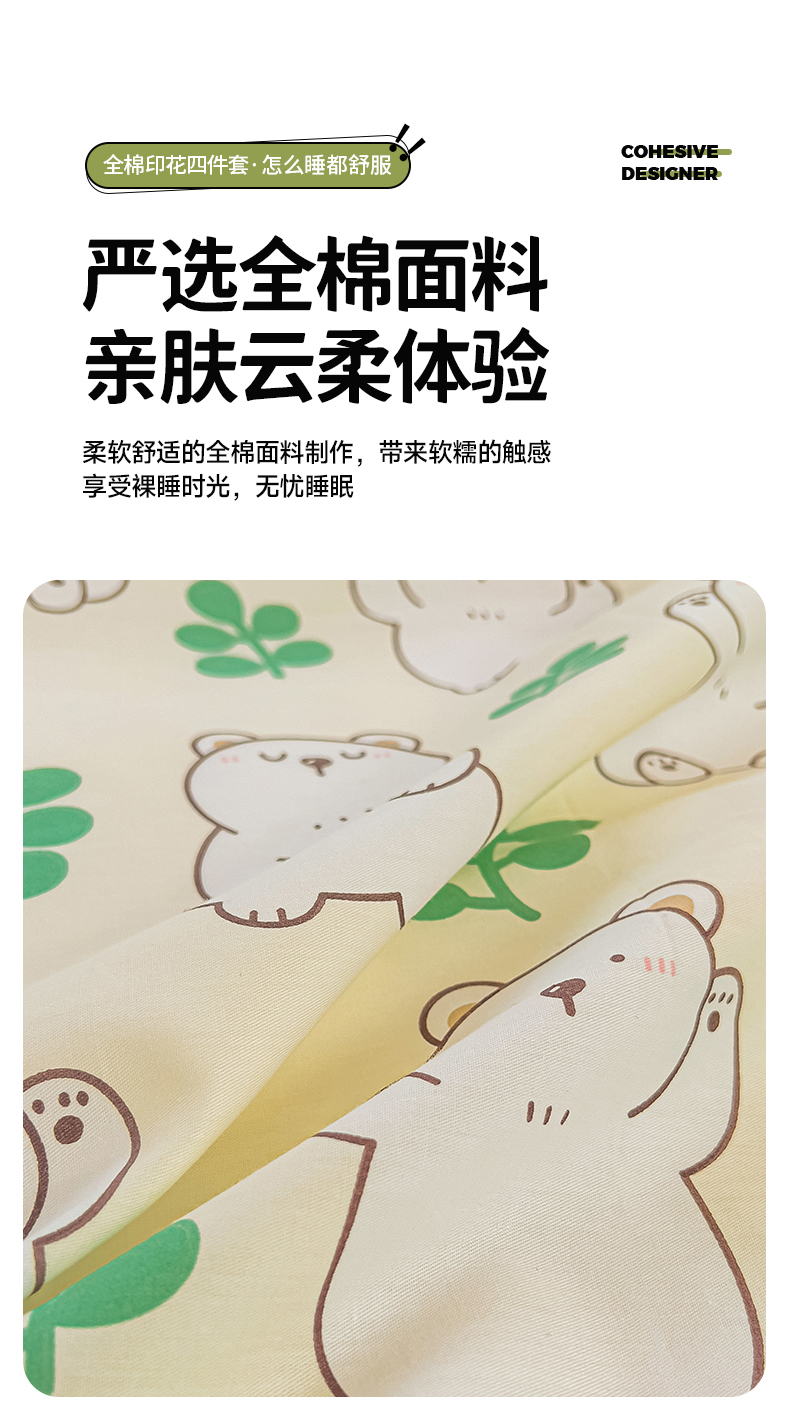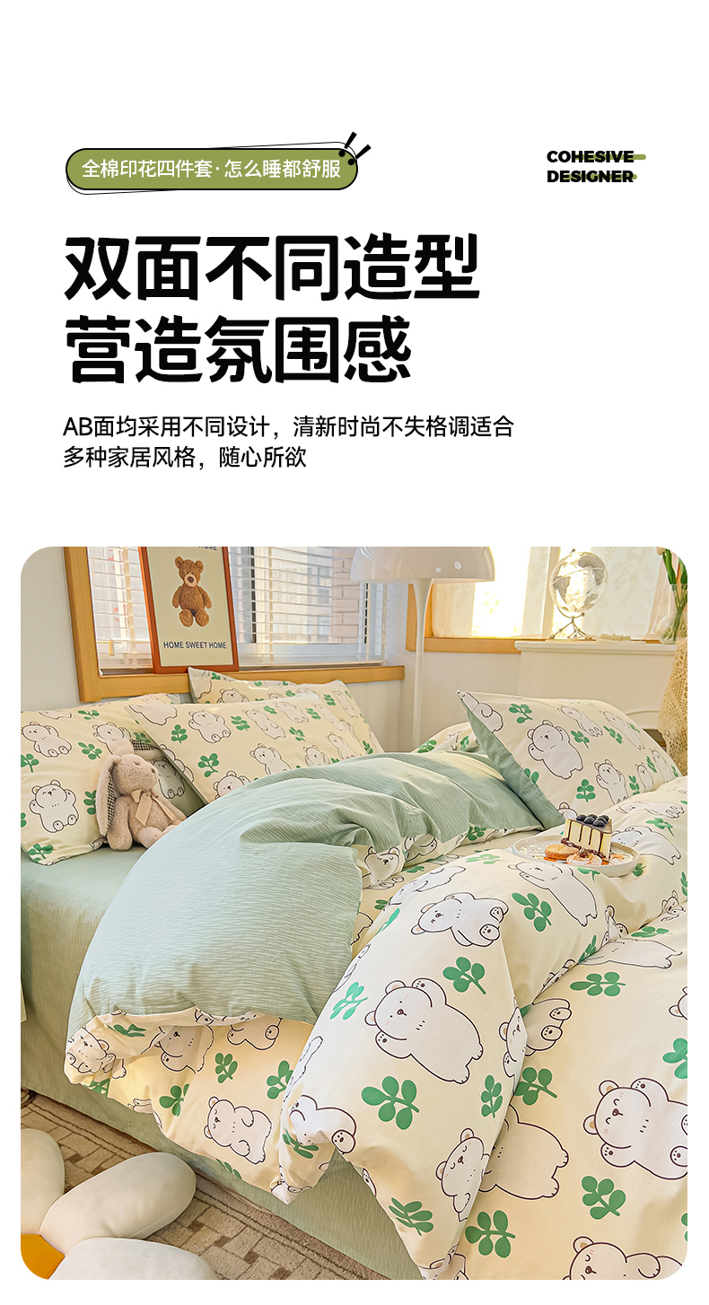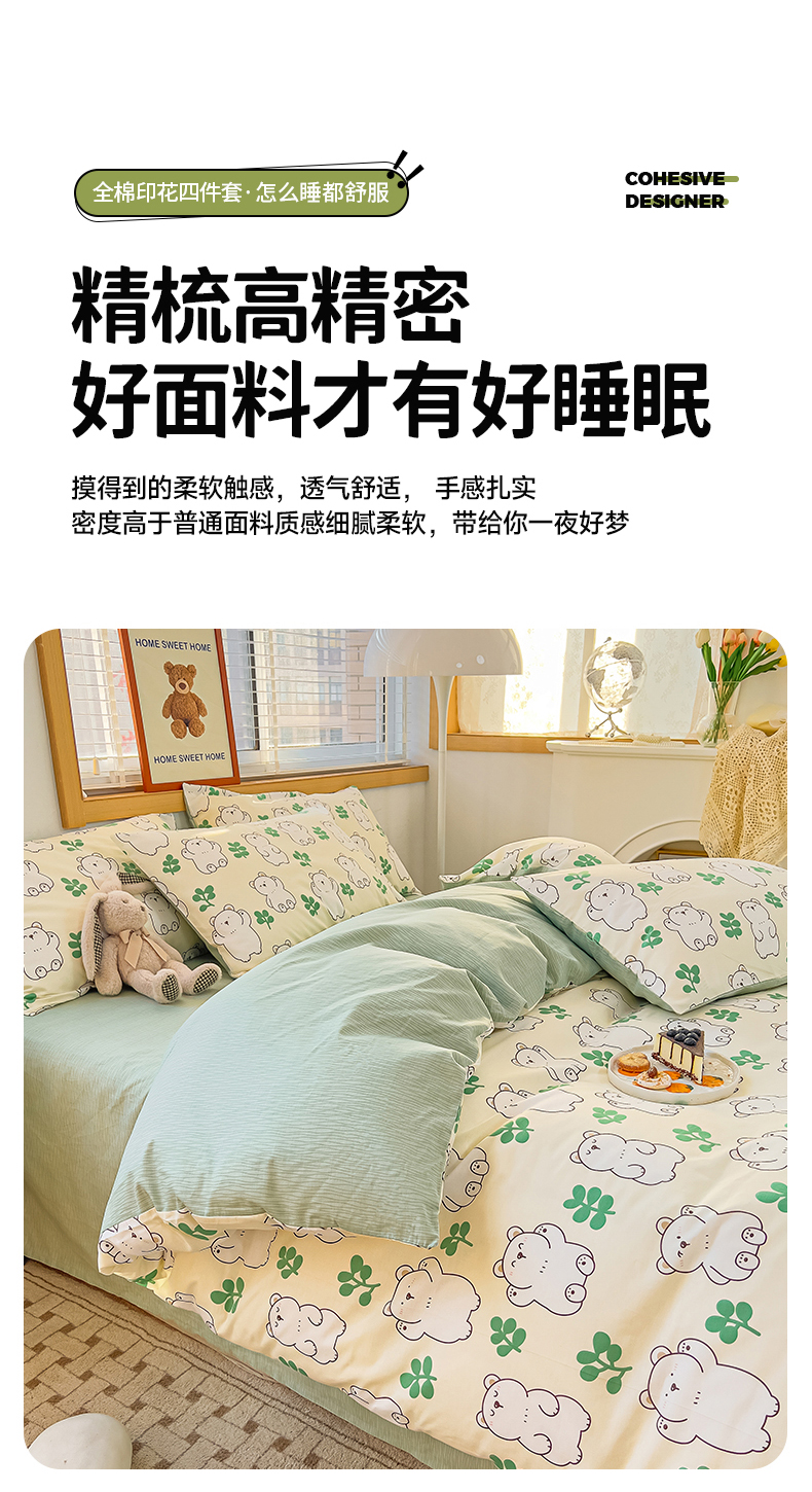 寐眠 2023新款13372全棉印花四件套 大白熊