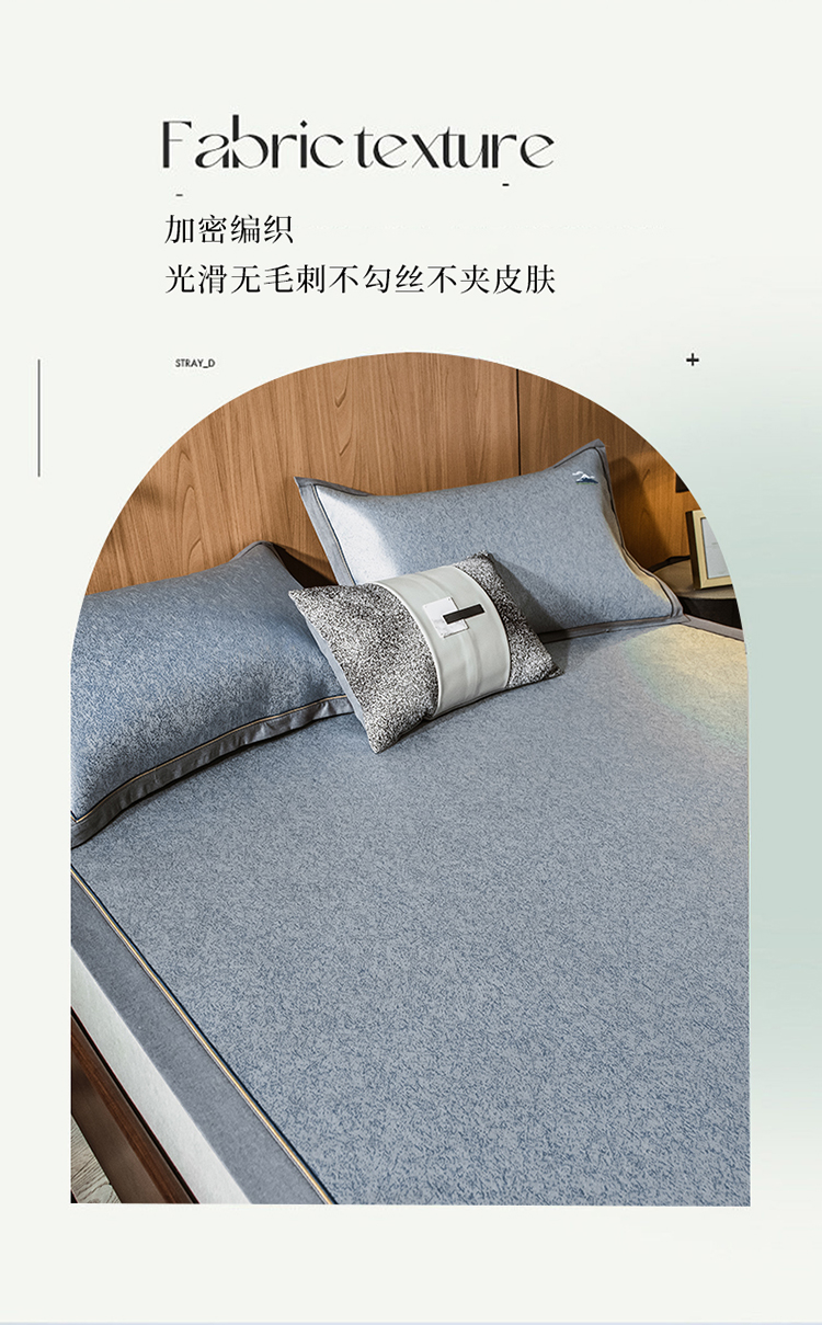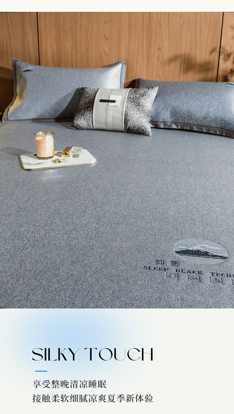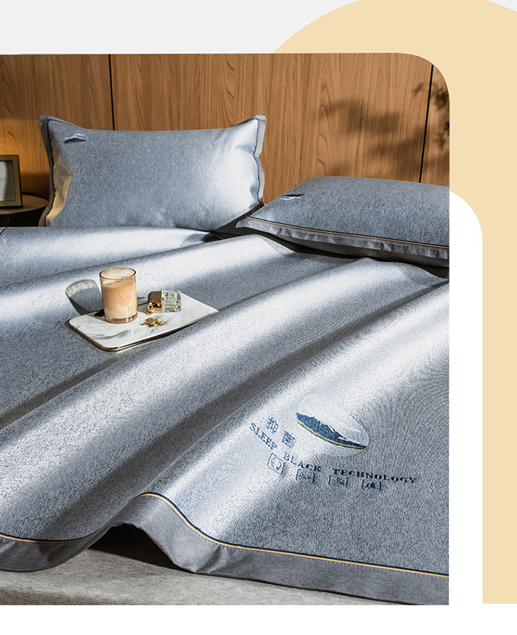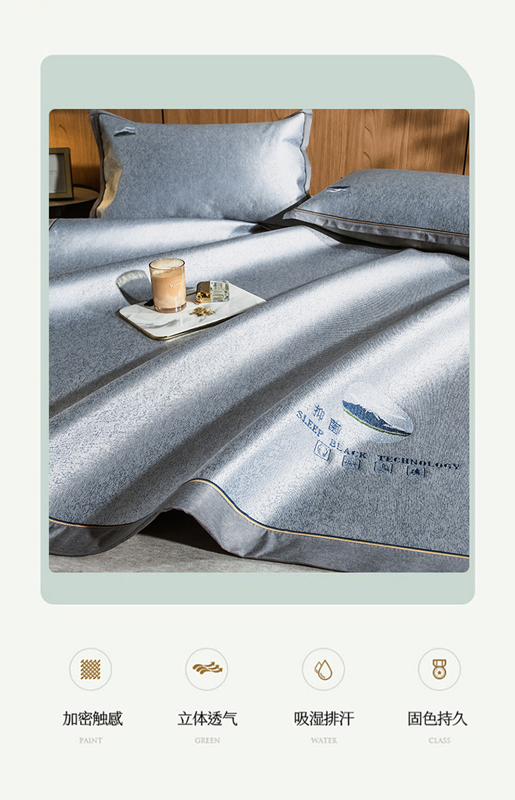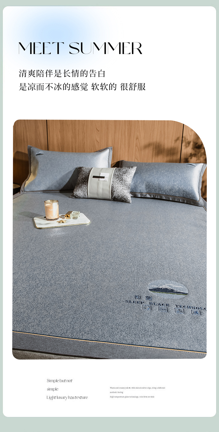 (总)全季家居 2023新款纯色凉感丝刺绣凉席,天蓝,灰色,粉色,绿色,草绿