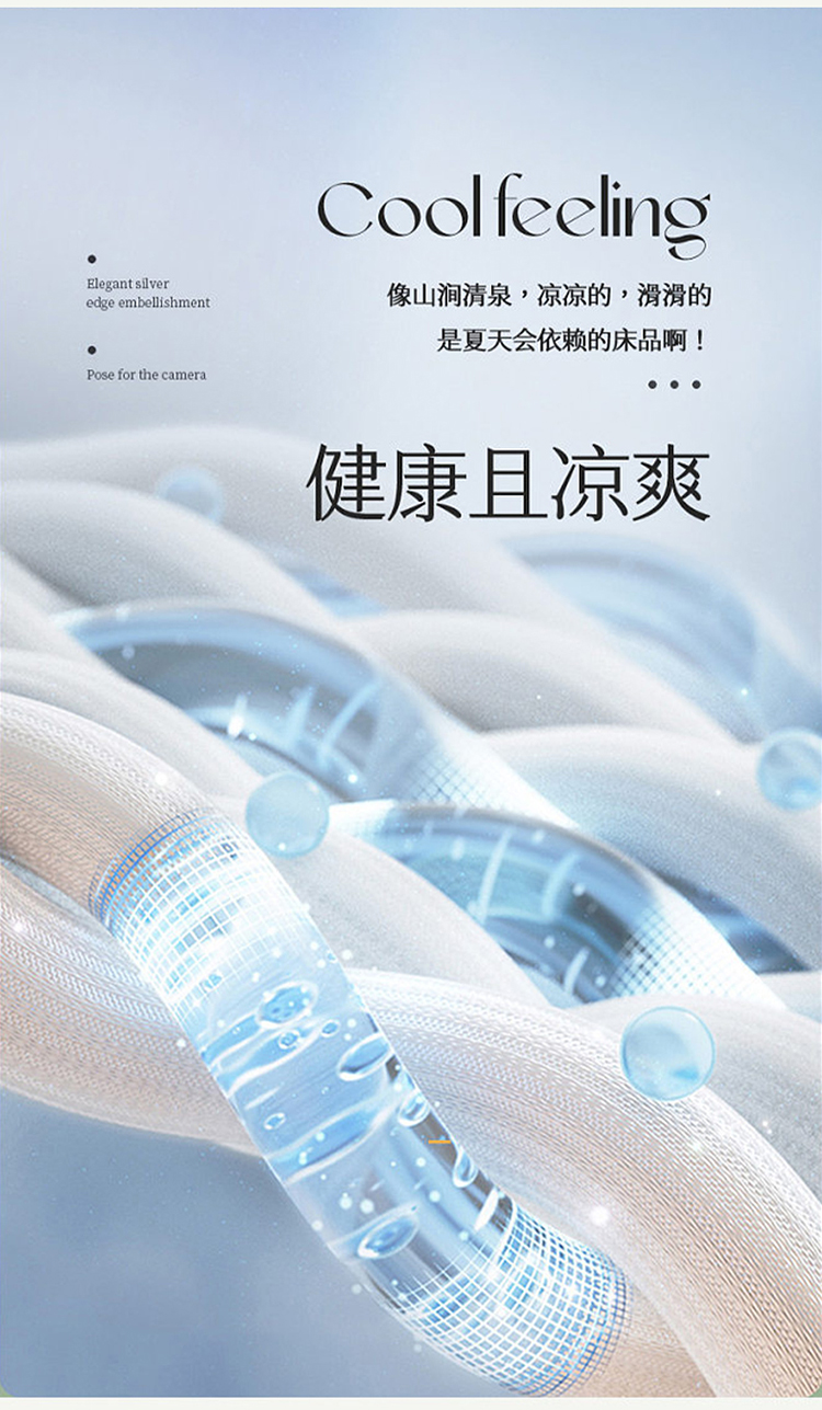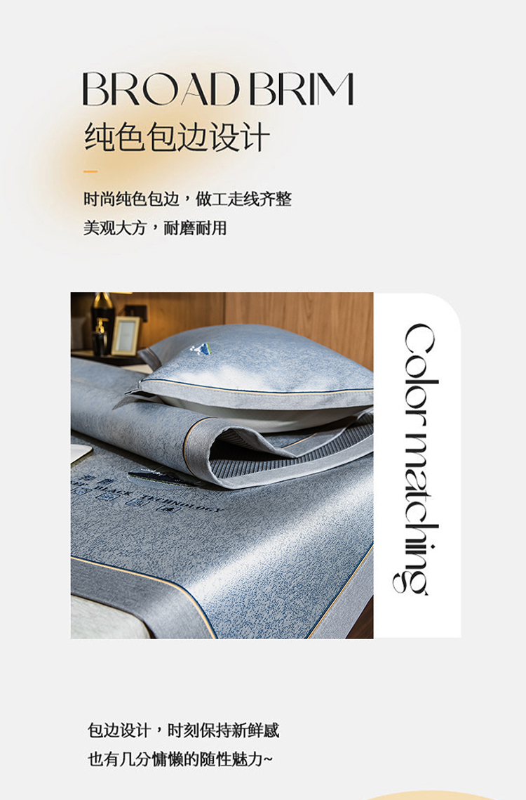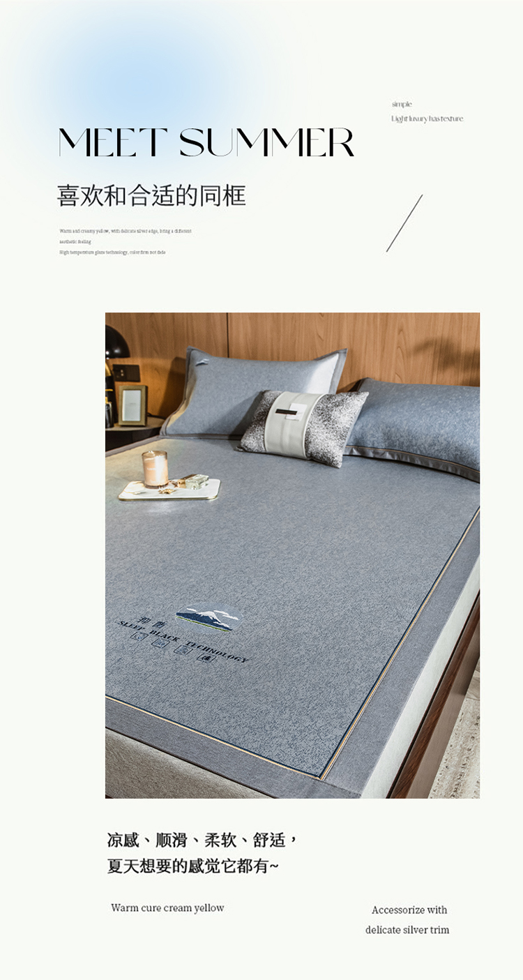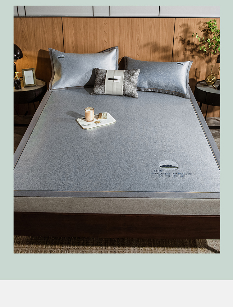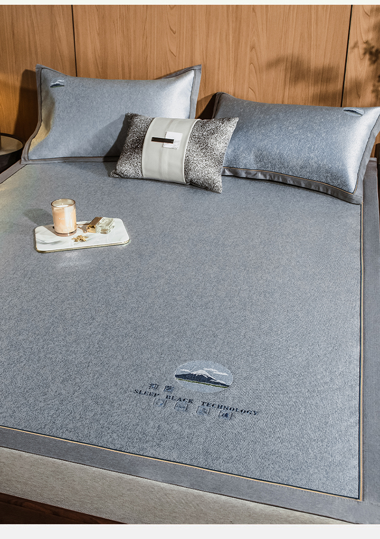 (总)全季家居 2023新款纯色凉感丝刺绣凉席,天蓝,灰色,粉色,绿色,草绿