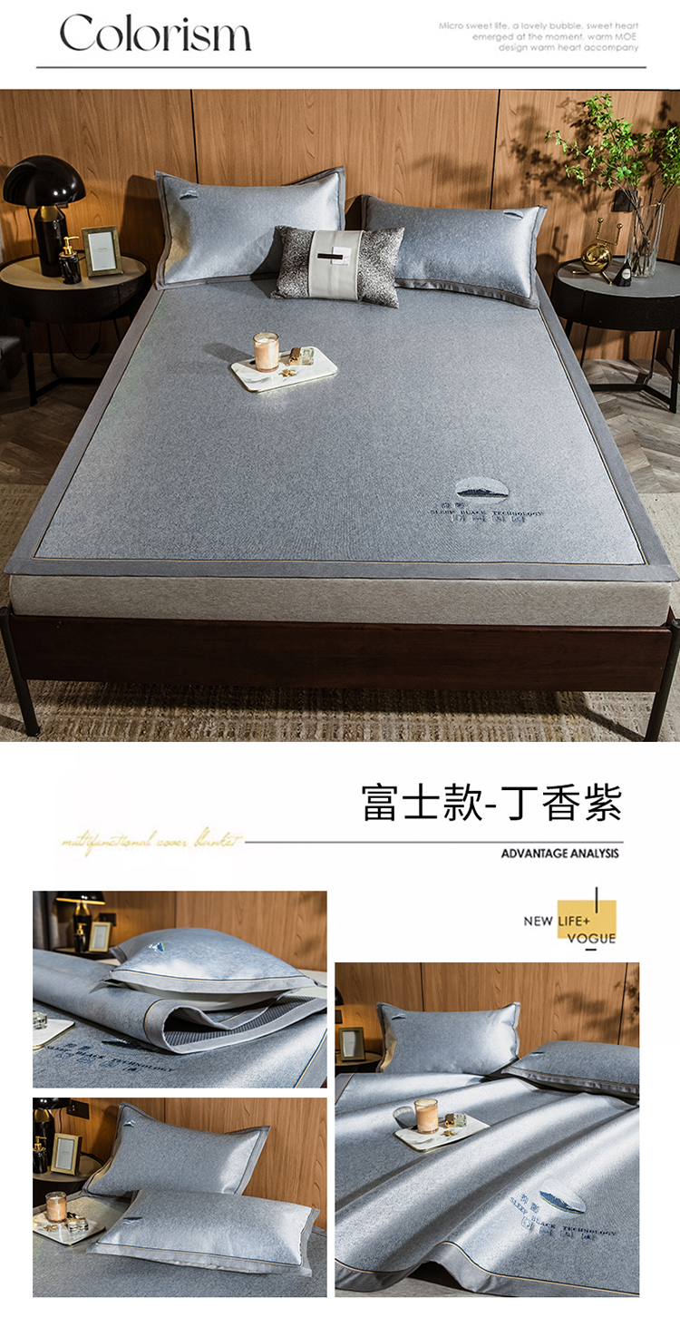 商品名称:2023全季家居纯色凉感肌理纹富士款冰丝凉席 富士款-丁香紫