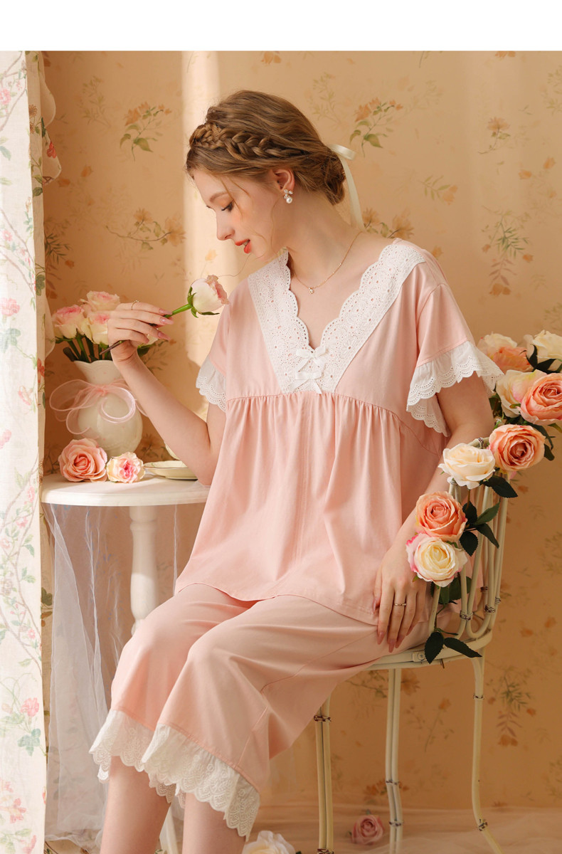 (总)洛兰沙家居馆 2025新款云涧全棉女士家居服七分袖九分裤套装夏季薄款睡衣宽松休闲简约风,云涧粉色,云涧绿色,组合图仅供参考不可下单