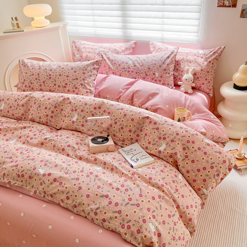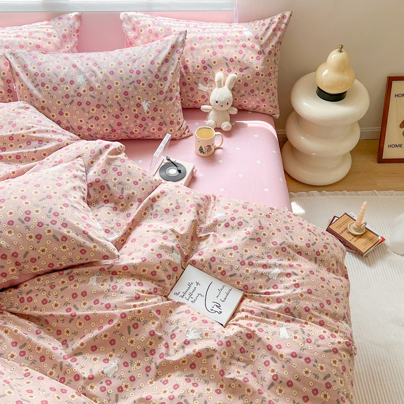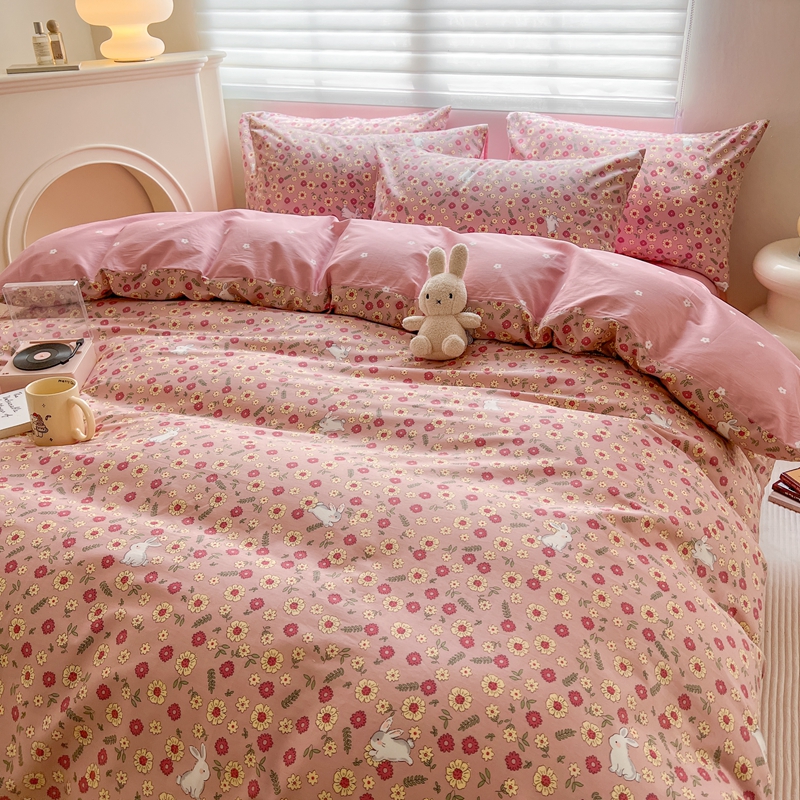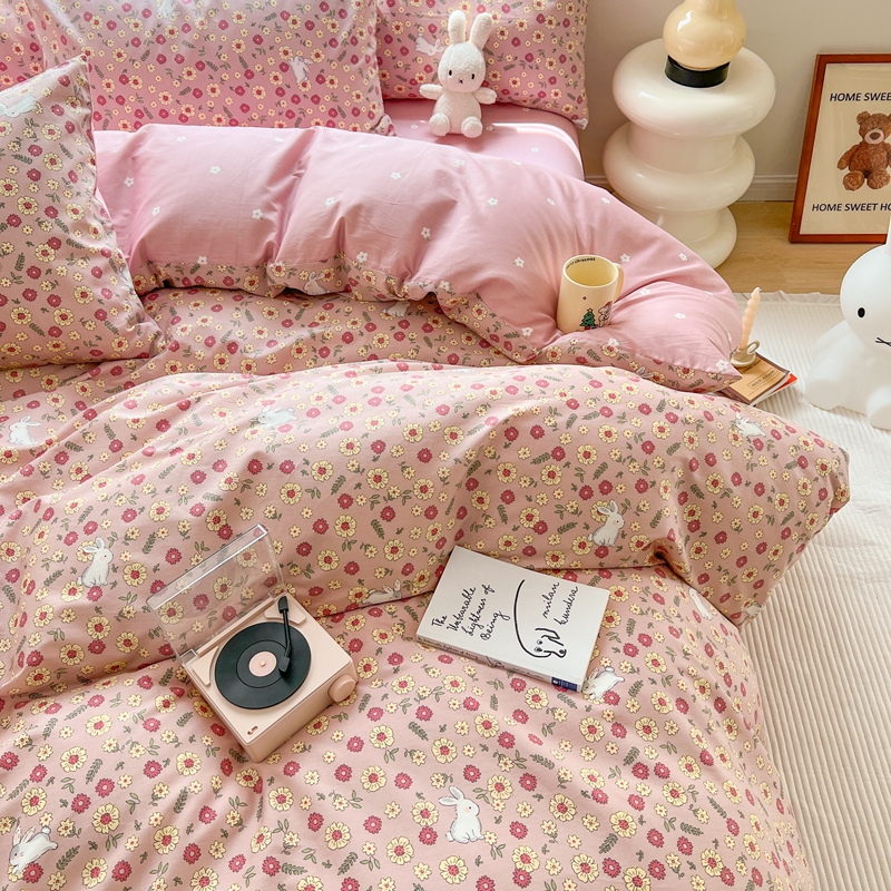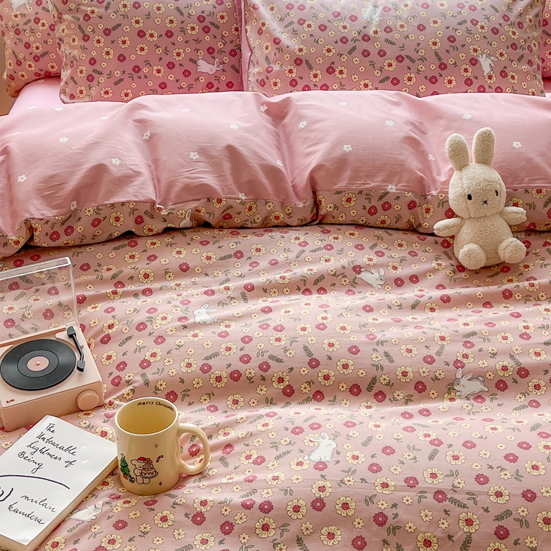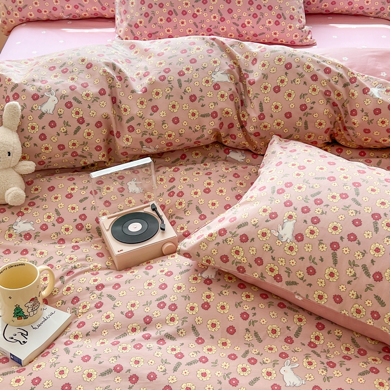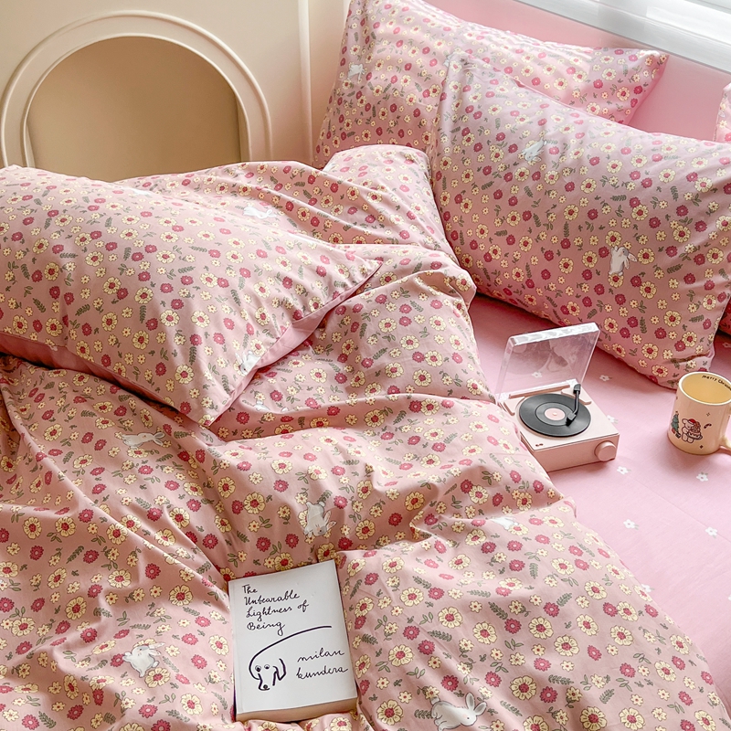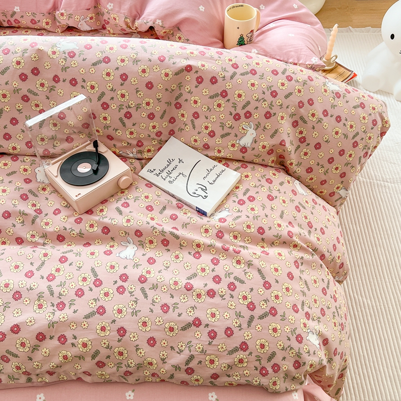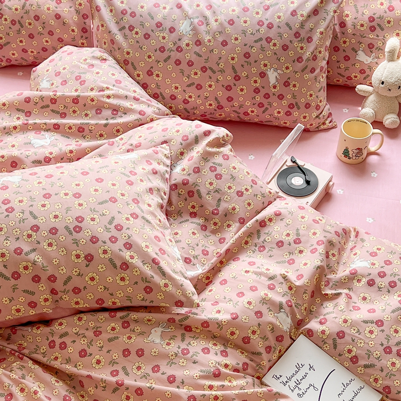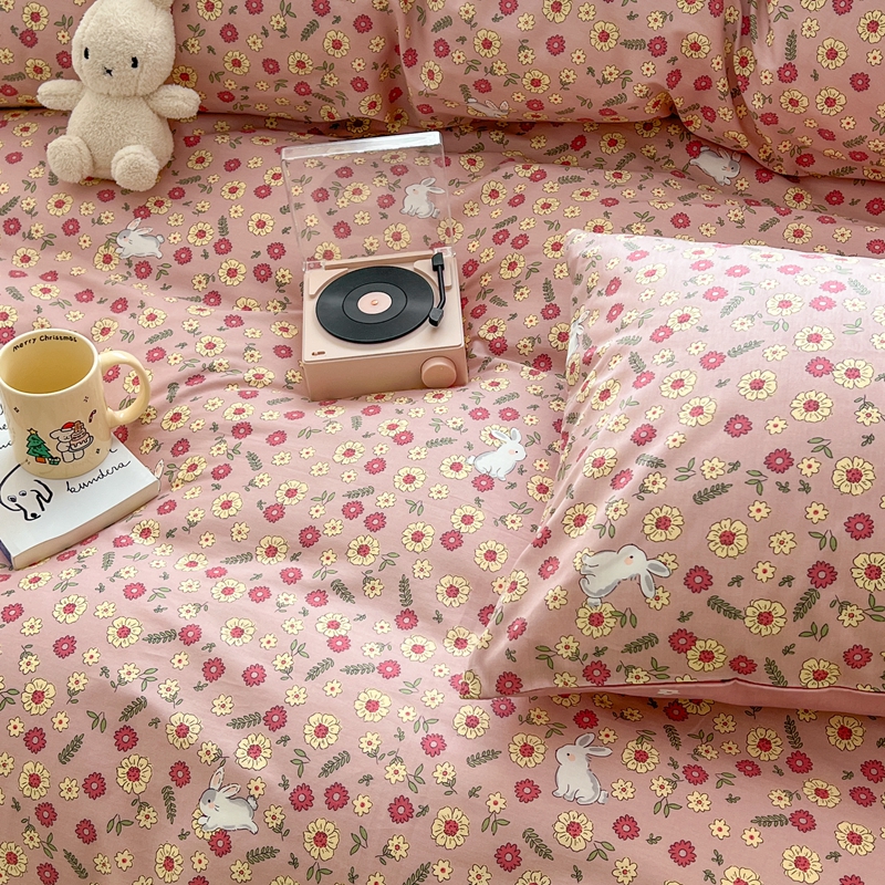 顾里 2023韩系氛围全棉四件套 花丛奶兔