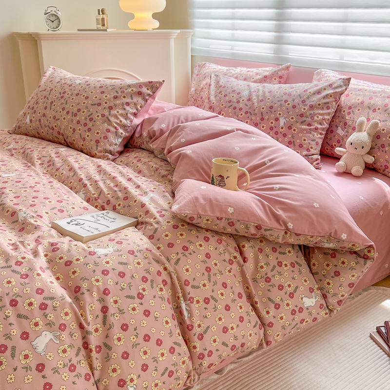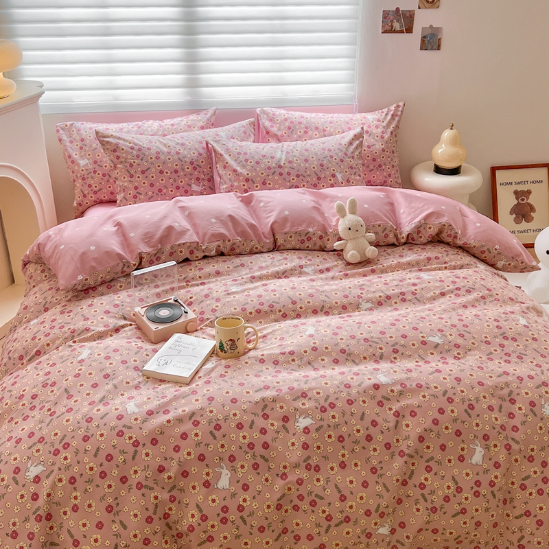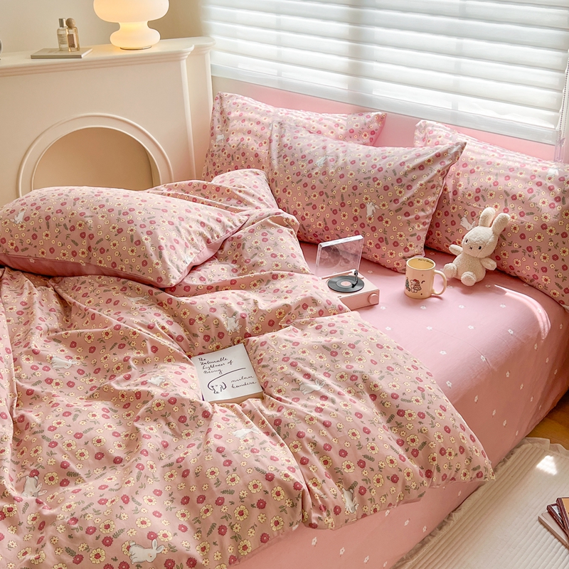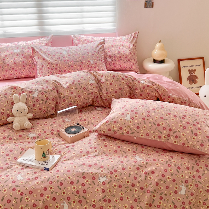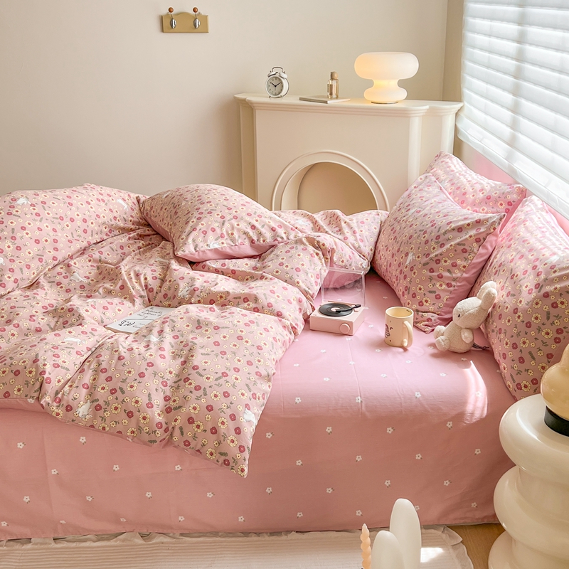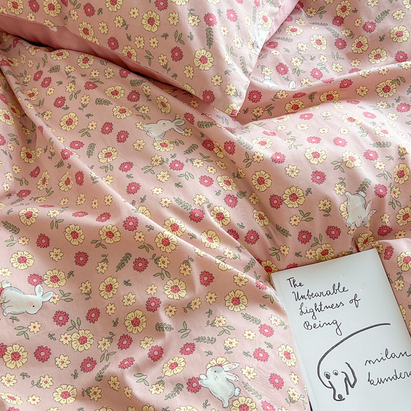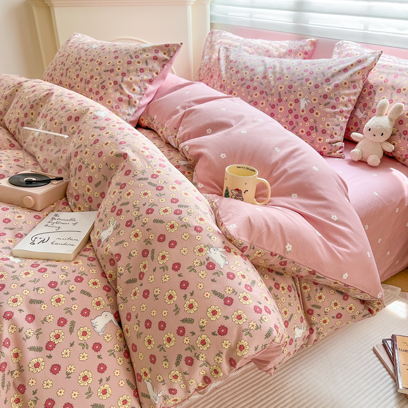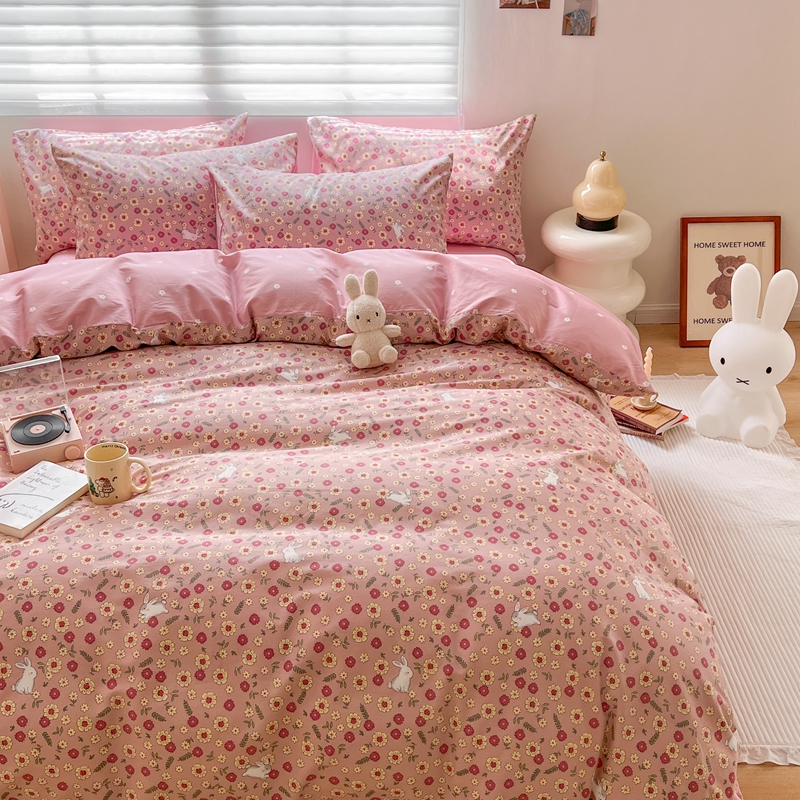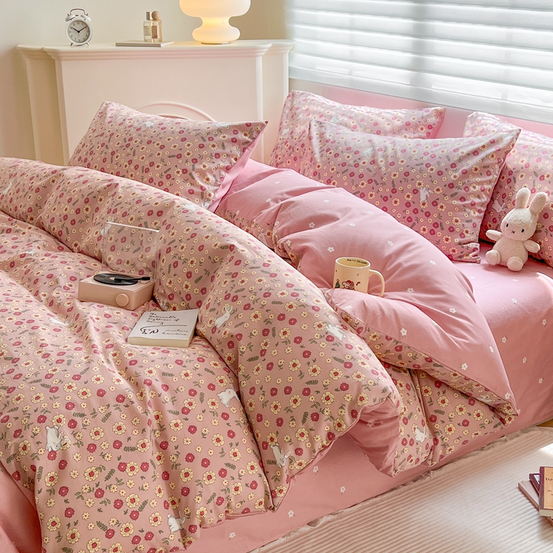 顾里 2023韩系氛围全棉四件套 花丛奶兔