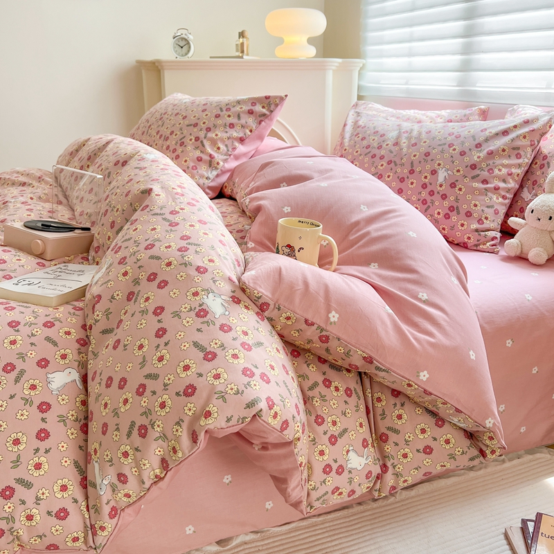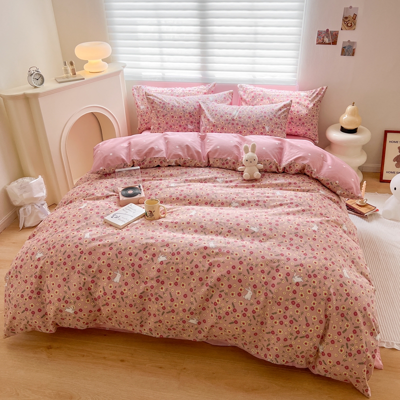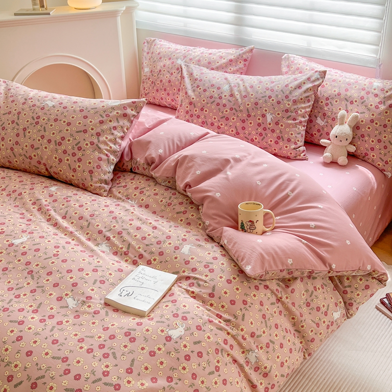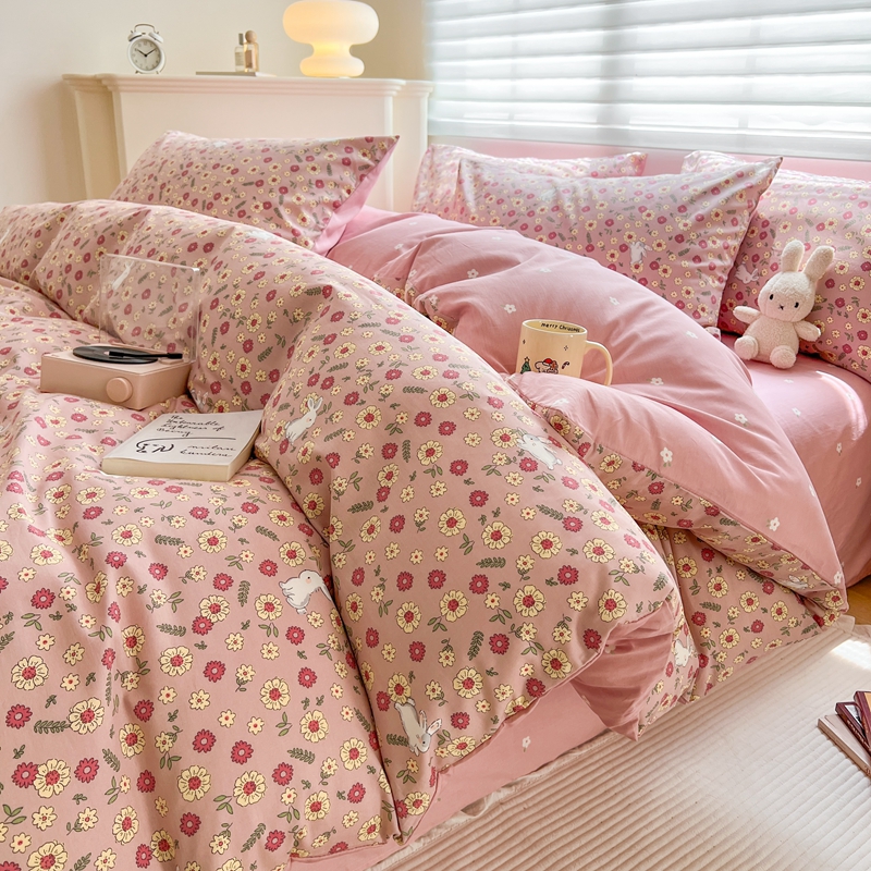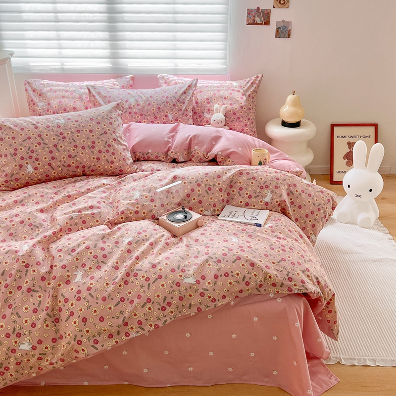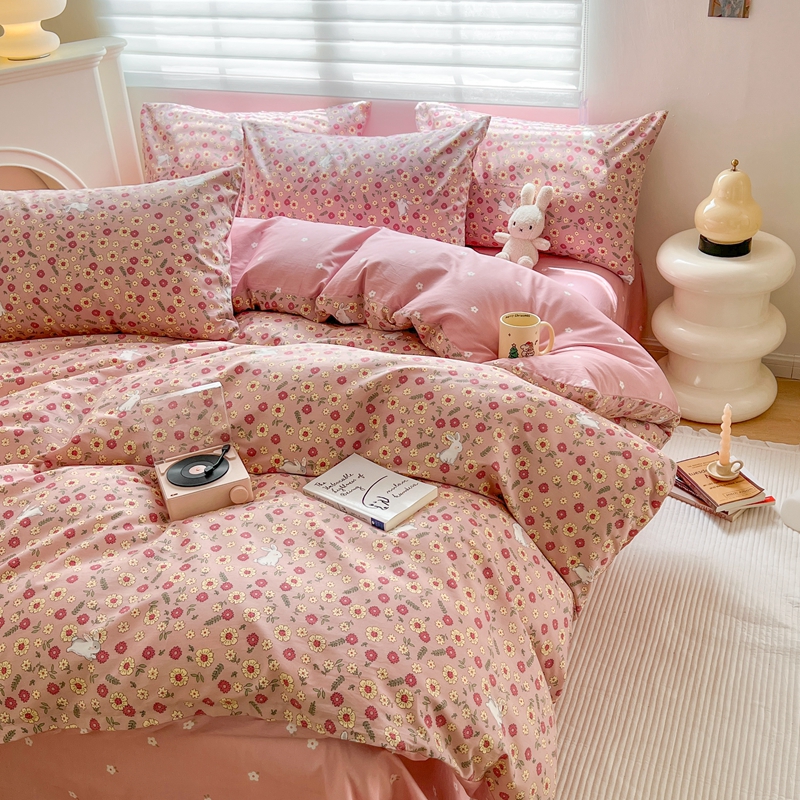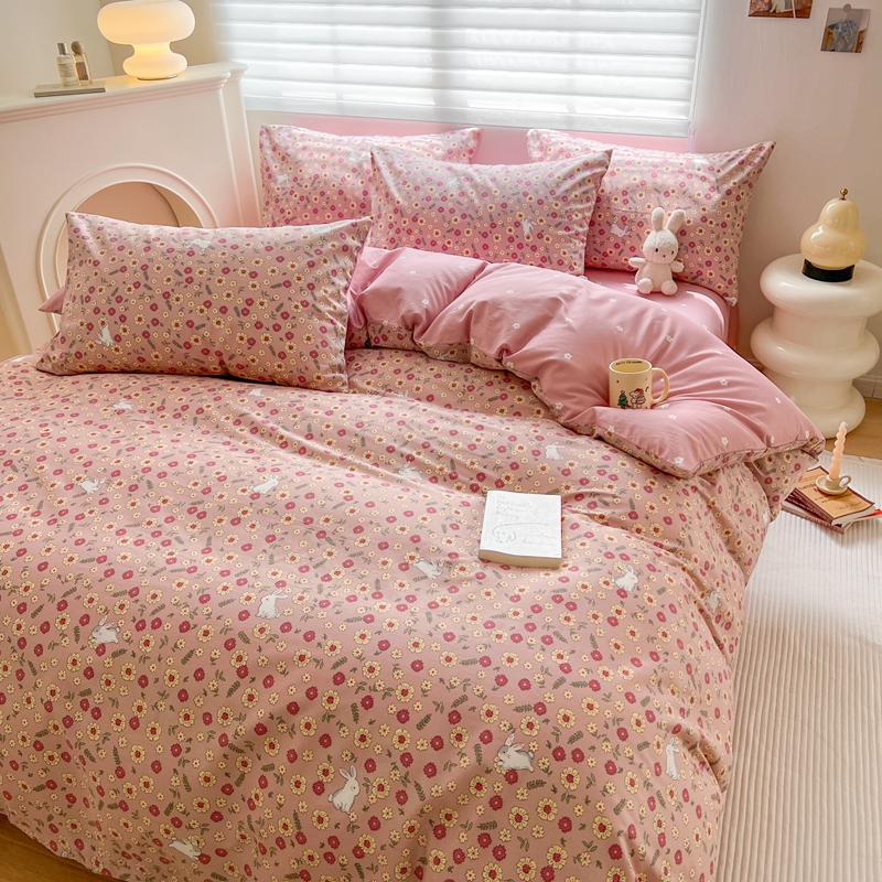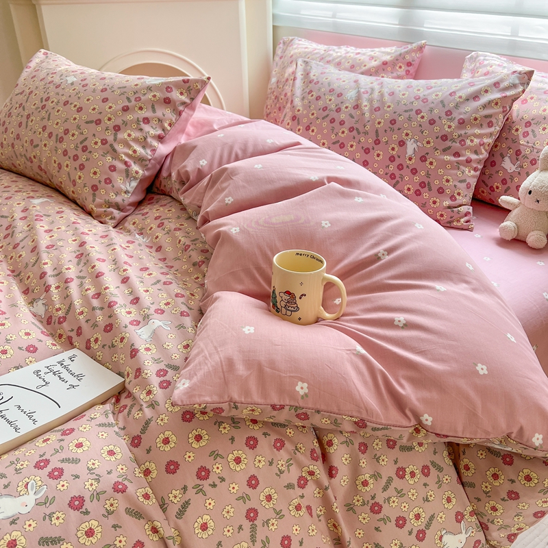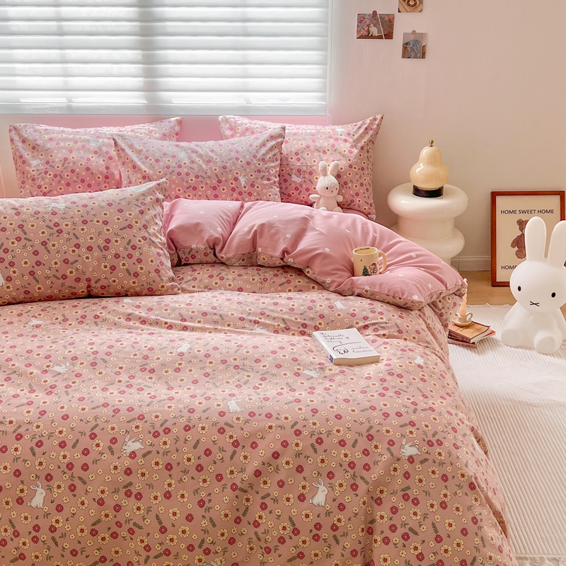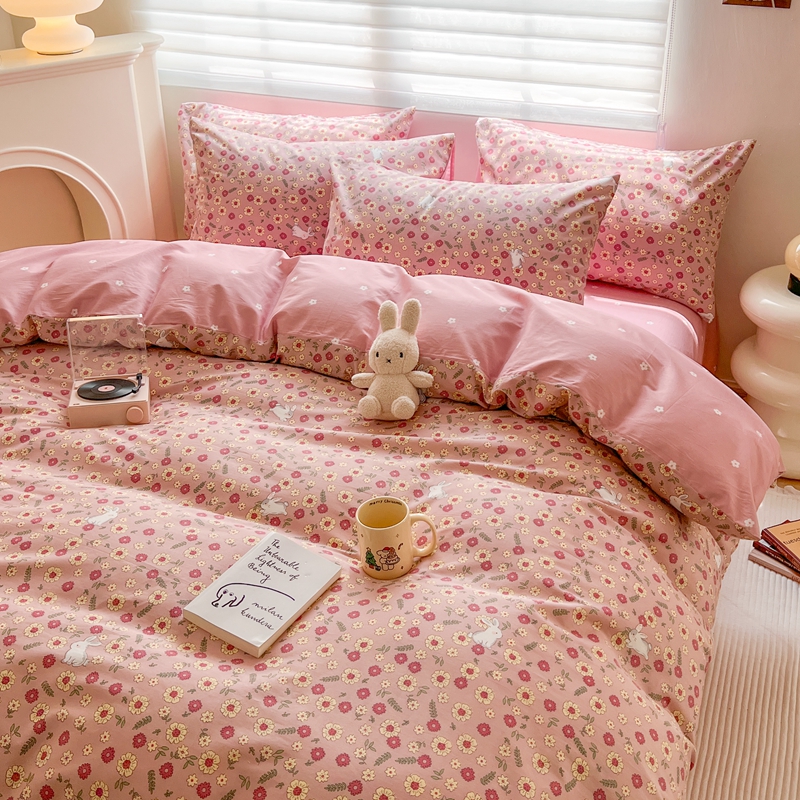 顾里 2023韩系氛围全棉四件套 花丛奶兔
