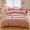 (总)顾里家纺 2025新款甜风毛球羊羔拼接牛奶绒蝴蝶结花猫系列四件套,花猫粉,花猫黄,花猫蓝,花猫紫
