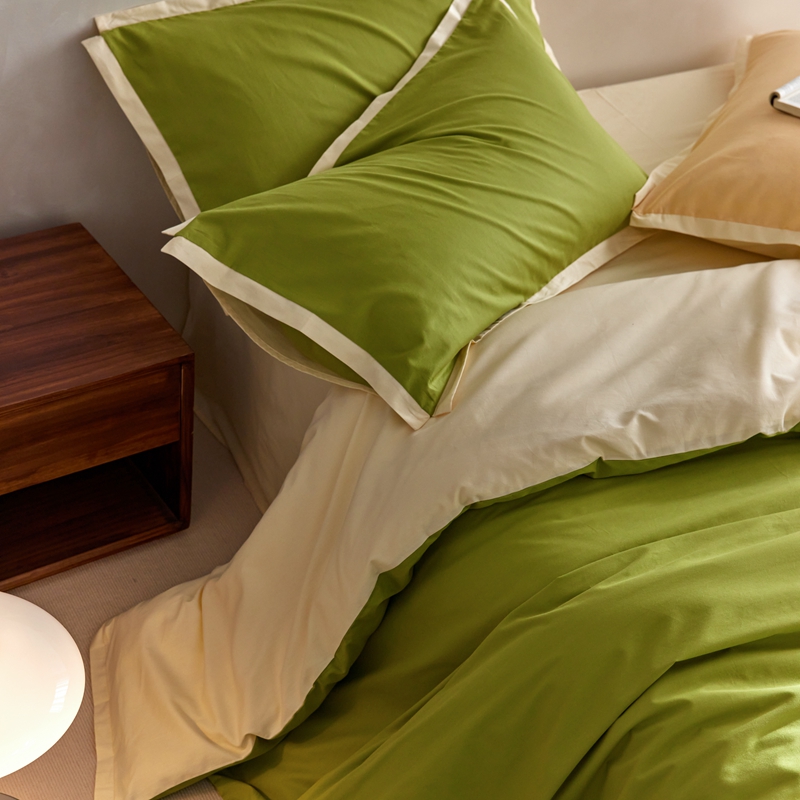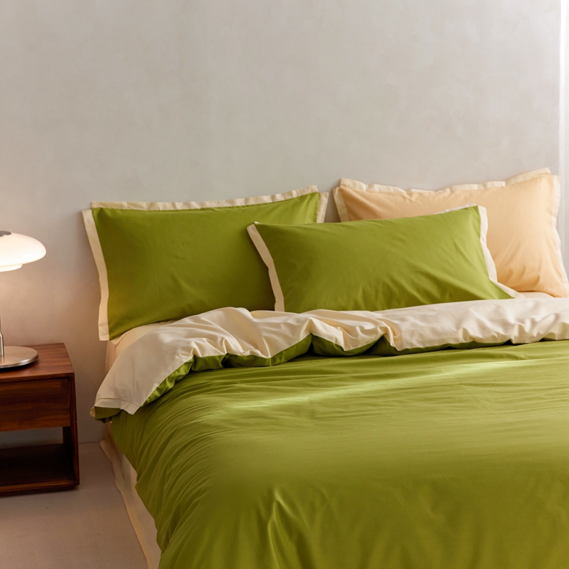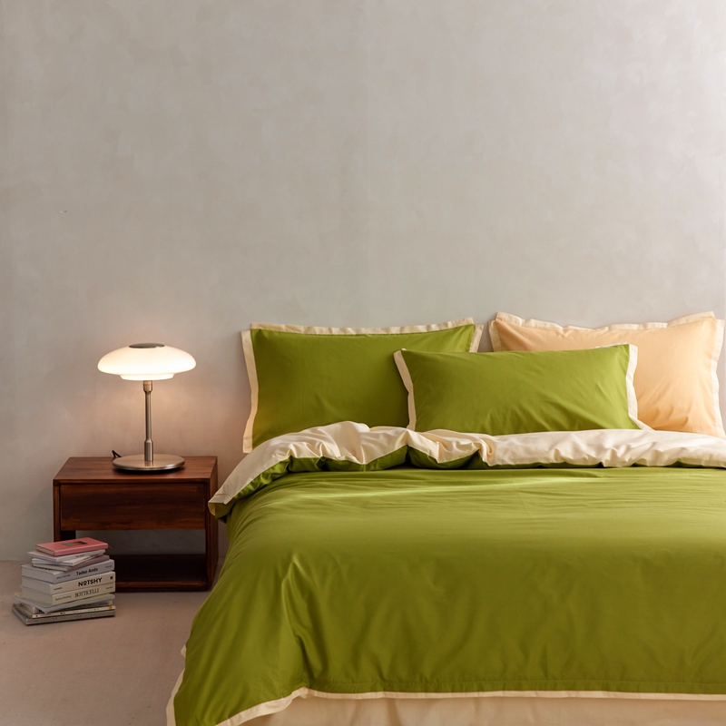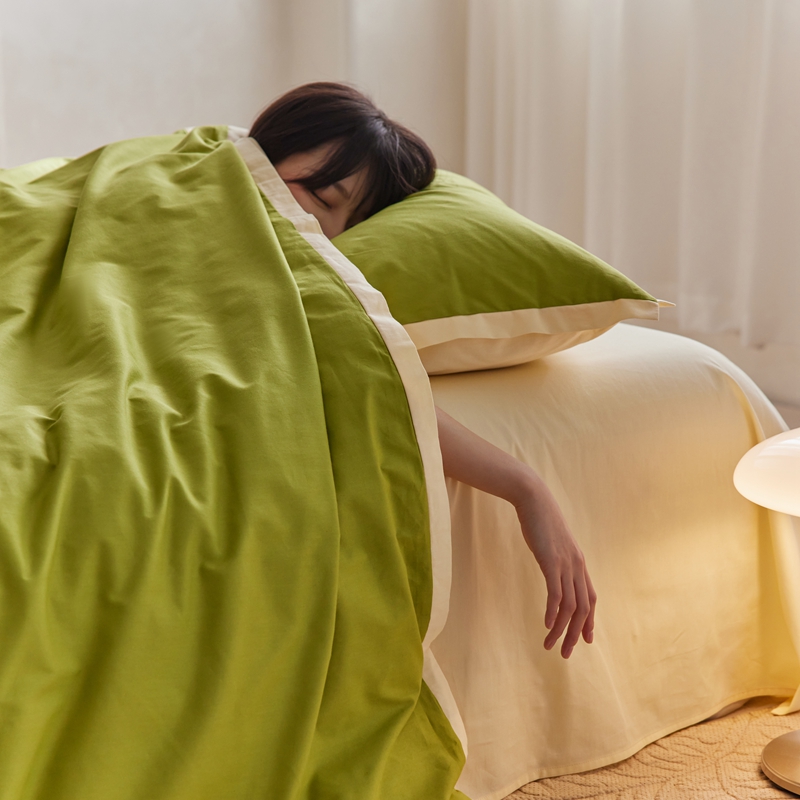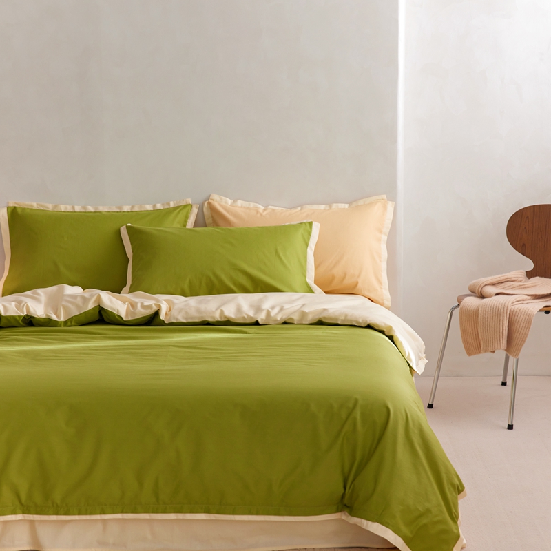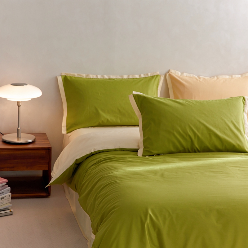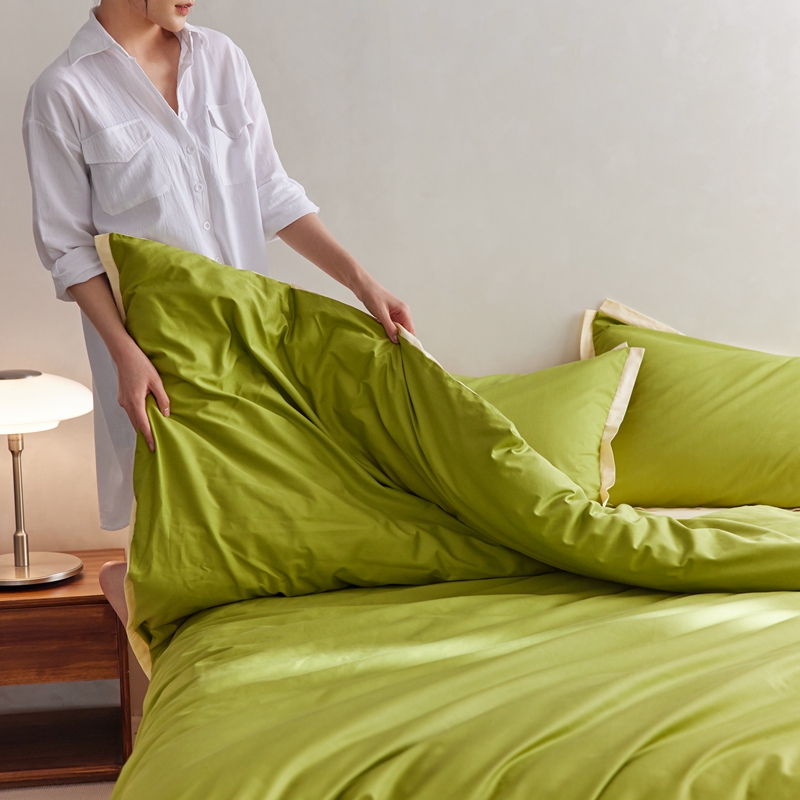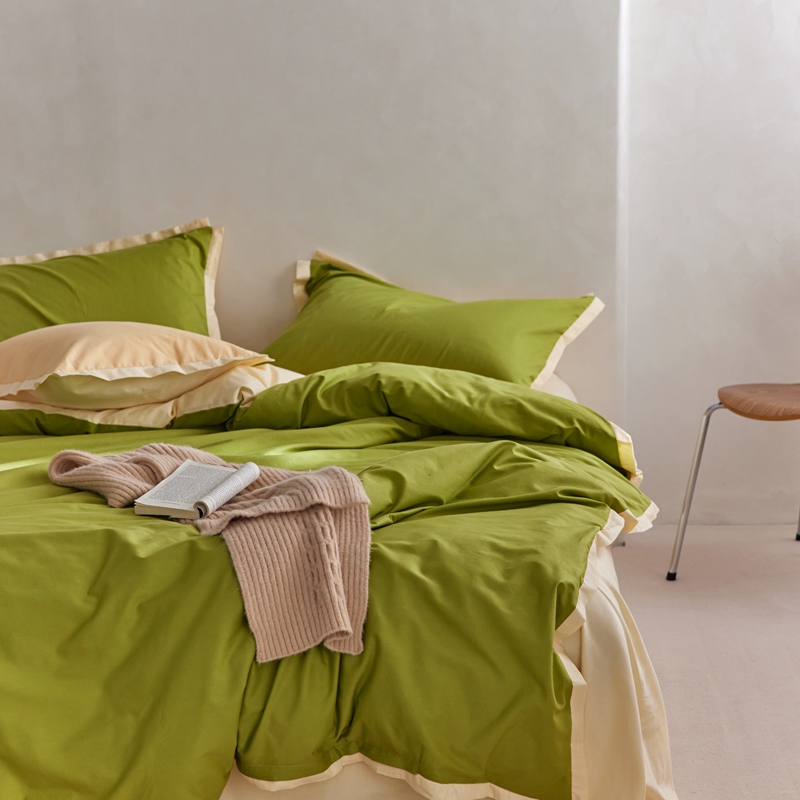 当前位置: 91家纺网 > 商品网购 > 床品套件 > 四件套 > 全棉普通四件套 > 安莱生活 2023新款60贡缎双拼小宽边四件套 果绿双拼奶黄