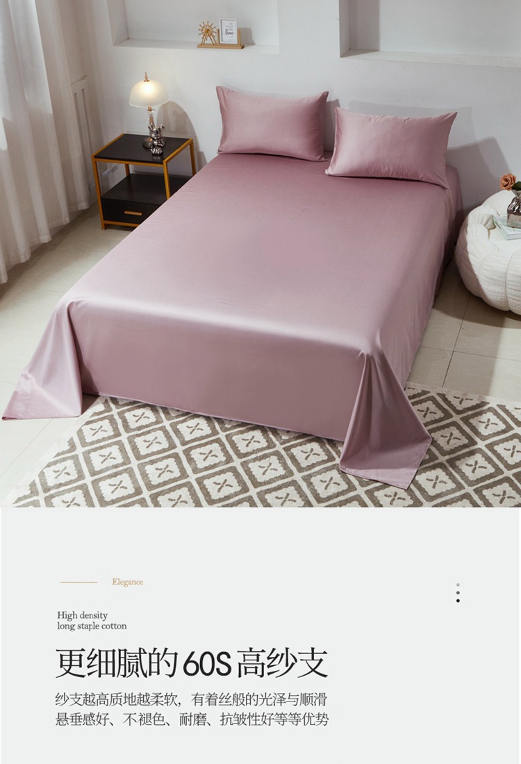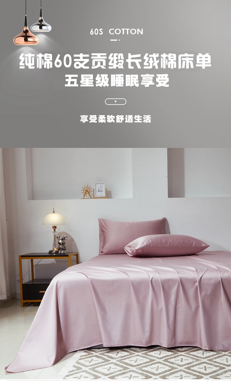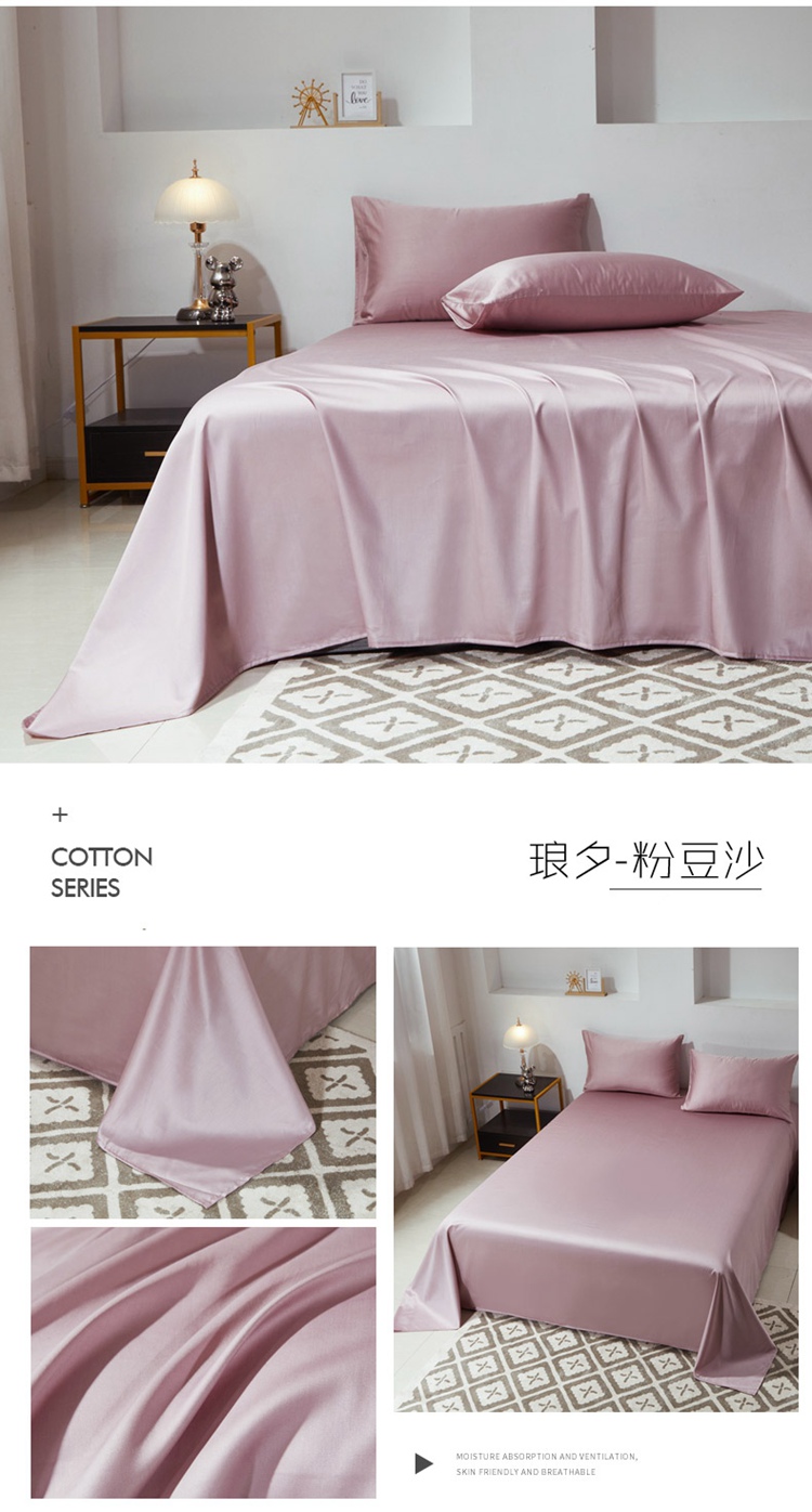 商品名称:晶缦 2023新款全棉纯棉60支贡缎长绒棉纯色多规格单品床单 琅夕-粉豆沙