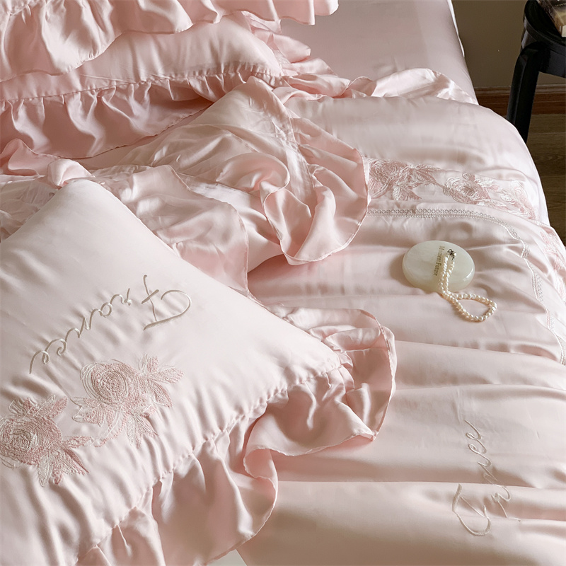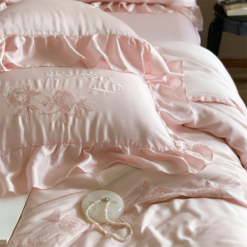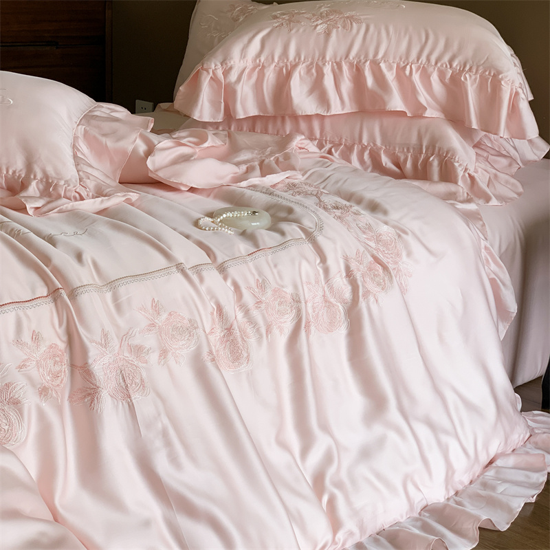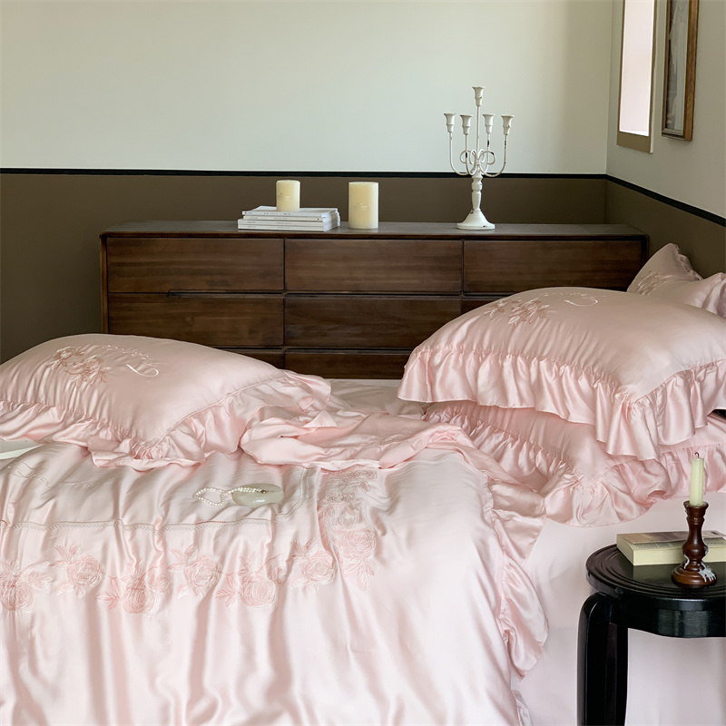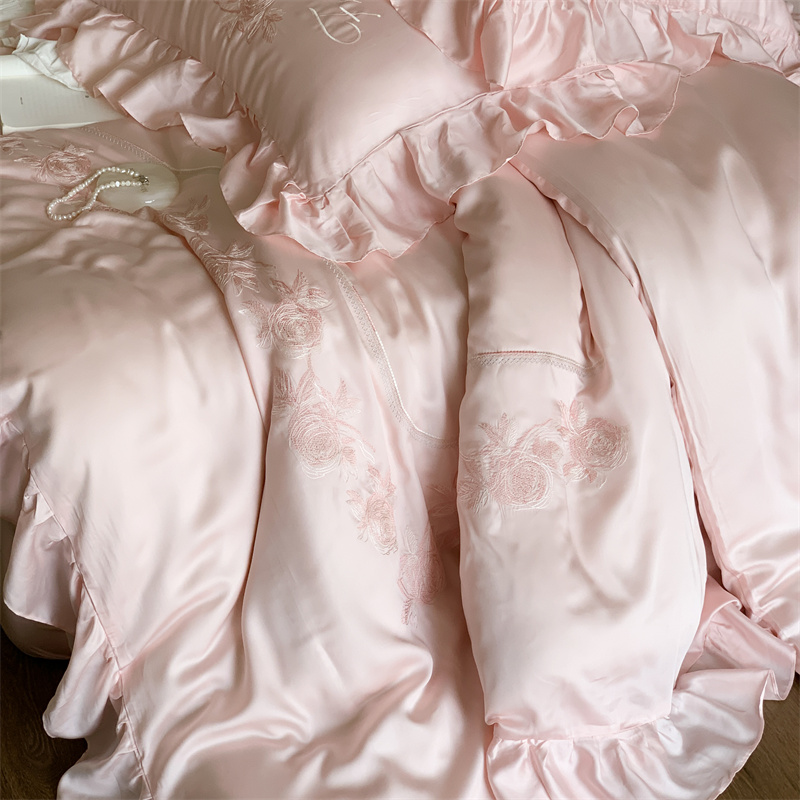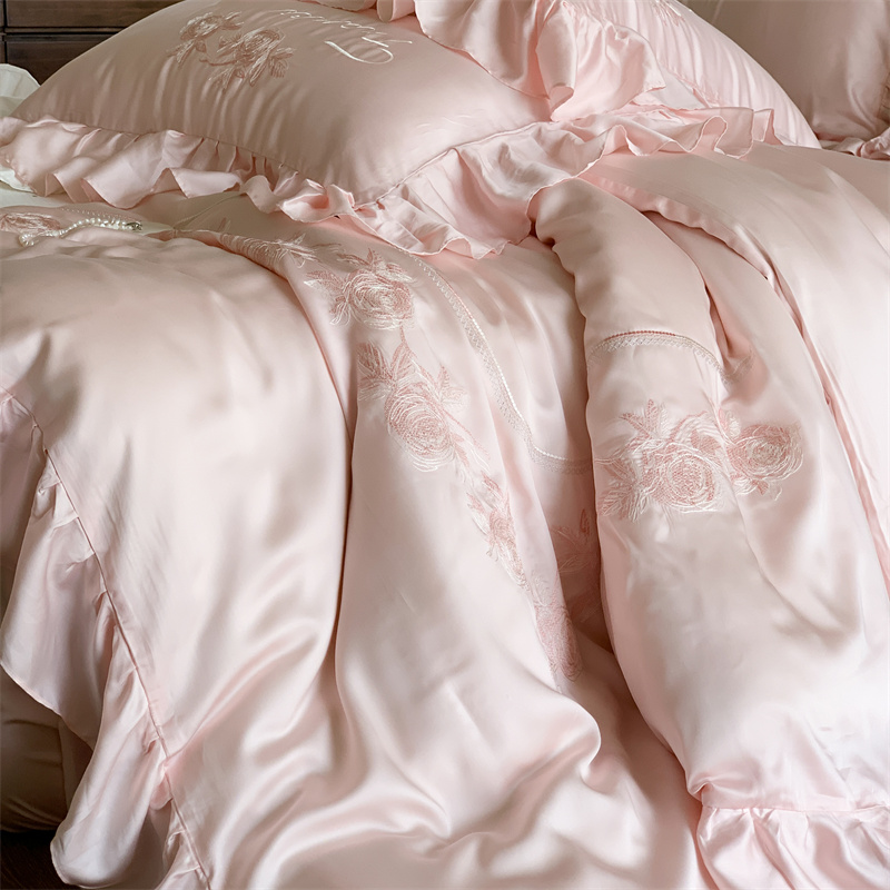 若未 2023新款法式兰精天丝法式绣花四件套 芙洛娜-粉