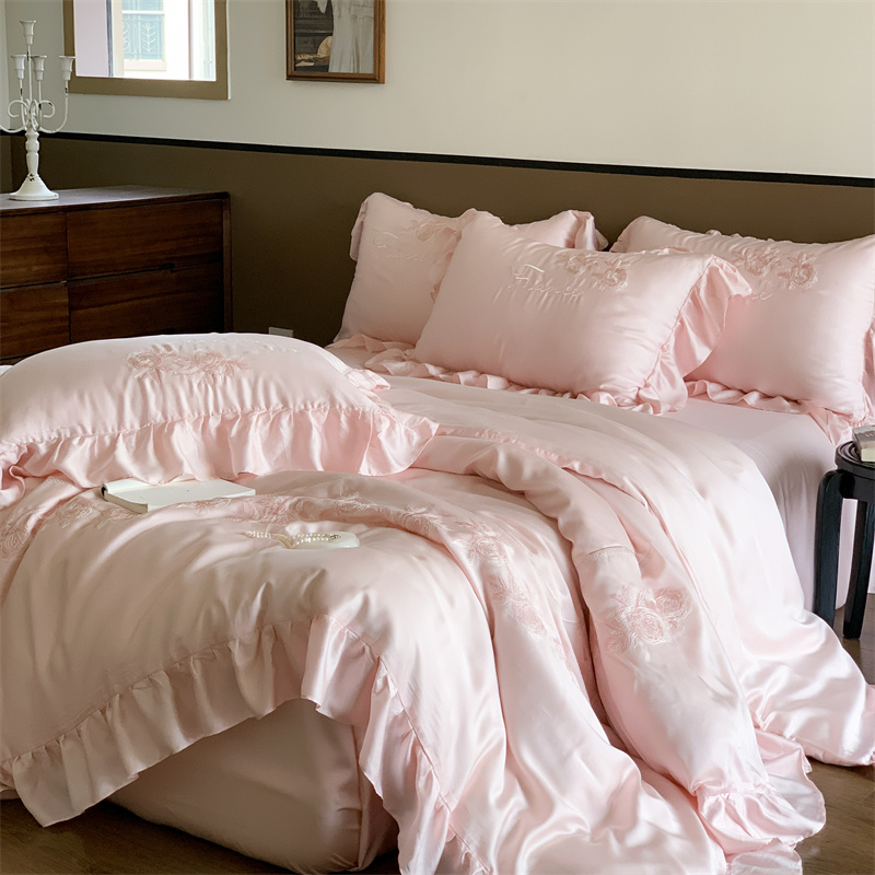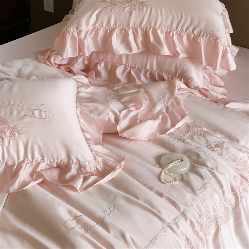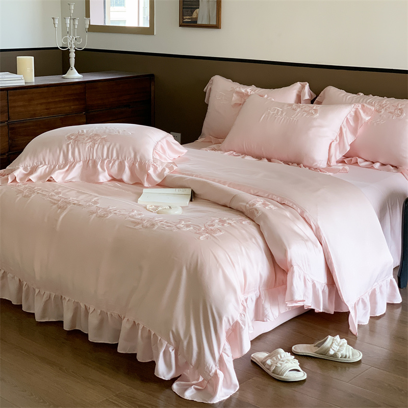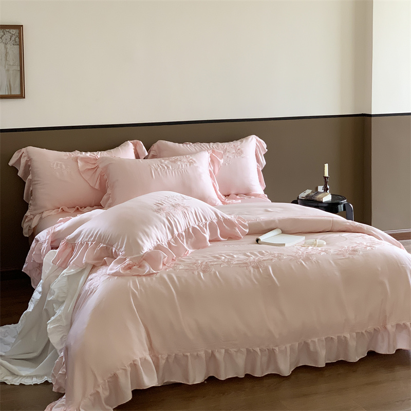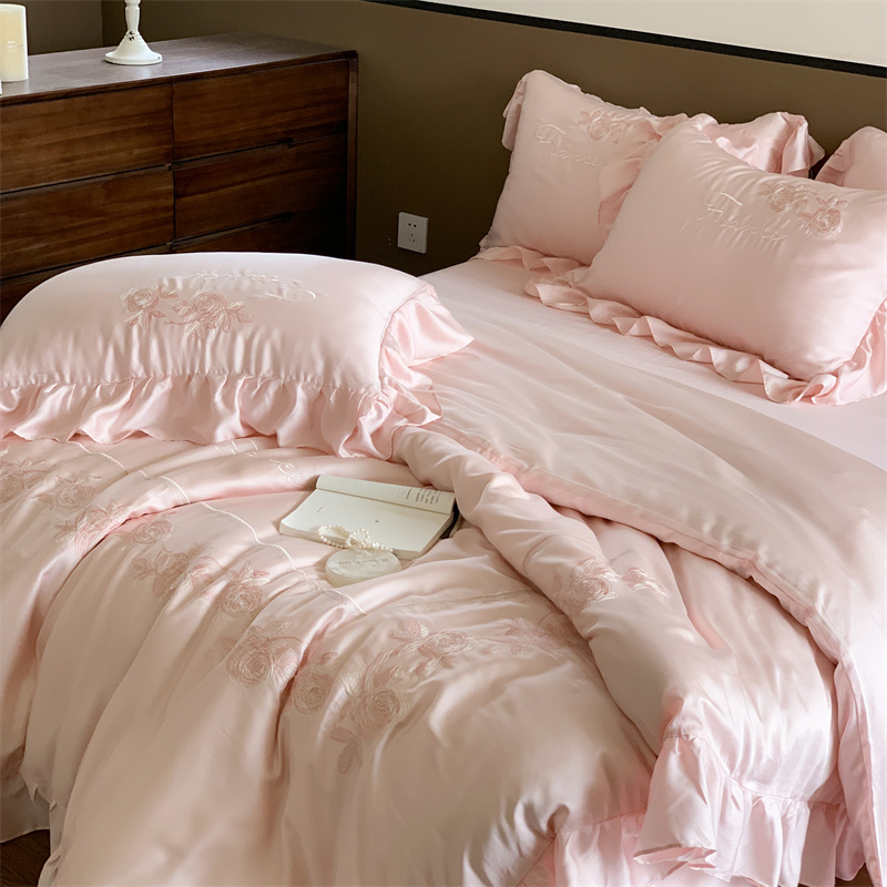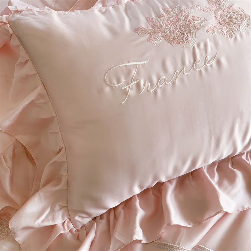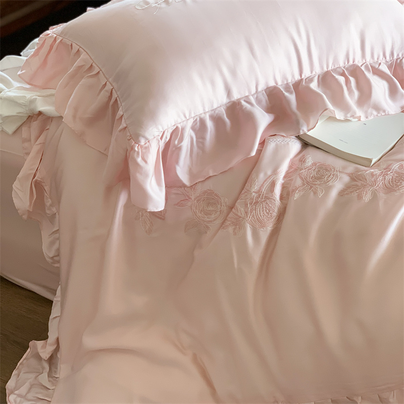 若未 2023新款法式兰精天丝法式绣花四件套 芙洛娜-粉