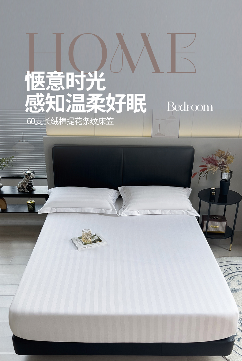 商品名称:品乐 2023新款 60支长绒棉提花条纹单床笠 条纹白色