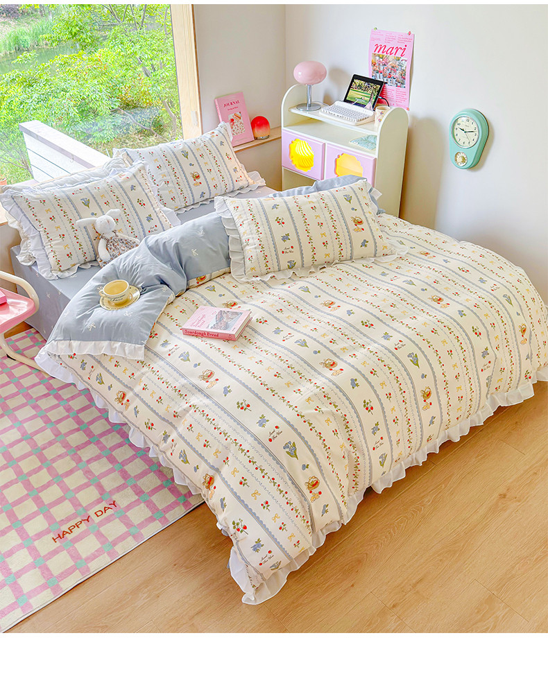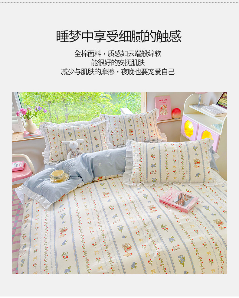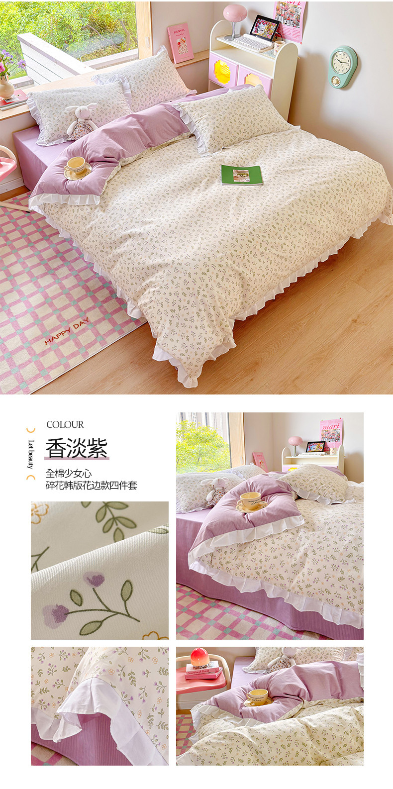 (总)桃子 2023新款仙气奶油碎花少女心韩版花边纯棉四件套