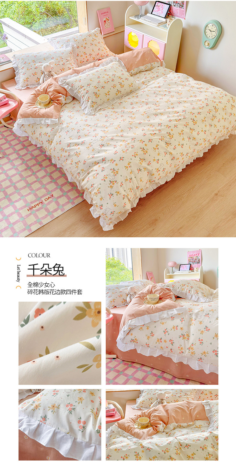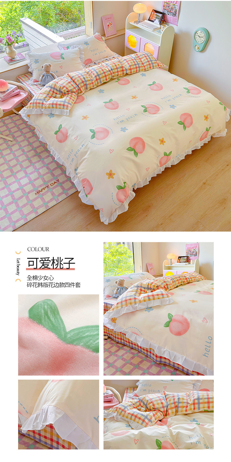 商品名称:(总)桃子 2023新款仙气奶油碎花少女心韩版花边纯棉四件套