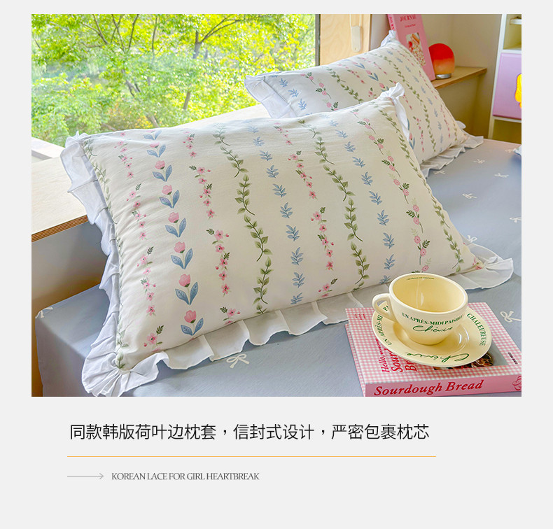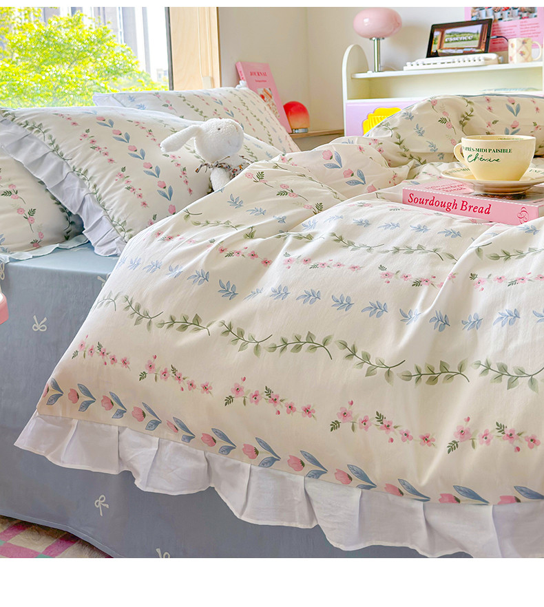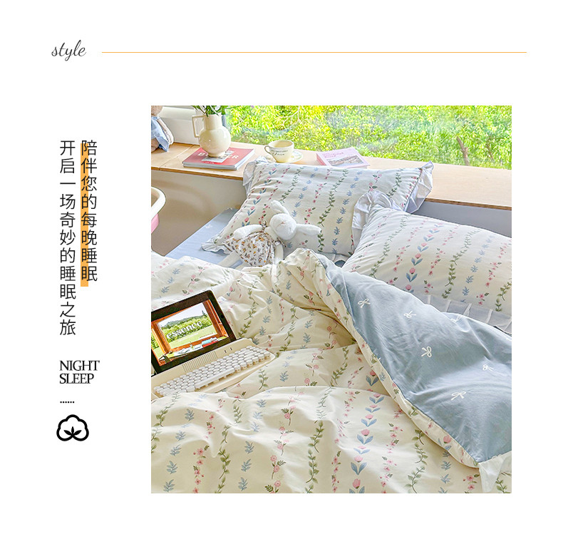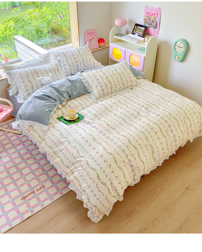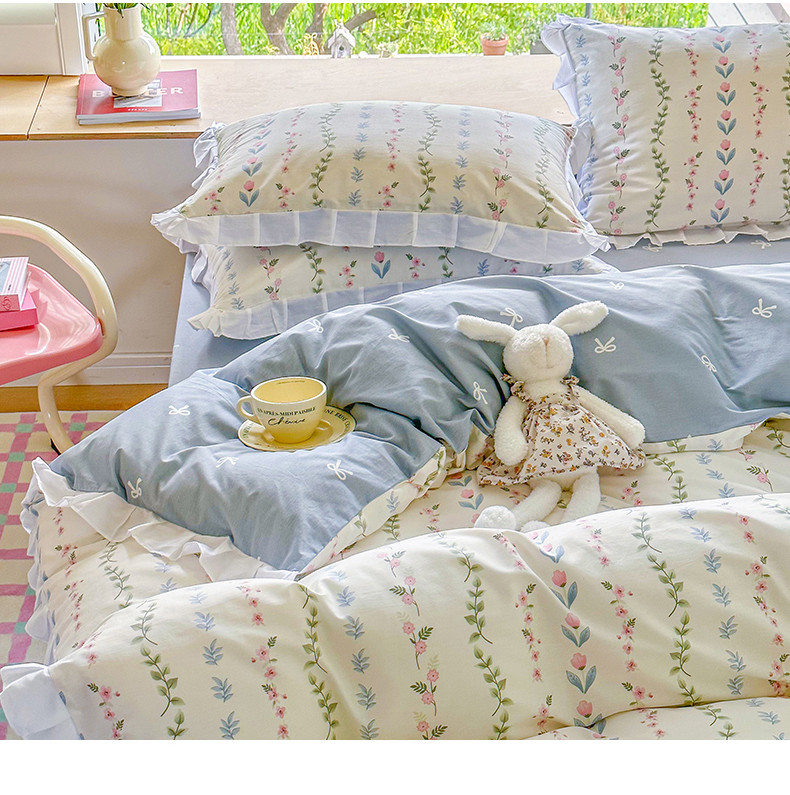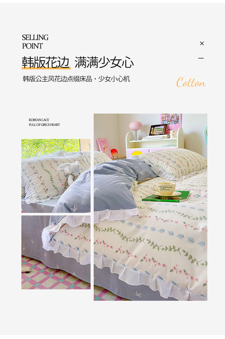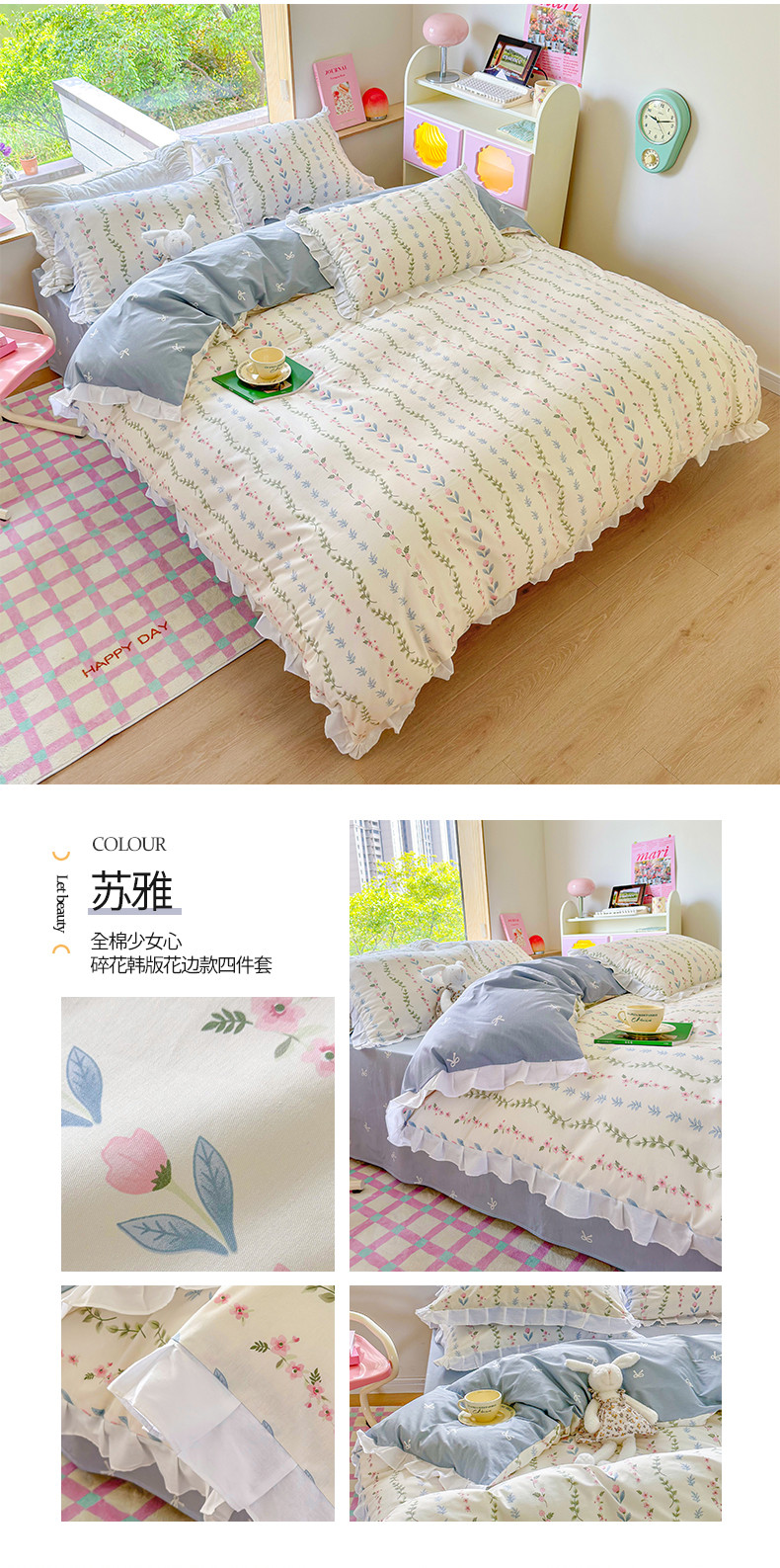 桃子 2023新款仙气奶油碎花少女心韩版花边纯棉四件套 花边-苏雅