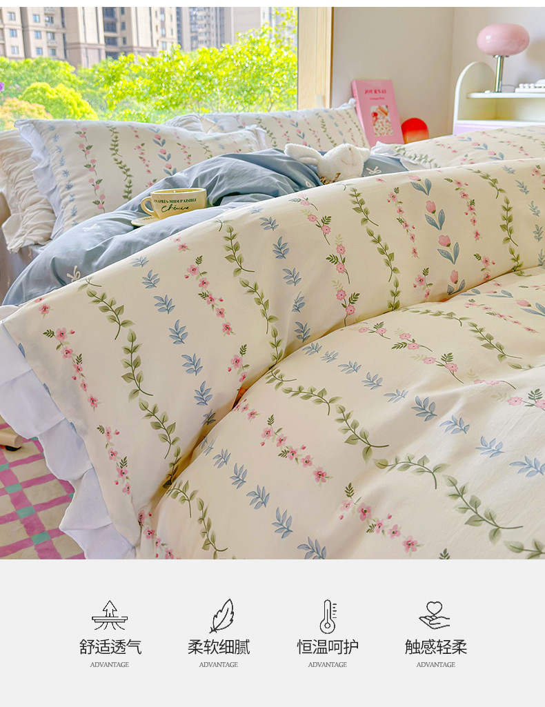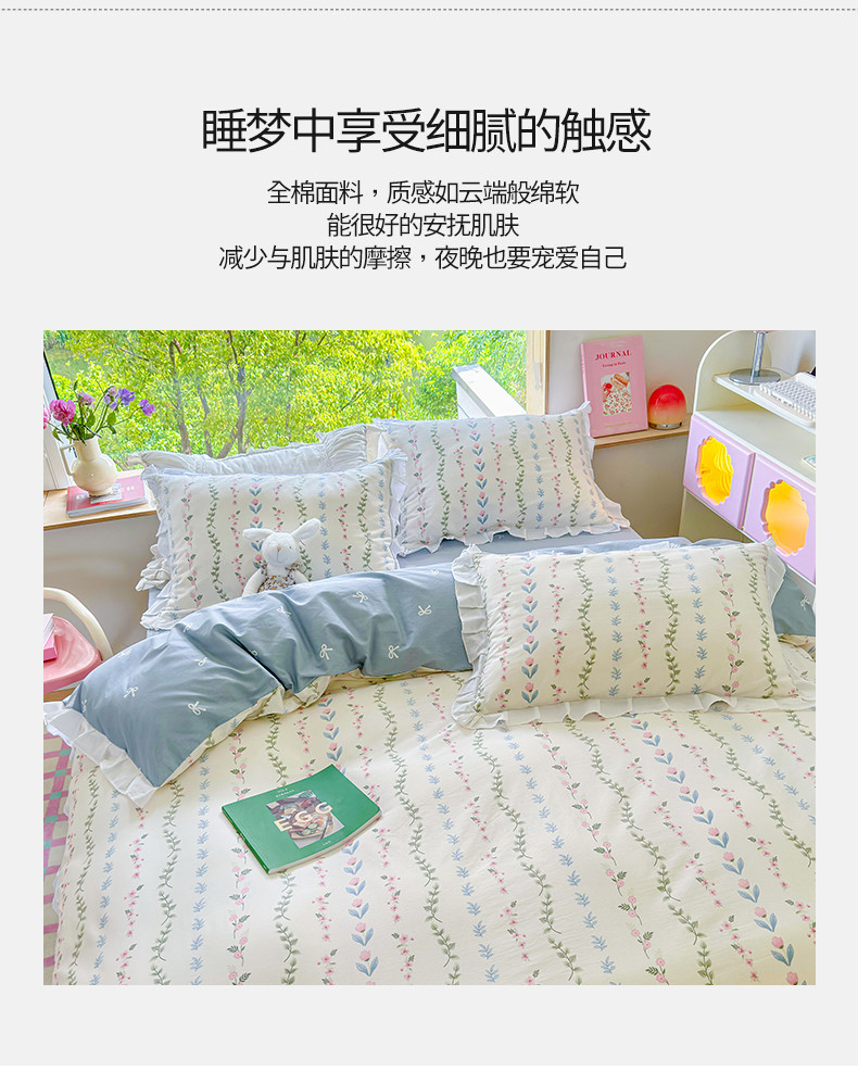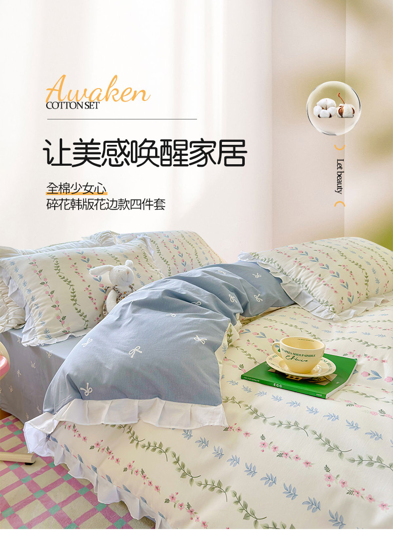 商品名称:桃子 2023新款仙气奶油碎花少女心韩版花边纯棉四件套 花边-苏雅