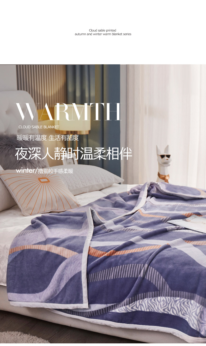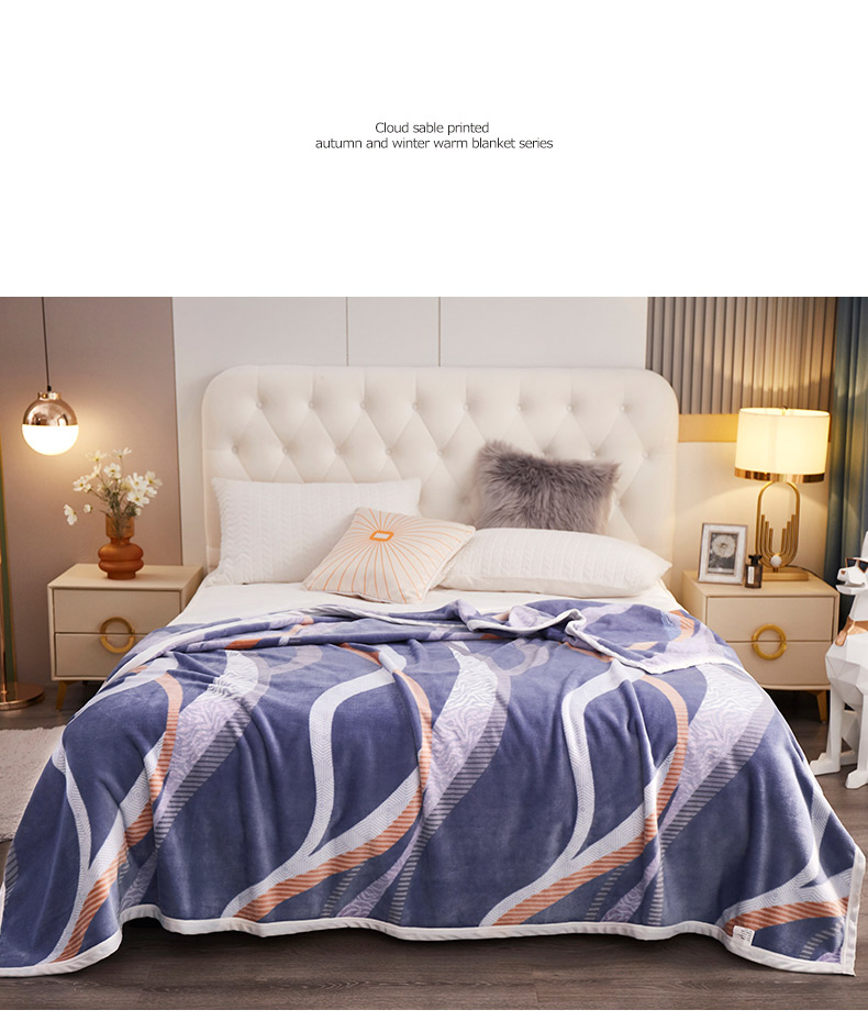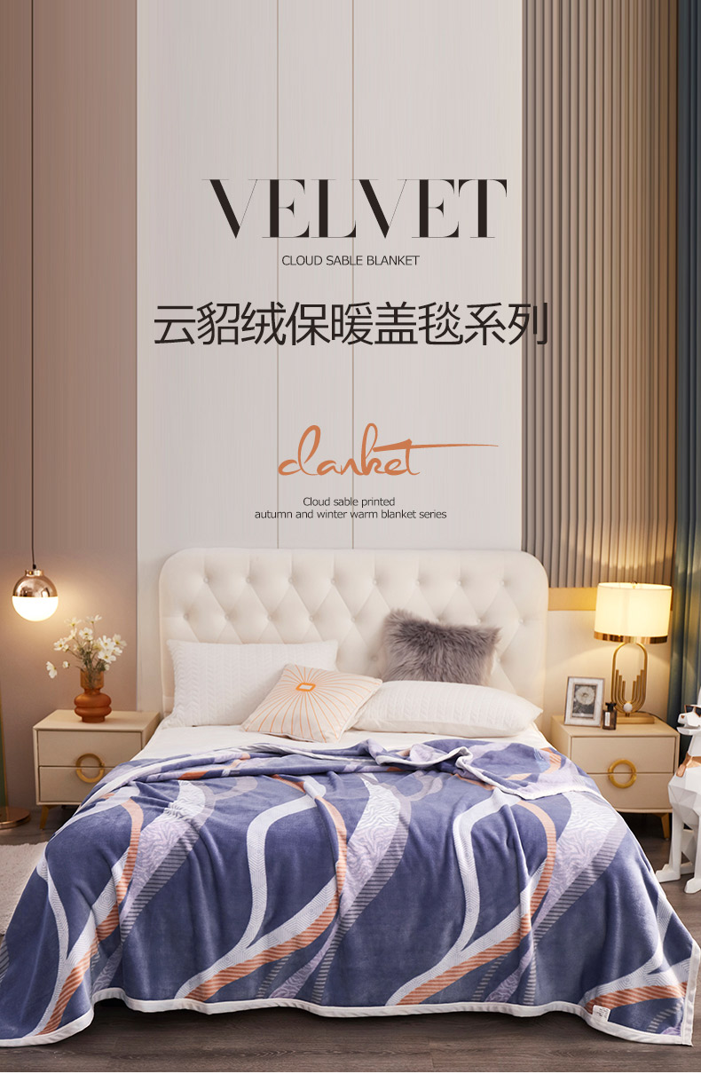 肖恩毯业 2025新款印花云貂绒毛毯沙发盖毯午睡毯子 纽约蓝