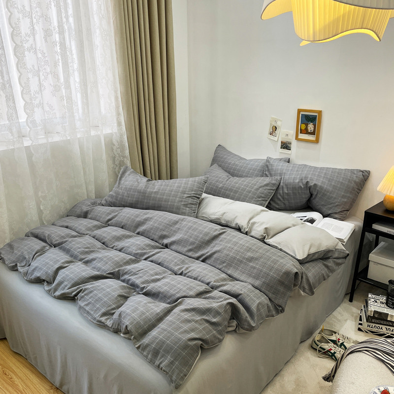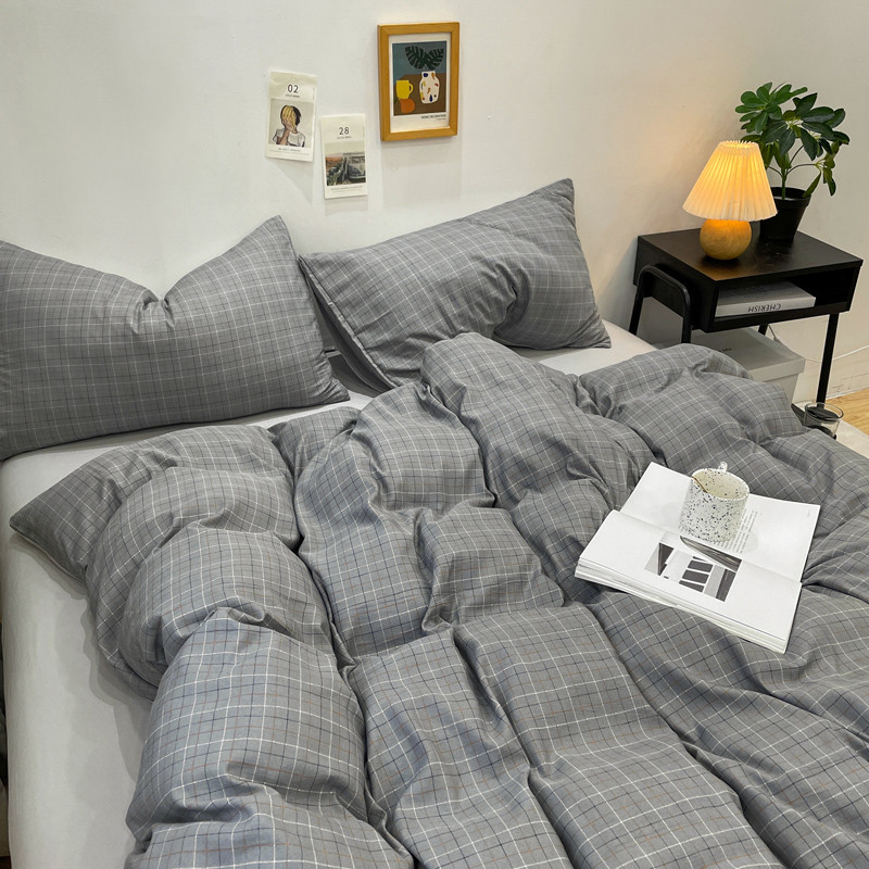 当前位置: 91家纺网 > 商品网购 > 床品套件 > 四件套 > 水洗真丝四件套 > 宏源 2023新款日系简约风格子水洗冰丝双层纱四件套 格里灰