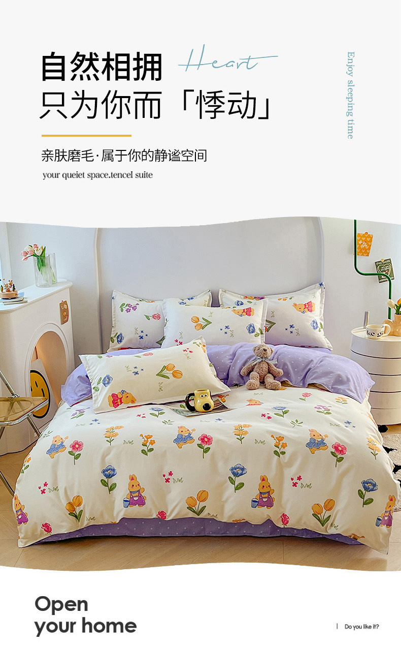 商品名称:世爵家纺 2023新款亲肤印花磨毛四件套 彼得兔