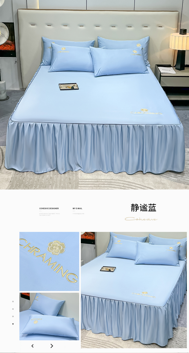 (总)笠裙家纺 2024新款A类原棉夹大豆棉加厚刺绣四叶草款系列床裙,四叶草-宝蓝,四叶草-淡粉,四叶草-豆沙,四叶草-高级灰,四叶草-米白,四叶草-浅灰,四叶草-浅紫,四叶草-天蓝