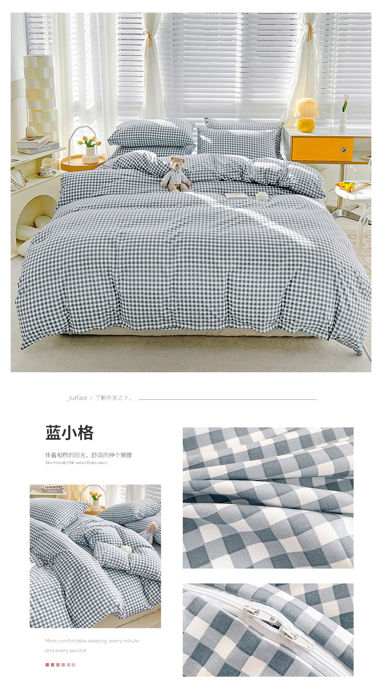 当前位置: 91家纺网 > 商品网购 > 床品套件 > 四件套 > 全棉普通四件套 > 邵依 2025新款格子纯色素色双拼水洗棉非全棉纯棉四件套 蓝小格