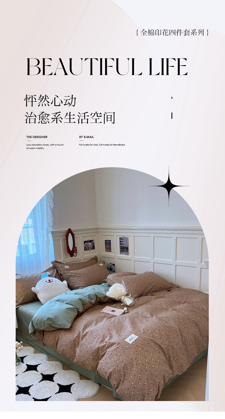 米粒家纺 2023新款全棉印花四件套系列 香露-棕