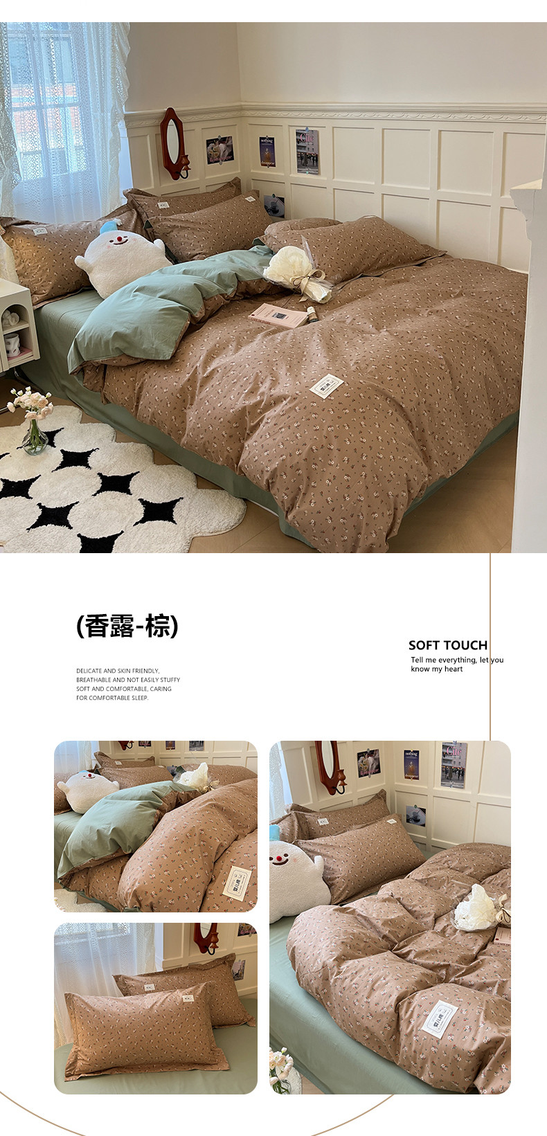 商品名称:米粒家纺 2023新款全棉印花四件套系列 香露-棕