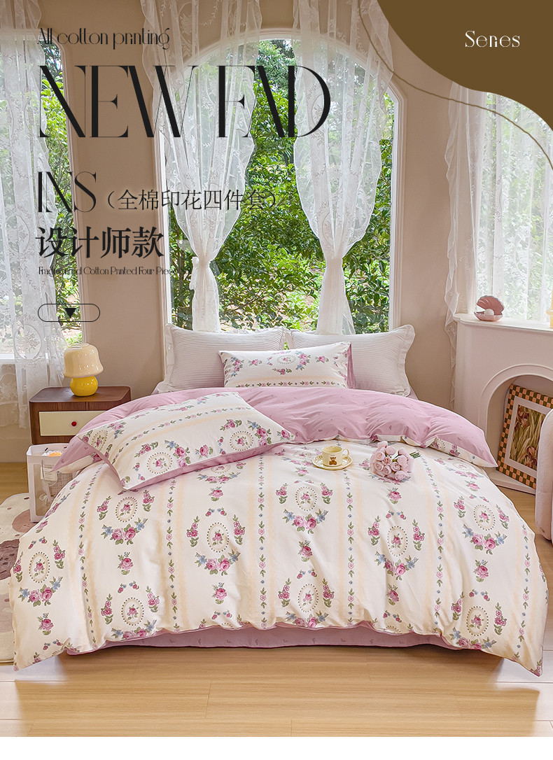 当前位置: 91家纺网 > 商品网购 > 床品套件 > 四件套 > 全棉普通四件套 > 珺柔家纺 2023新款13372全棉印花四件套 遇见浪漫