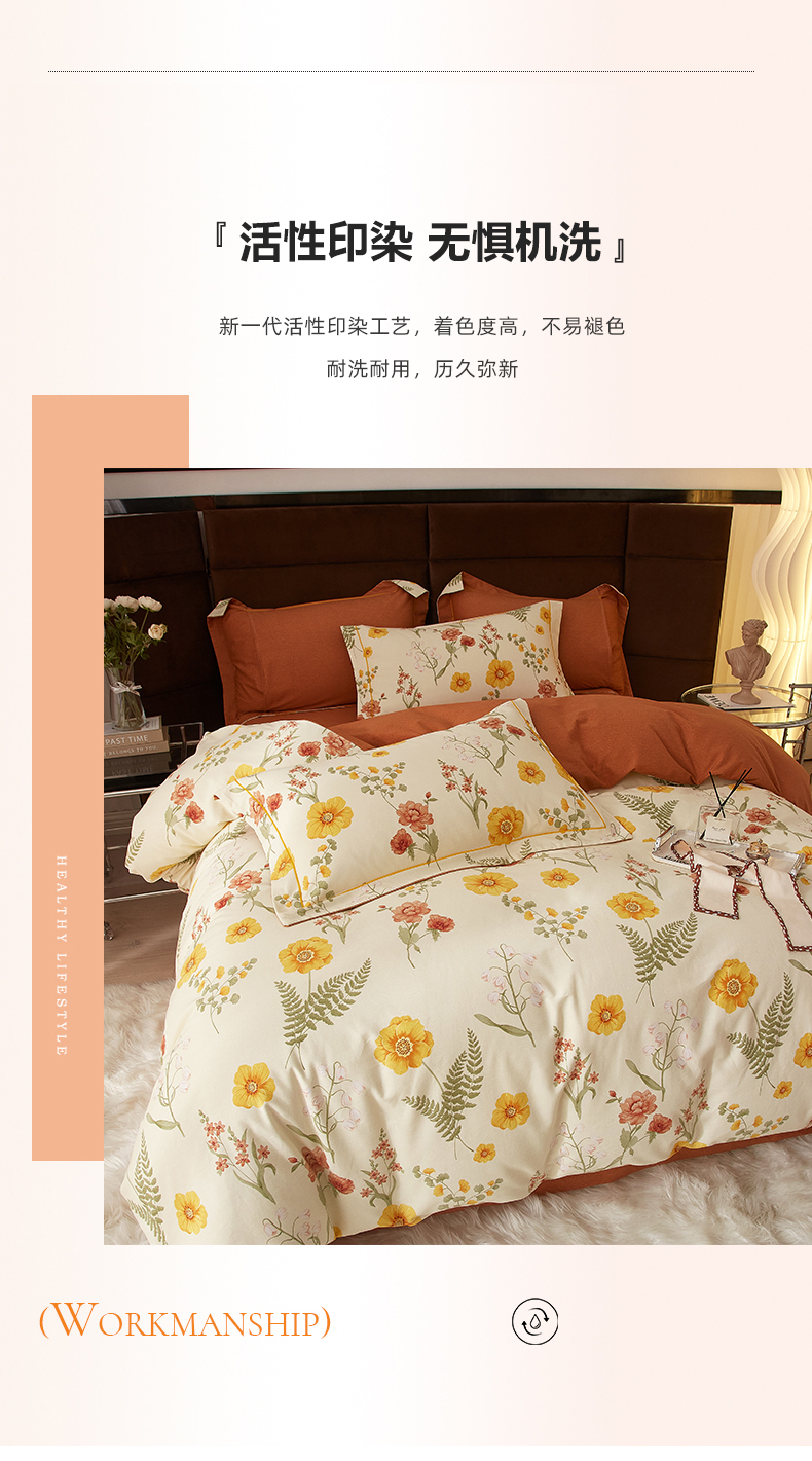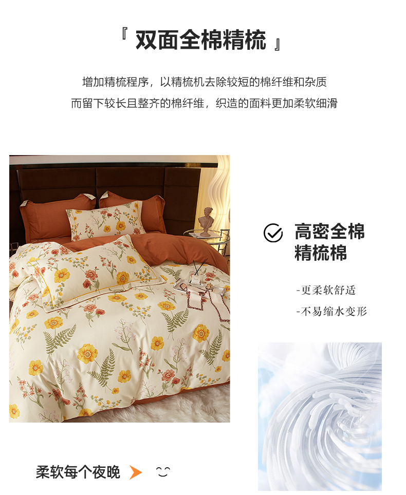 启航家居 2025直播热款全棉精梳磨毛印花四件套-小资格调系列 沐光美人