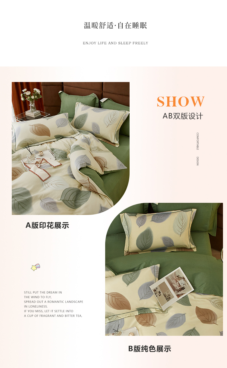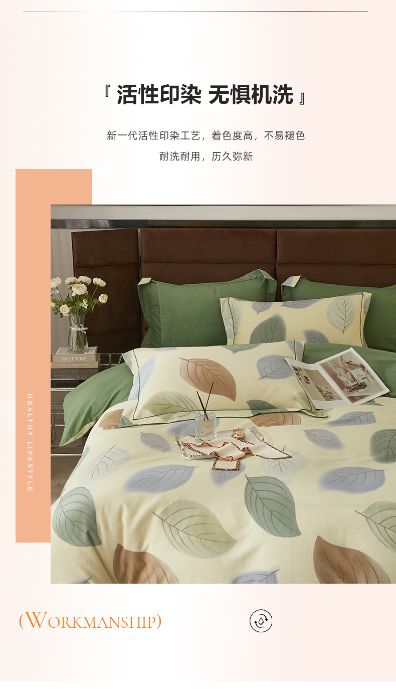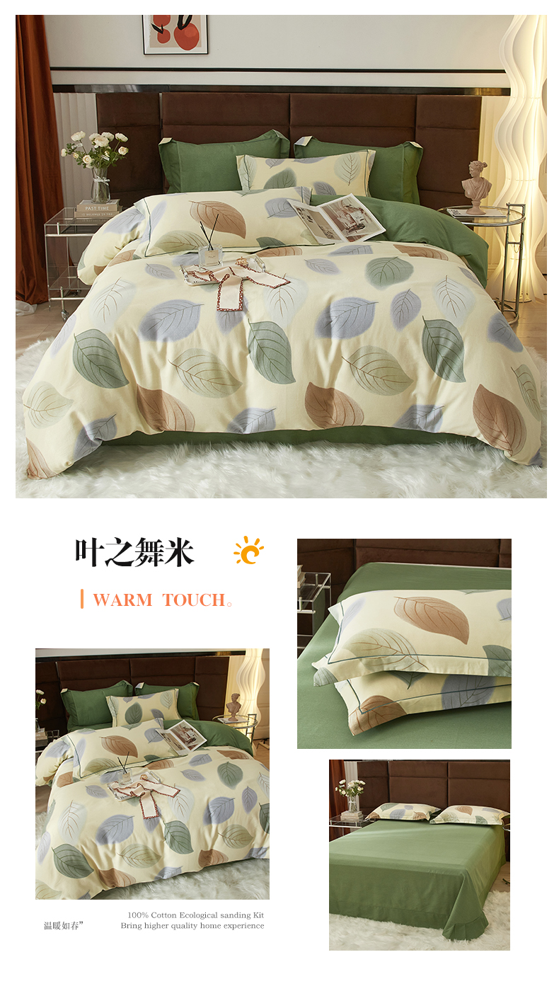 启航家居 2025直播热款全棉精梳磨毛印花四件套-小资格调系列 叶之舞米