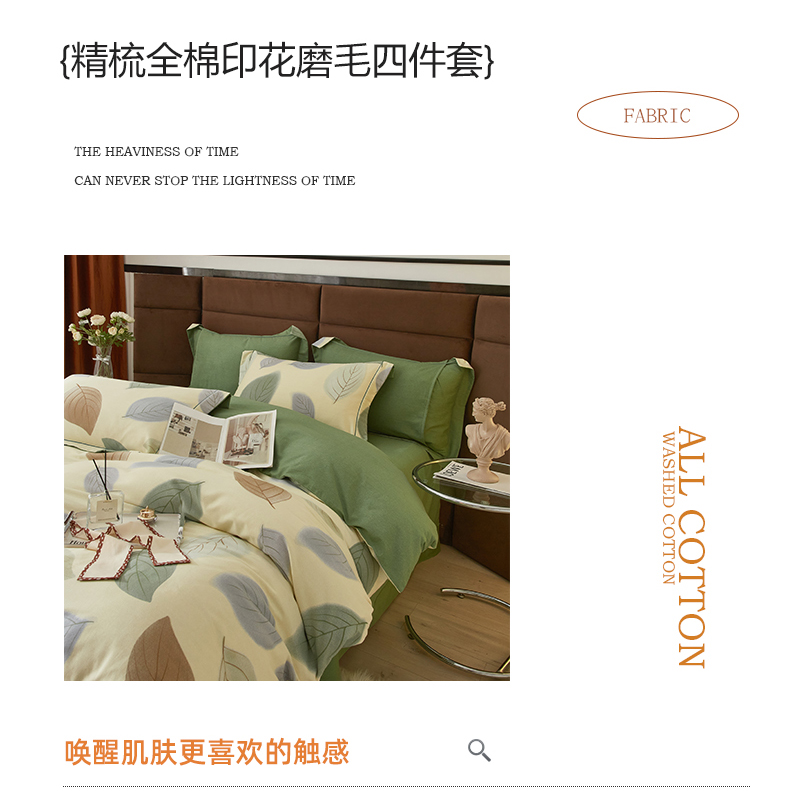 商品名称:启航家居 2025直播热款全棉精梳磨毛印花四件套-小资格调系列 叶之舞米