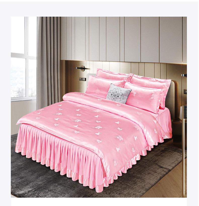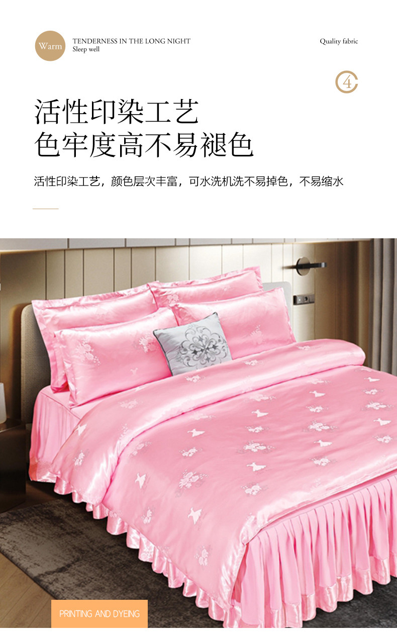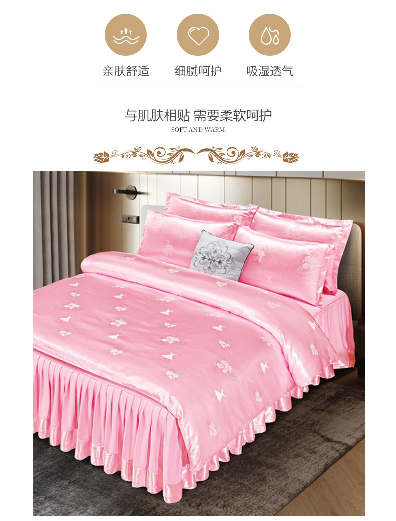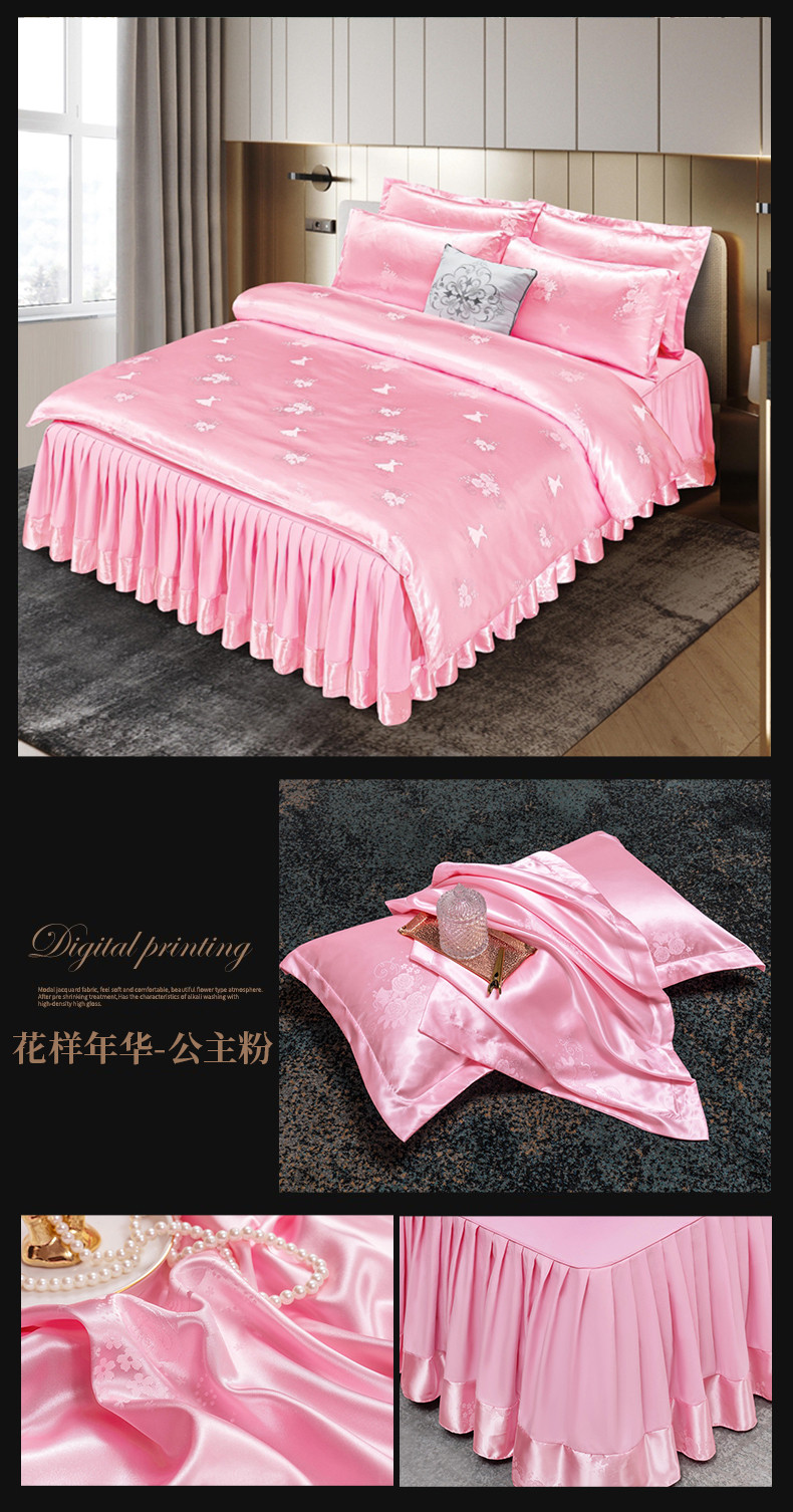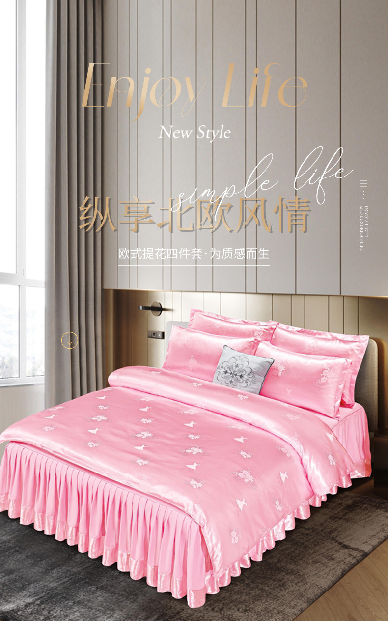 商品名称:莱欧纳 2025新款欧式提花床裙四件套 花样年华-公主粉