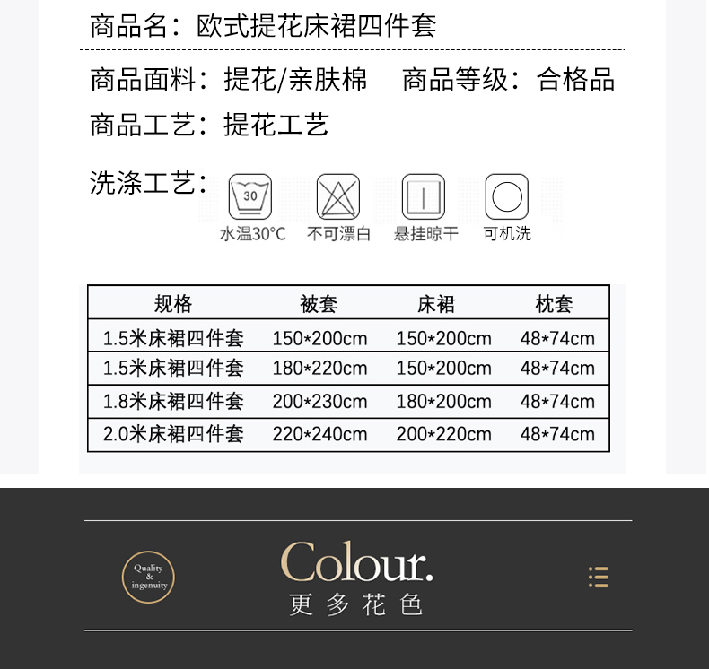 (总)莱欧纳 2025新款欧式提花床裙四件套,安吉丽娜-冰兰,波斯年华-豆沙,花香娇媚-粉金,花香柔情-水绿,花样年华-公主粉,皇家风范-兰金,皇家风范-紫金,卡萨金爵-浅湖泊,曼珠沙华-湖兰,苏菲花园-大红,苏菲花园-粉色,苏菲花园-雪青,苏菲花园-玉色,唯美盛典-白色,唯美盛典-灰色