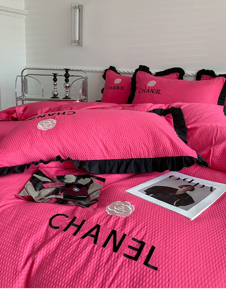 商品名称:吾欢心 2025新款华夫格暖小棉小香风邂逅系列四件套 小香风邂逅玫红