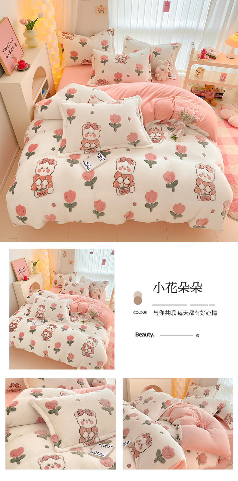 当前位置: 91家纺网 > 商品网购 > 床品套件 > 四件套 > 牛奶绒四件套 > 同田家纺 2024秋冬新品雪花绒牛奶绒印花四件套 小花朵朵