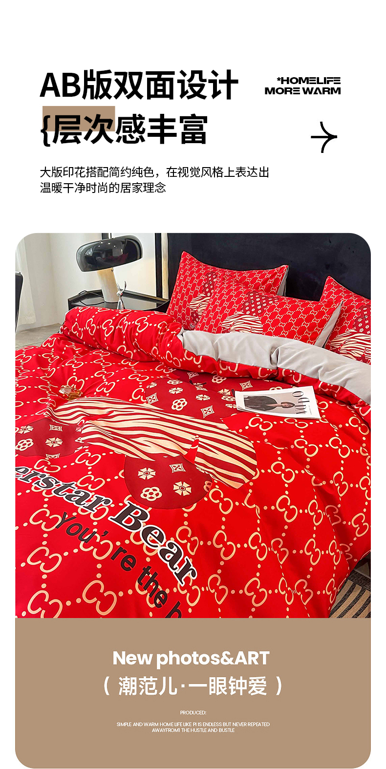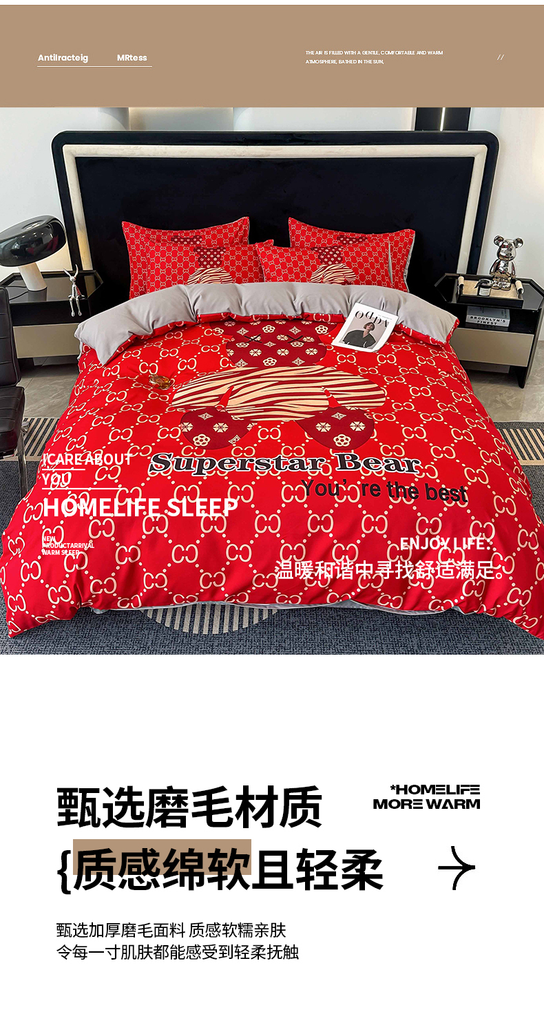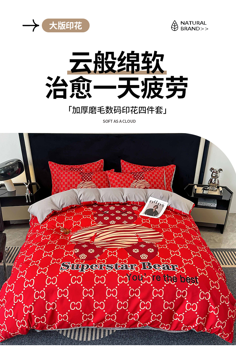 当前位置: 91家纺网 > 商品网购 > 床品套件 > 四件套 > 普通磨毛四件套 > 色鬼布艺 2023新款加厚双面磨毛数码大版印花四件套 潮酷熊