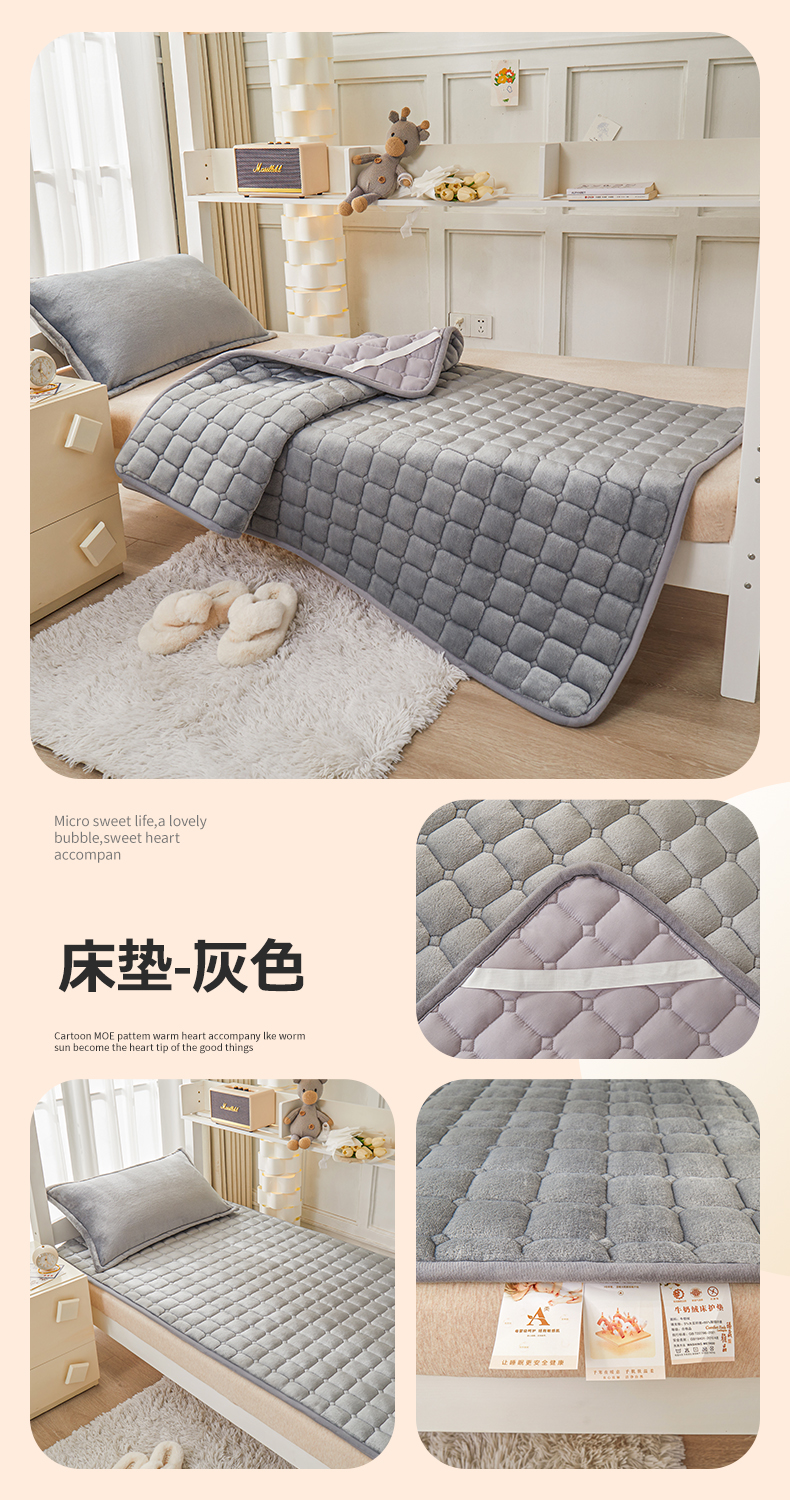 当前位置: 91家纺网 > 商品网购 > 床垫/床褥 > 普通床垫 > 雅萱 2023新款大豆牛奶绒学生床护垫 床垫-灰色