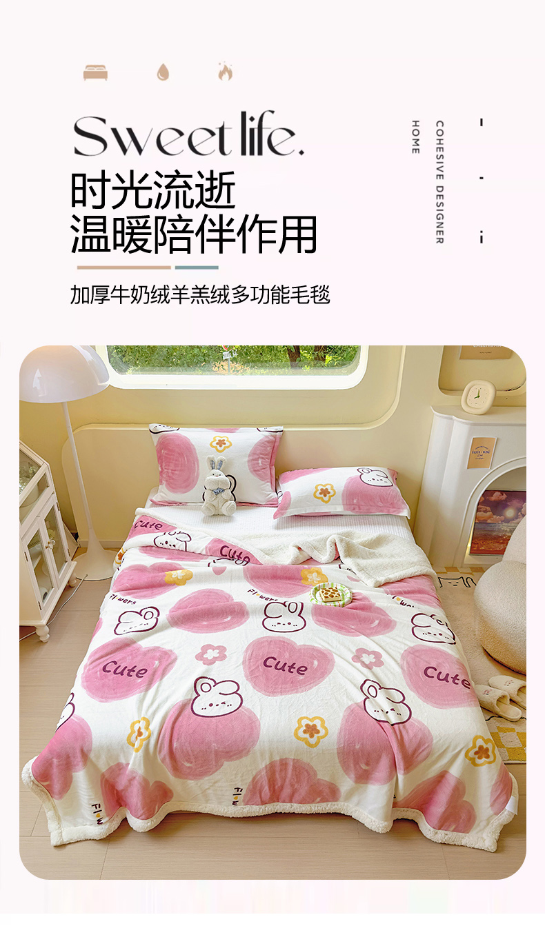 商品名称:沐慕 2023新款毛毯 爱心粉兔