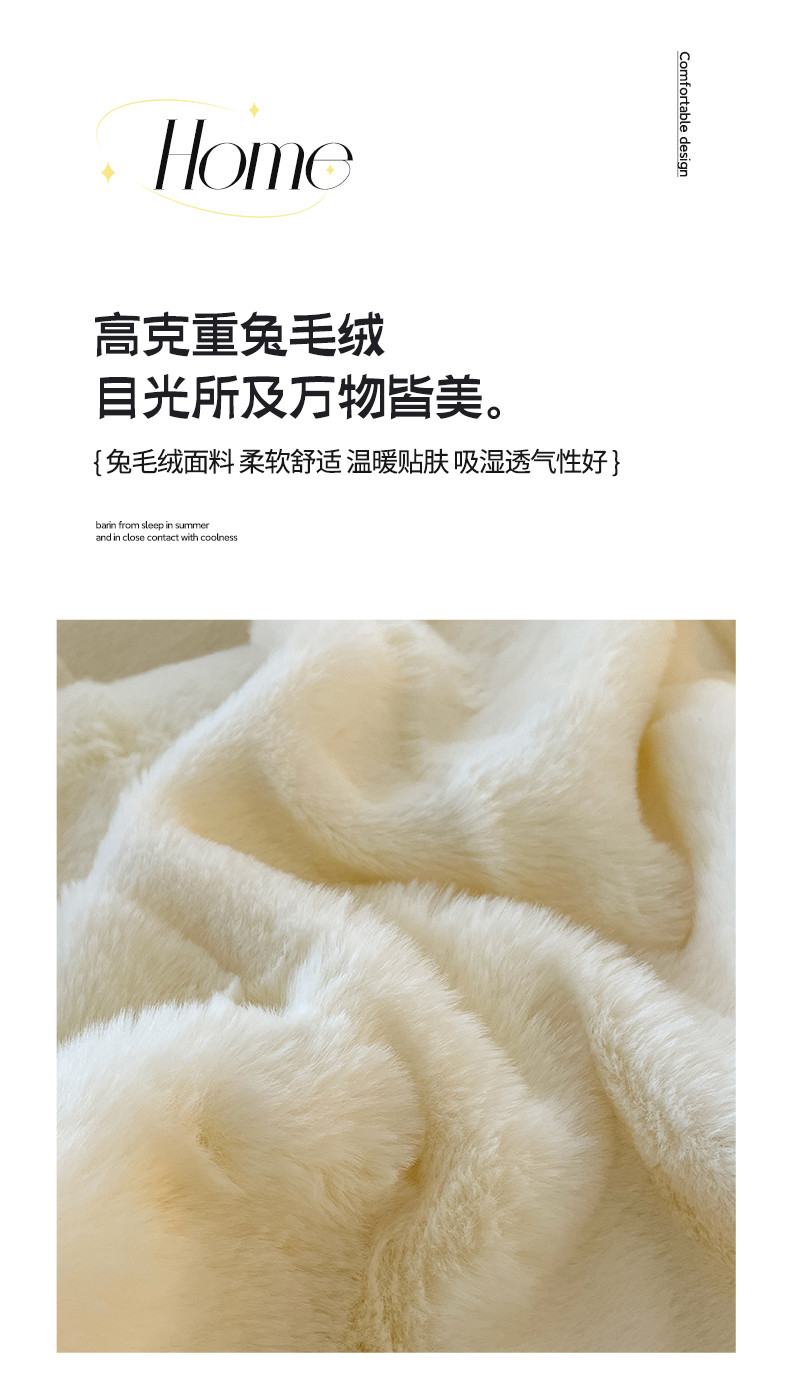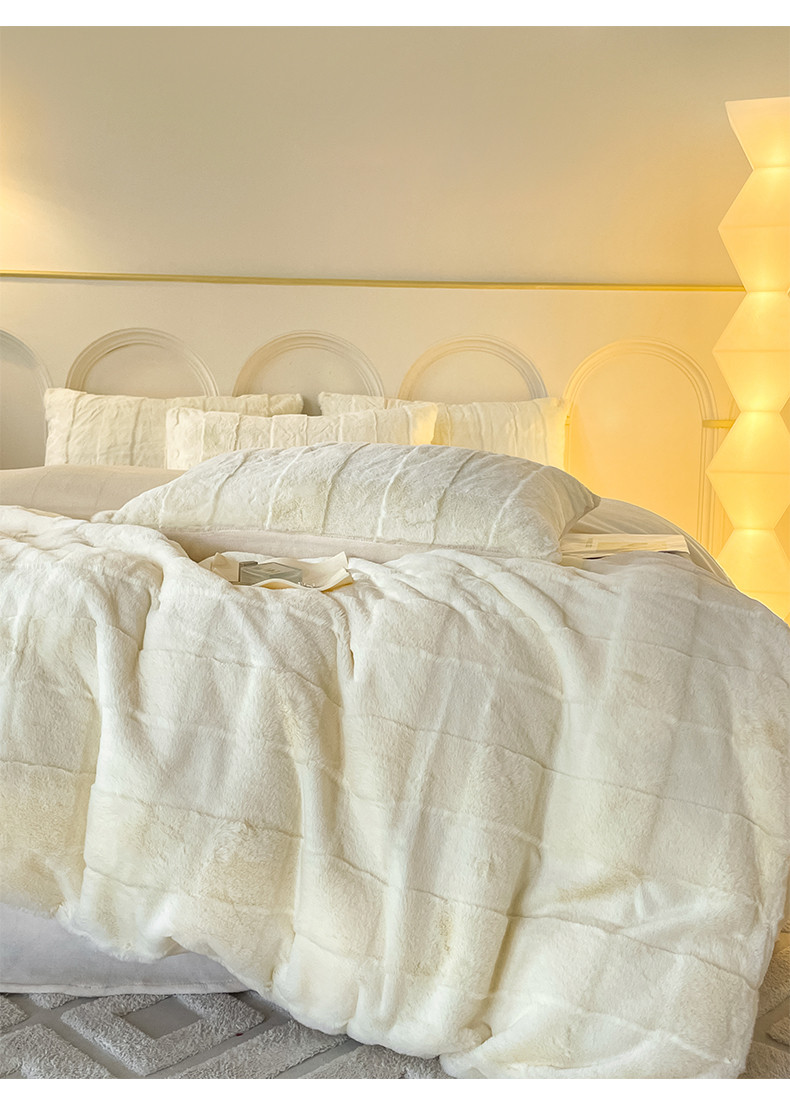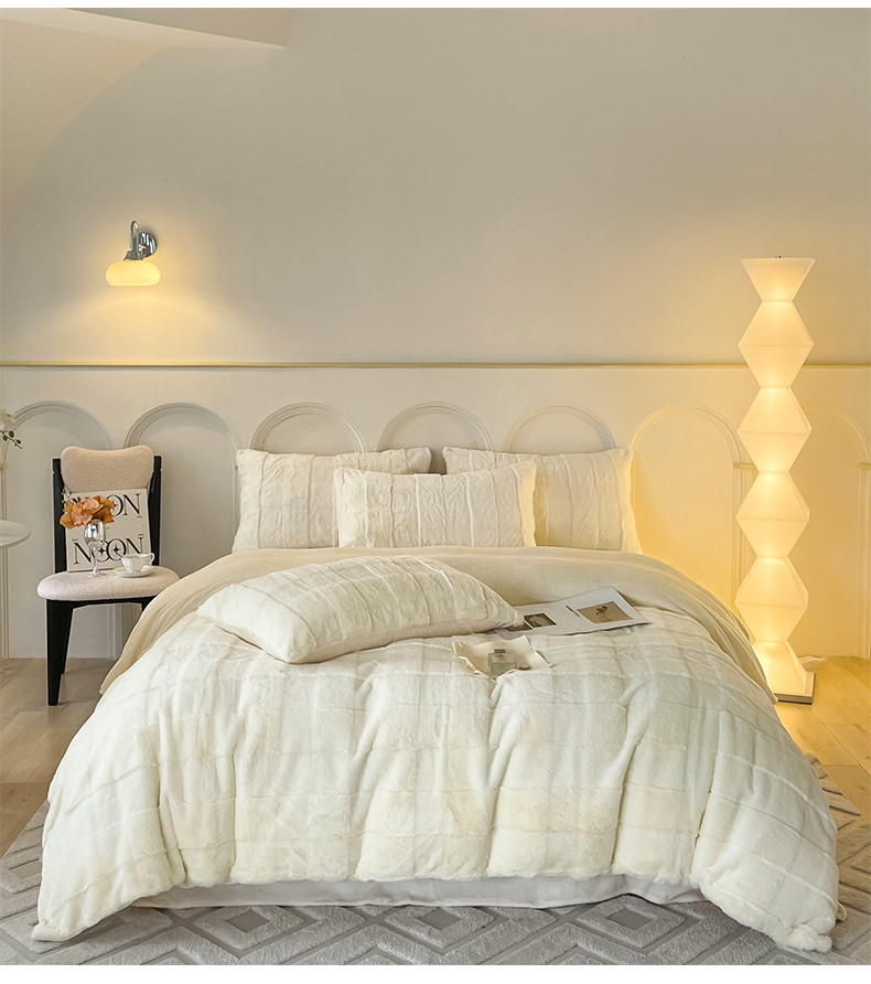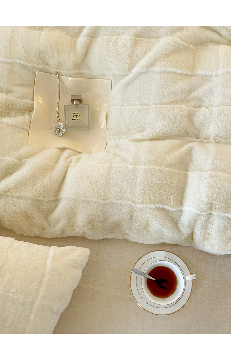 商品名称:金麦 2023新款舒适高克重兔毛绒四件套 格子奶昔白